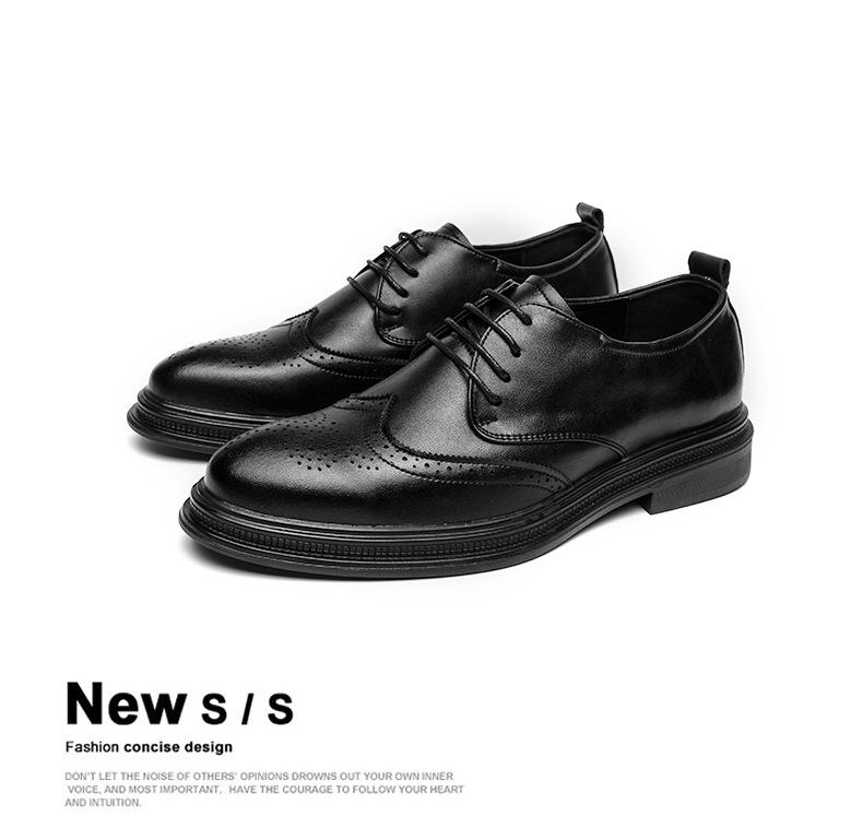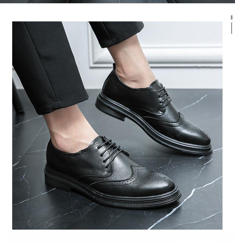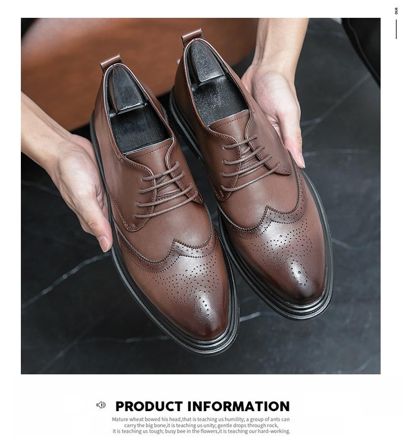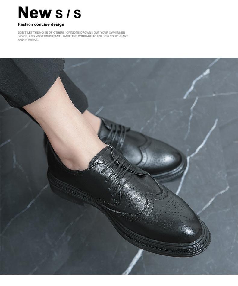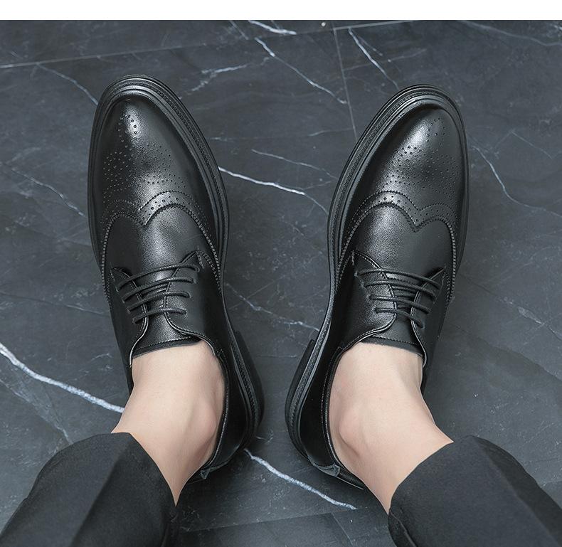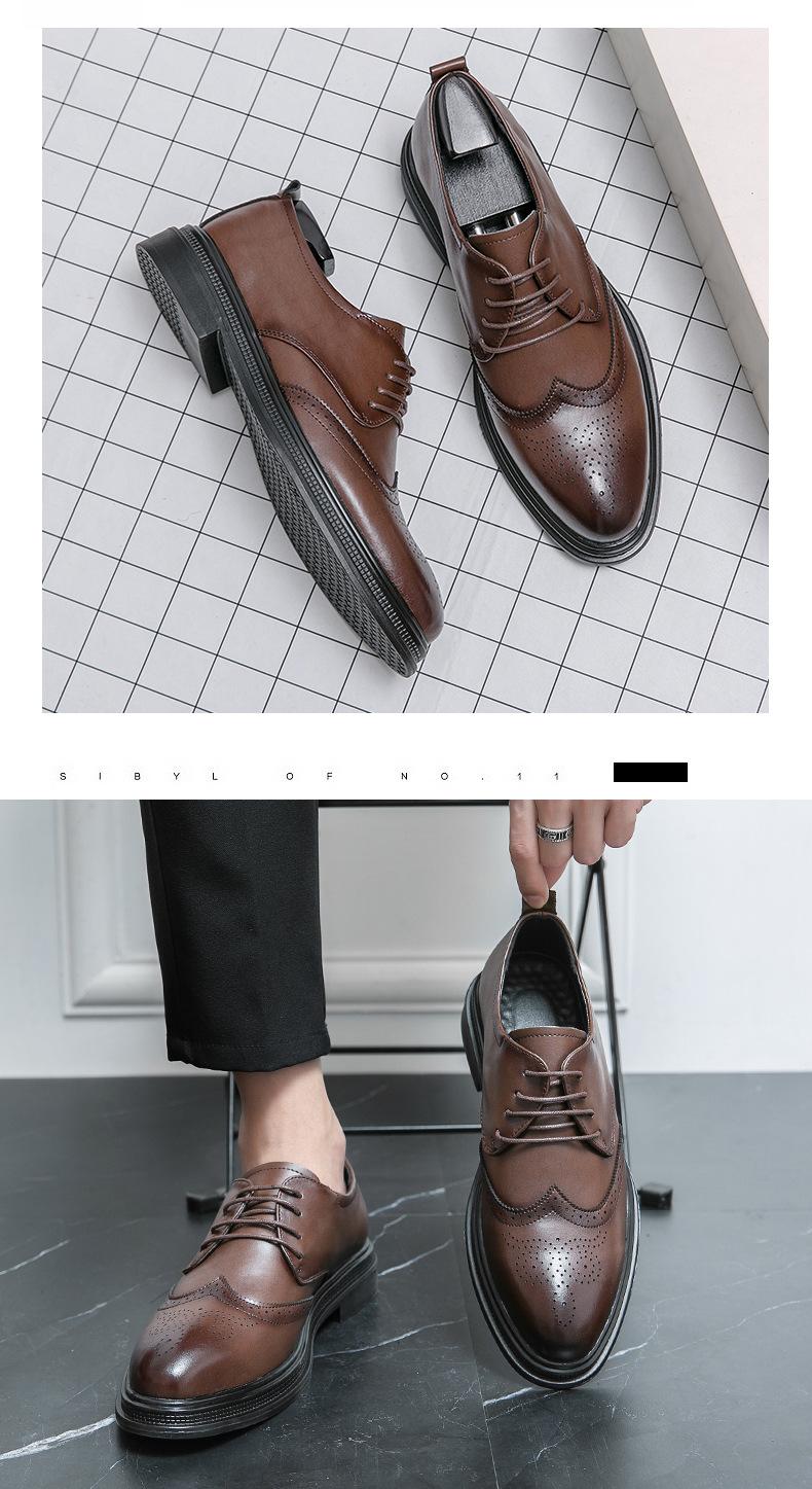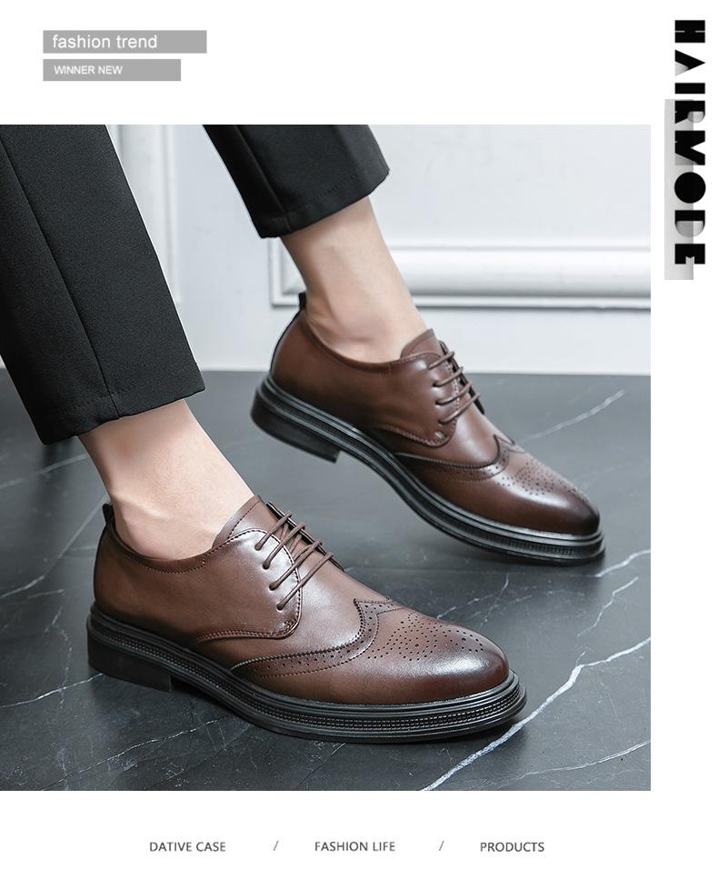 Zapatos Brogue de piel tallada, moda británica de negocios, zapatos de hombre juveniles con plataforma para aumentar la altura, de piel genuina, transpirables, zapatos casuales