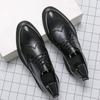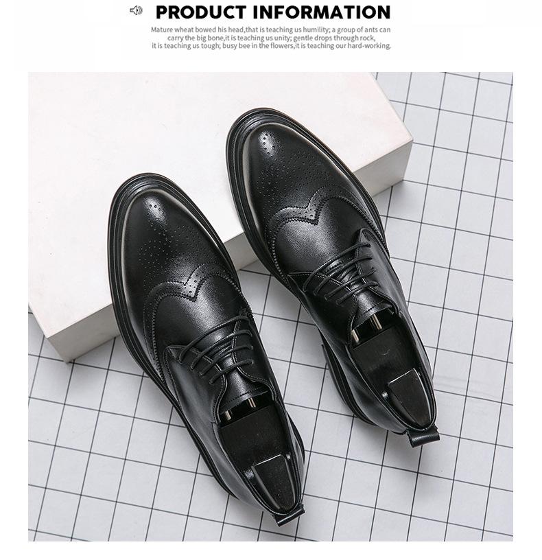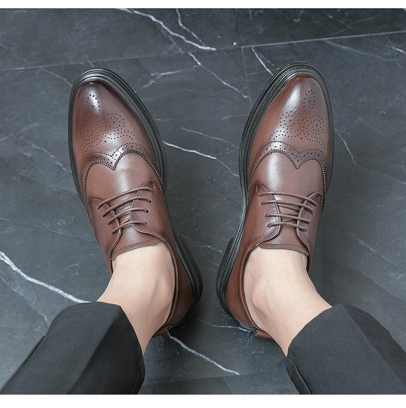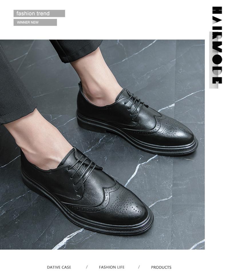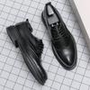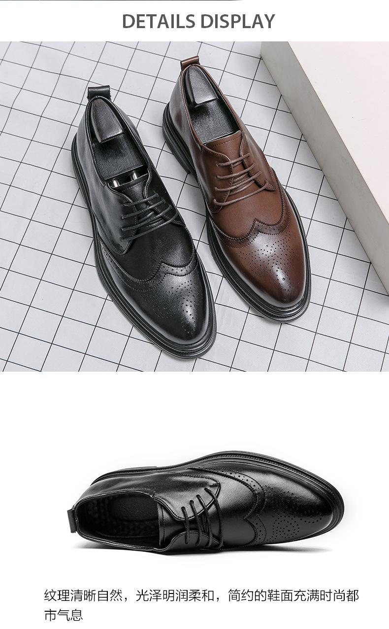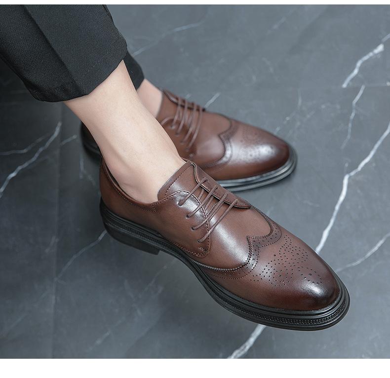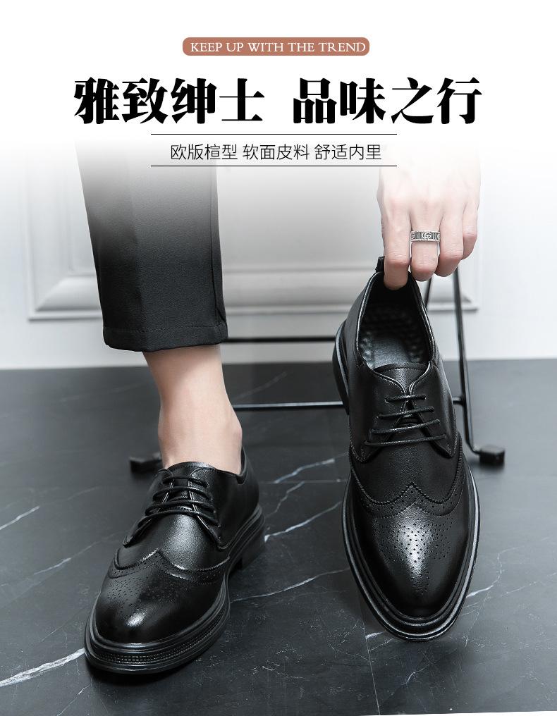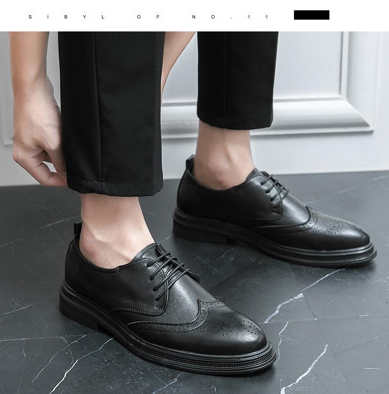 Zapatos Brogue de piel tallada, moda británica de negocios, zapatos de hombre juveniles con plataforma para aumentar la altura, de piel genuina, transpirables, zapatos casuales