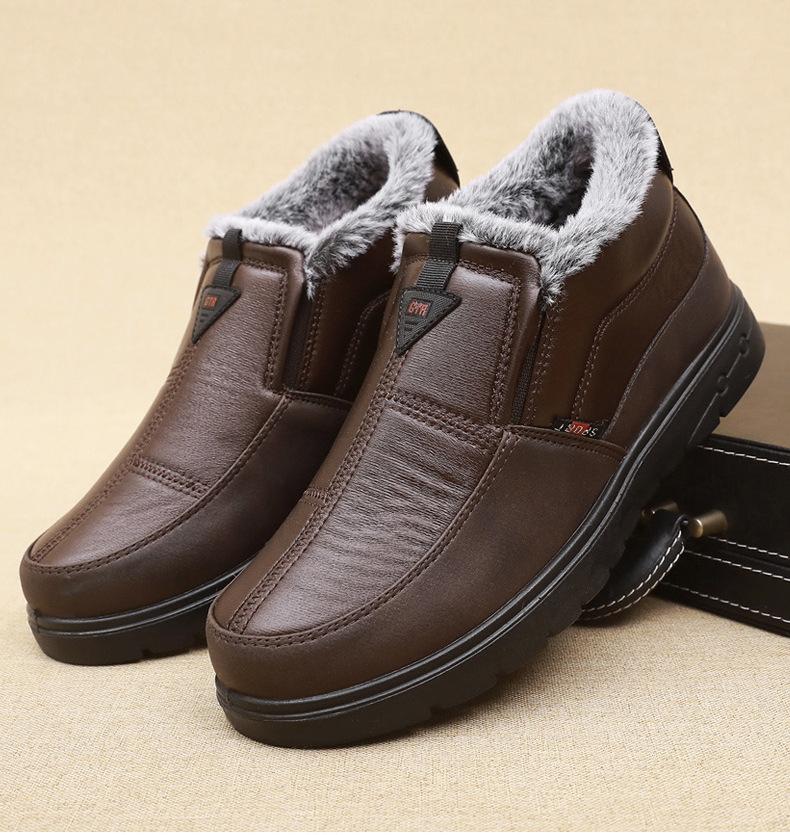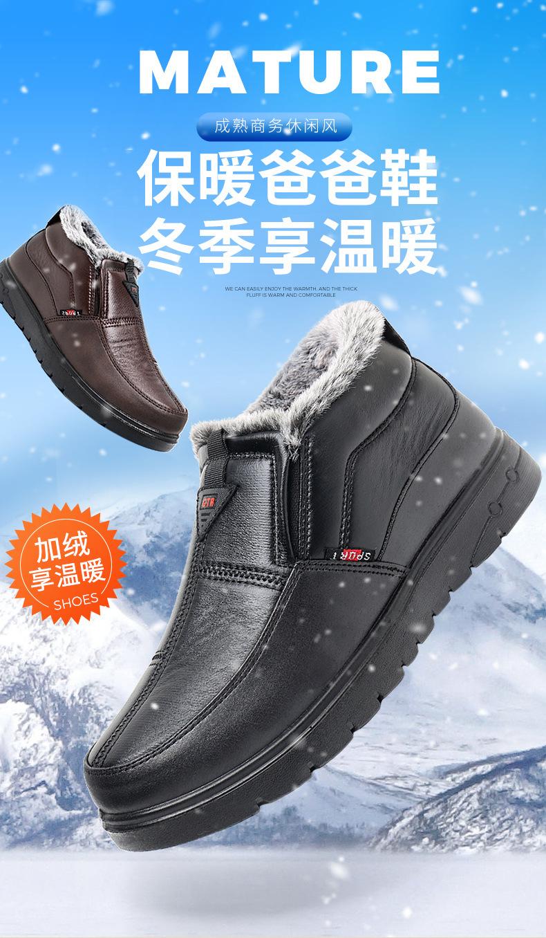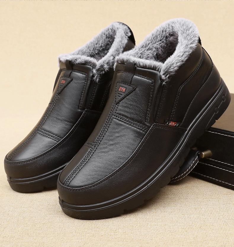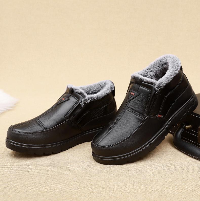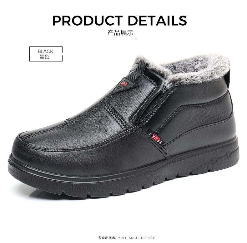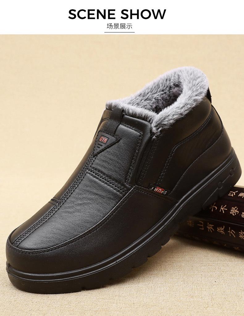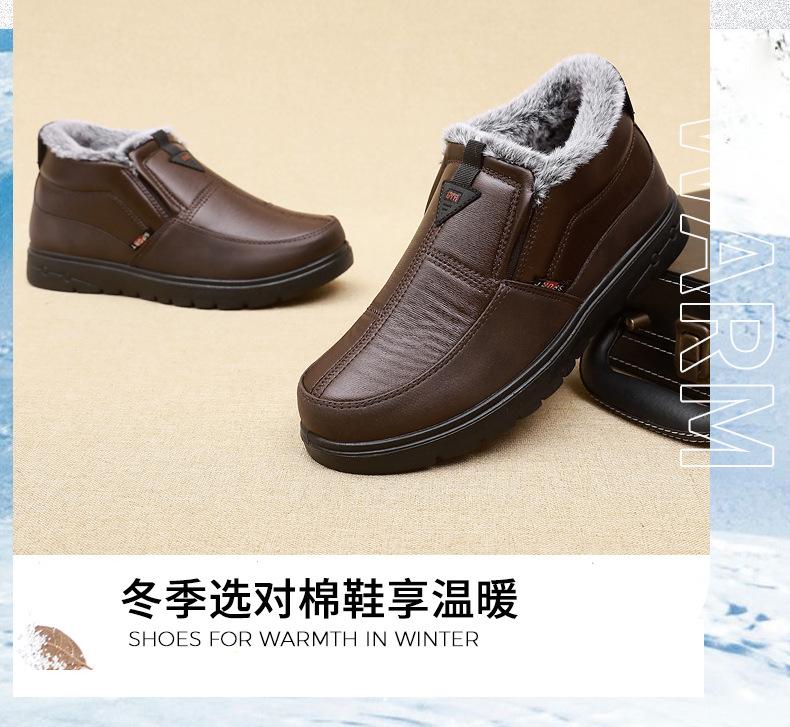 Zapatos de algodón nuevos de invierno para hombres de Beijing, además de zapatos cálidos de terciopelo para hombres de mediana edad y ancianos, zapatos para padres, botas de algodón antideslizantes impermeables para hombres mayores