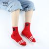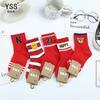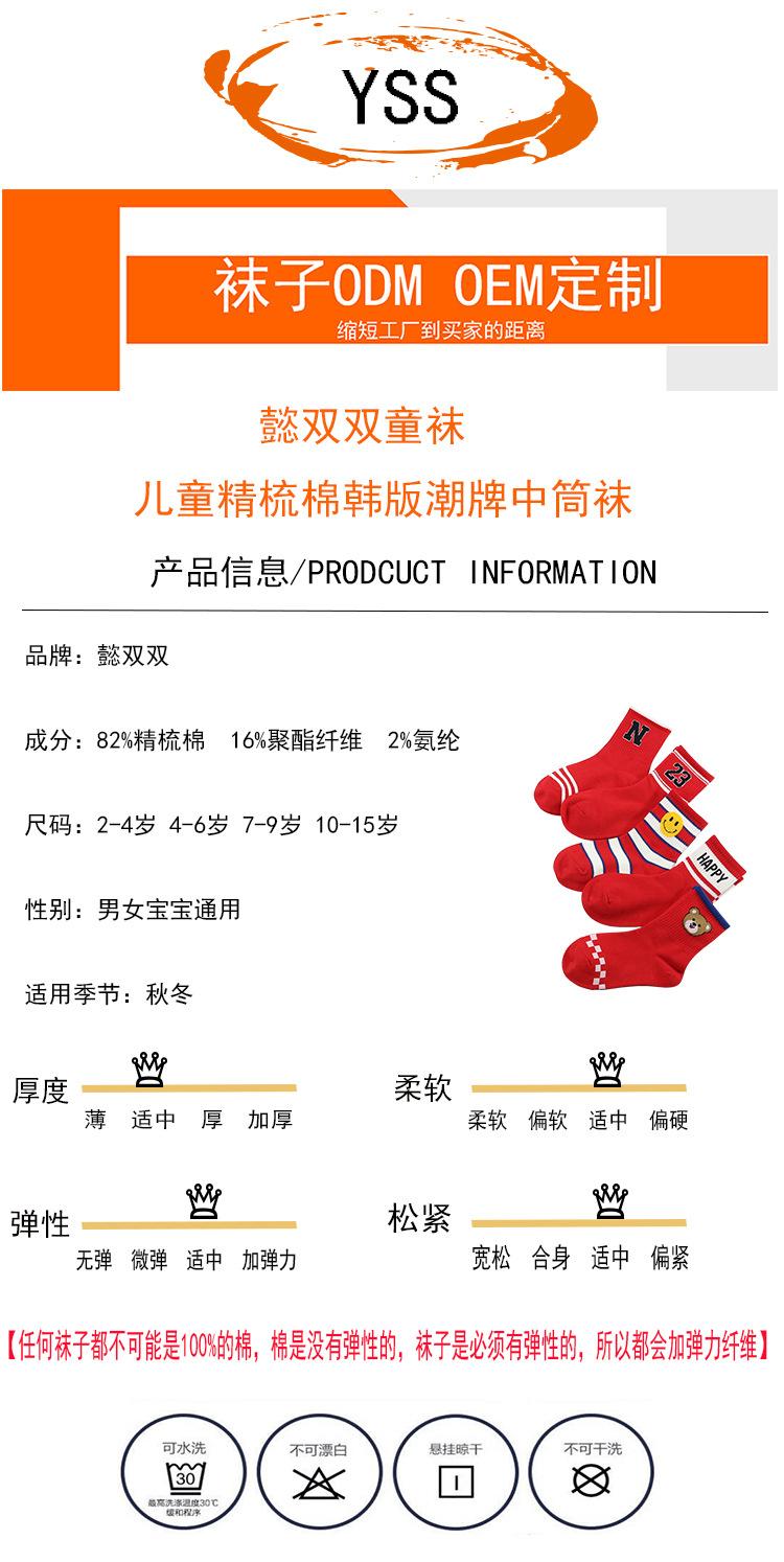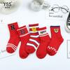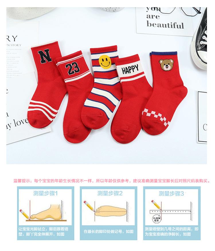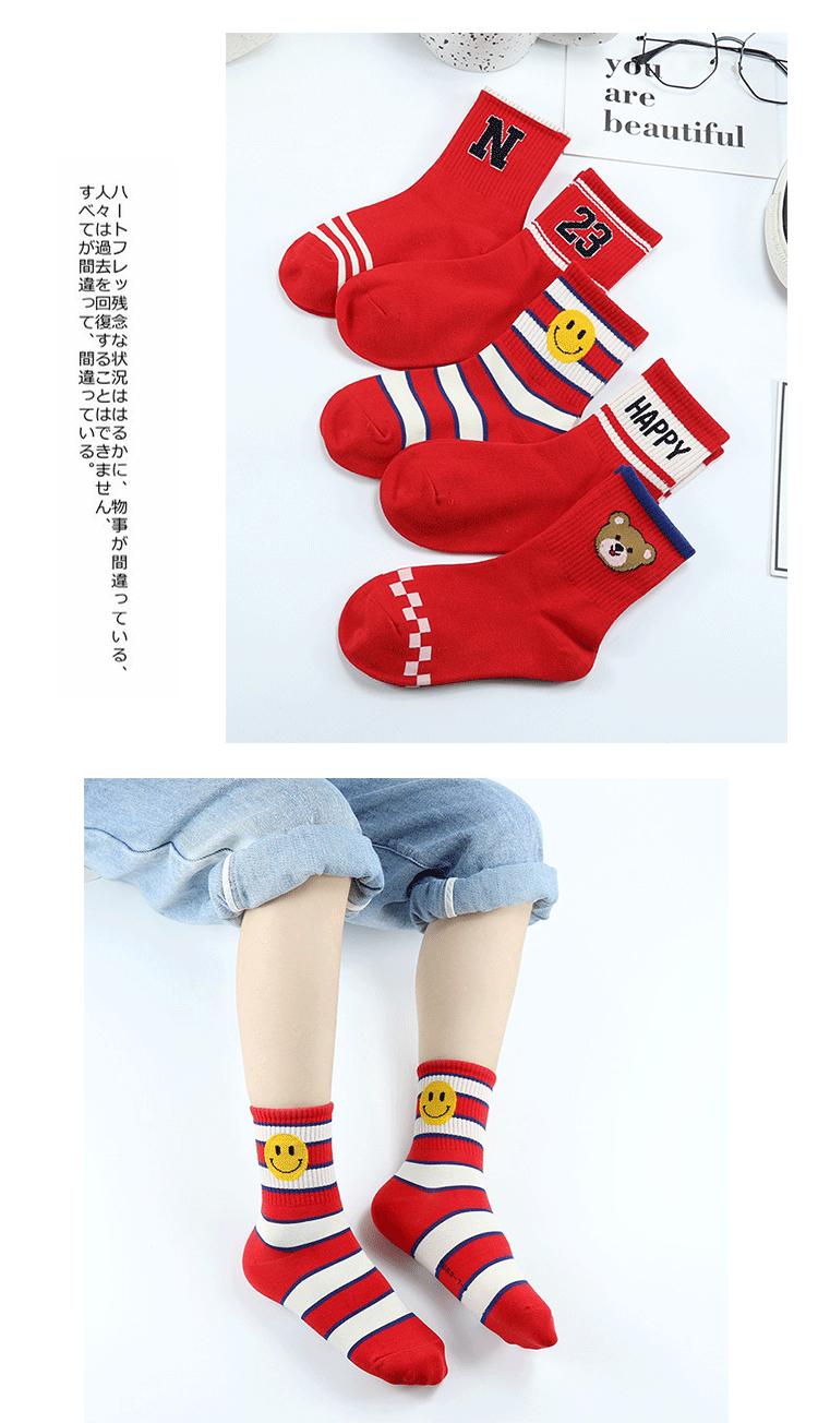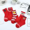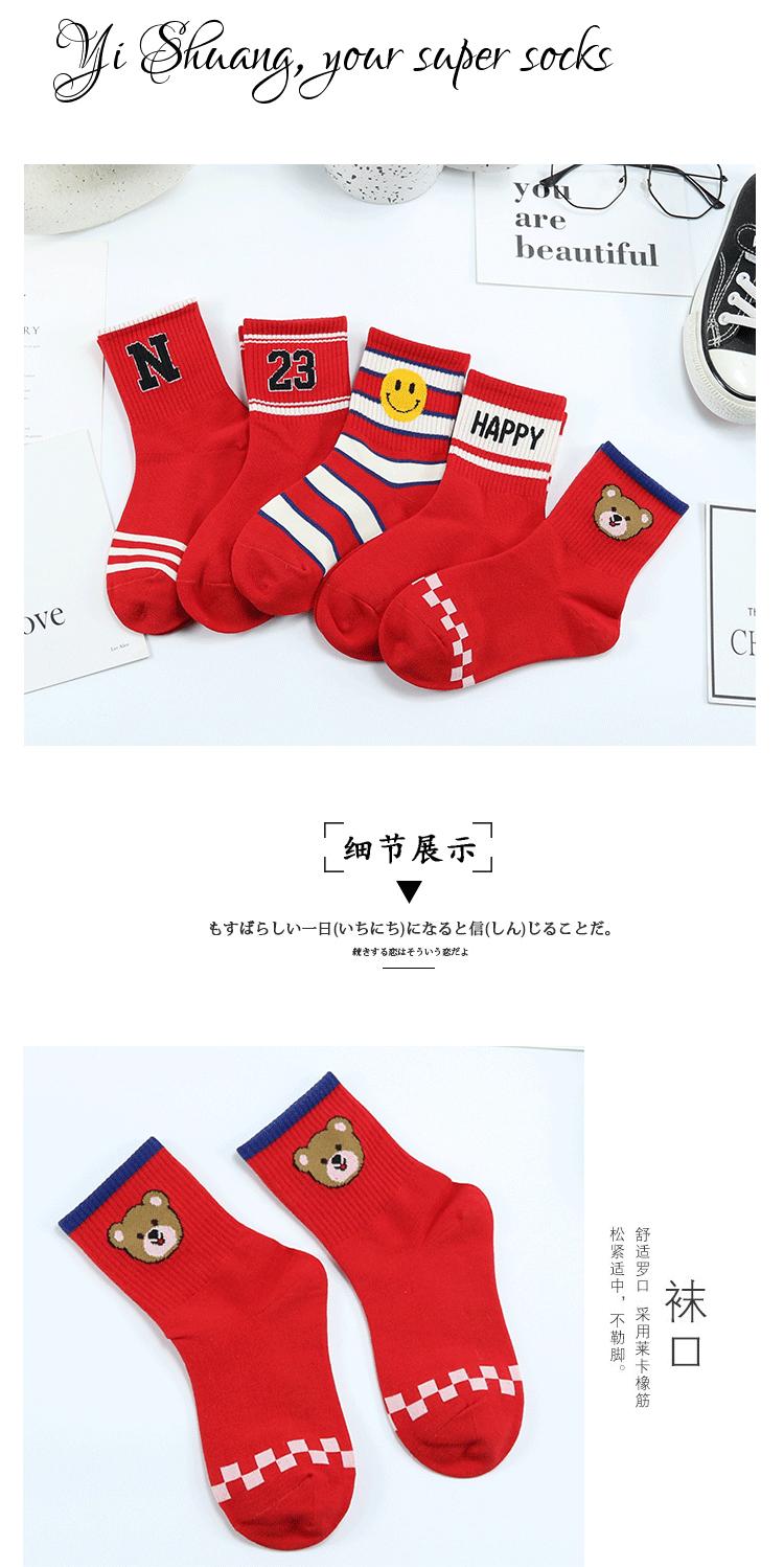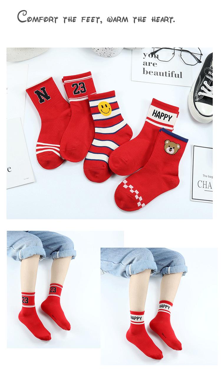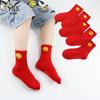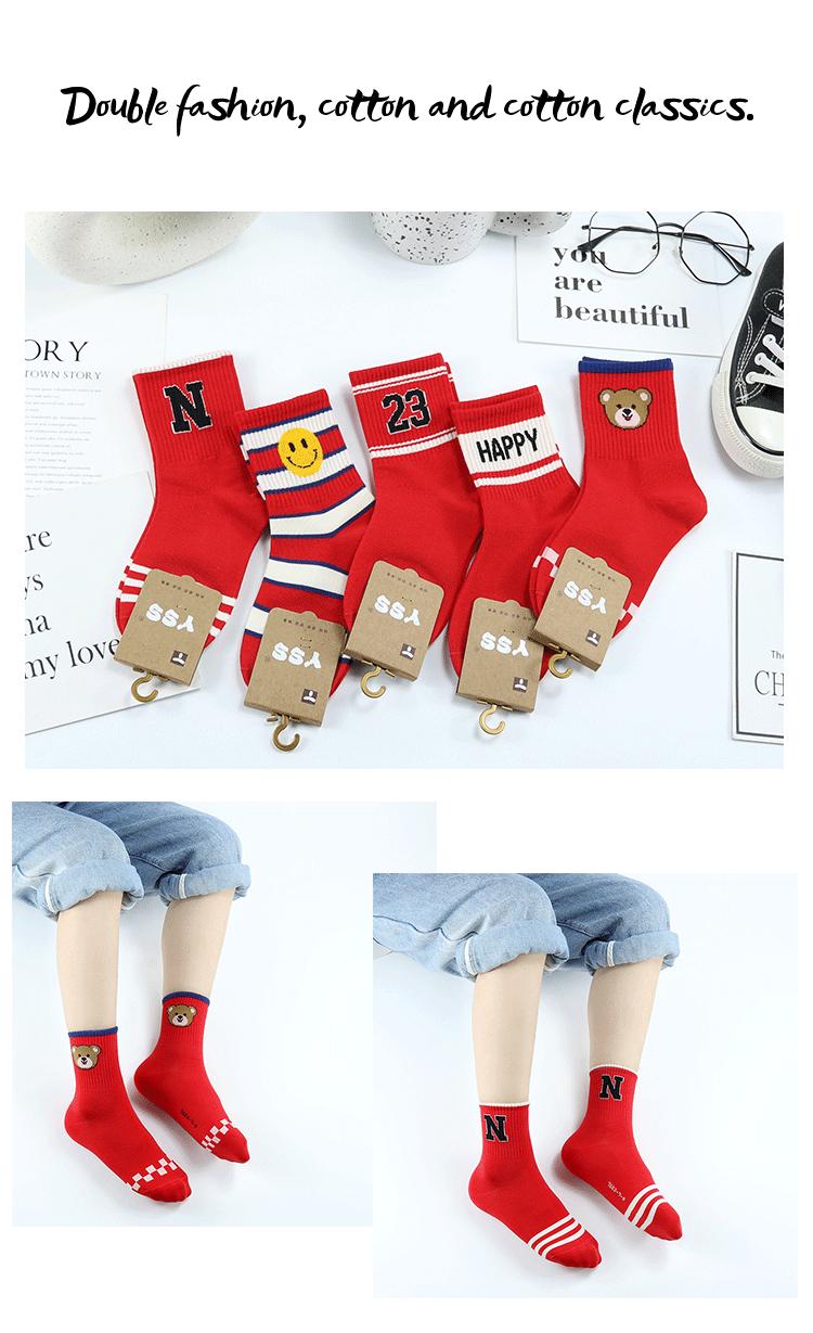 Calcetines dobles para niños otoño e invierno nuevos calcetines de media pantorrilla con cara sonriente de dibujos animados calcetines de algodón peinado rojos sin hueso para niños calcetines de Año Nuevo