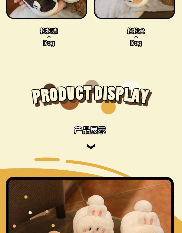 Khaki dog, Apricot bear, Snow White Rabbit, Black Dog