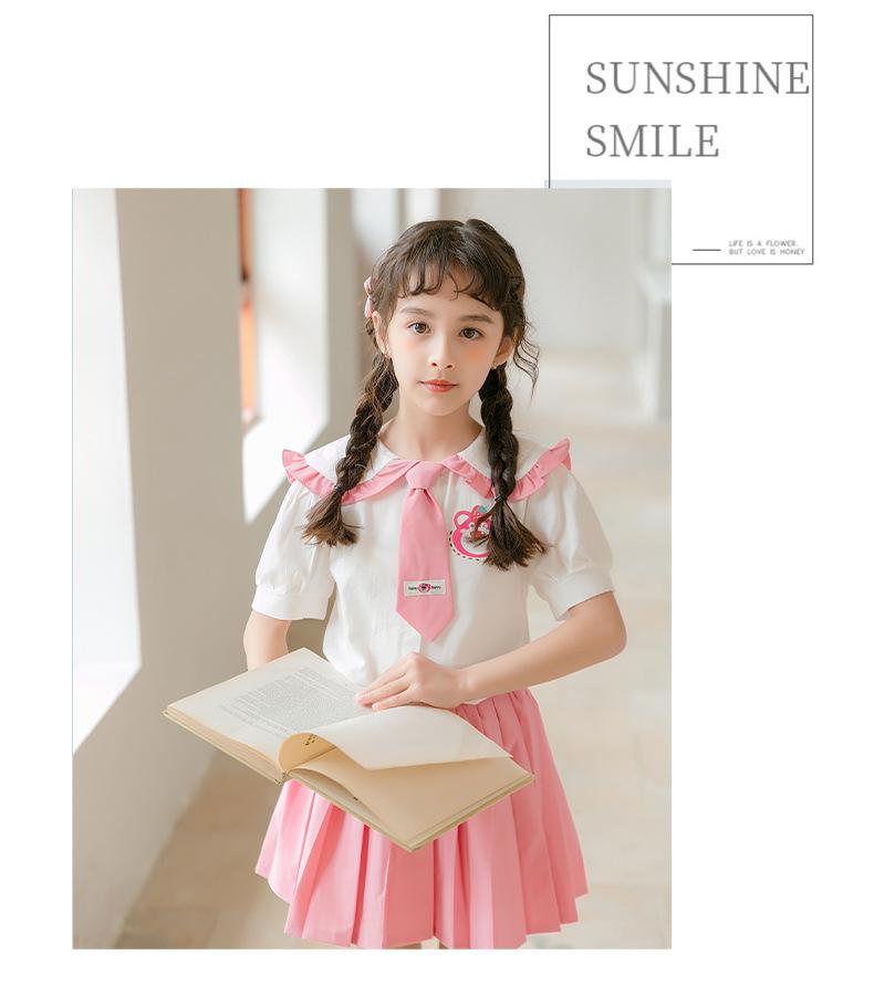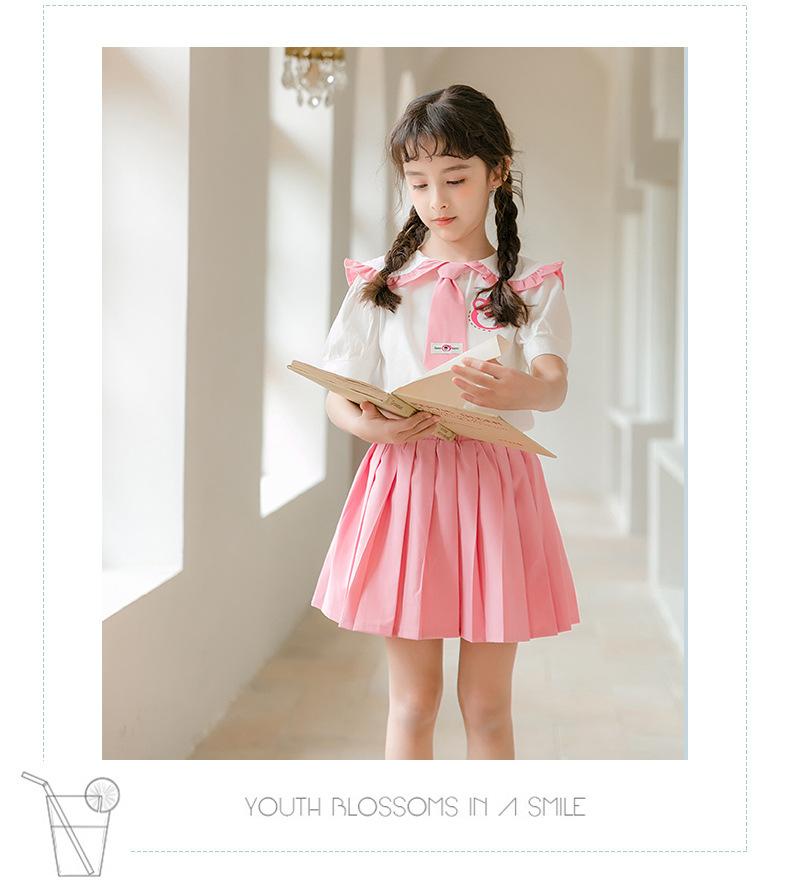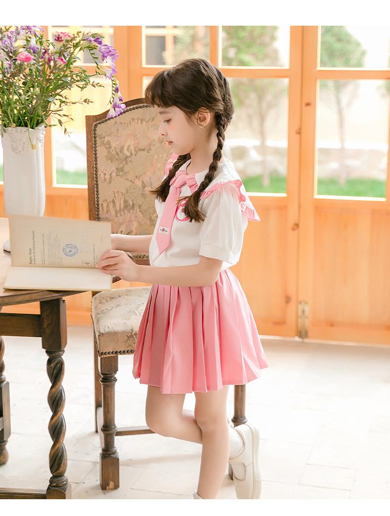 Traje de falda para niña verano traje de falda para niño grande verano uniforme jk ropa para niños manga corta estilo universitario para niños falda plisada