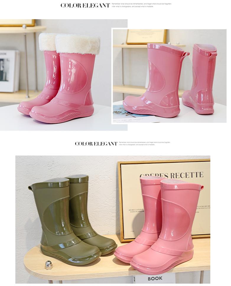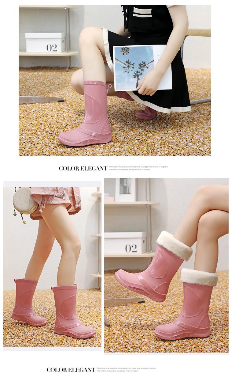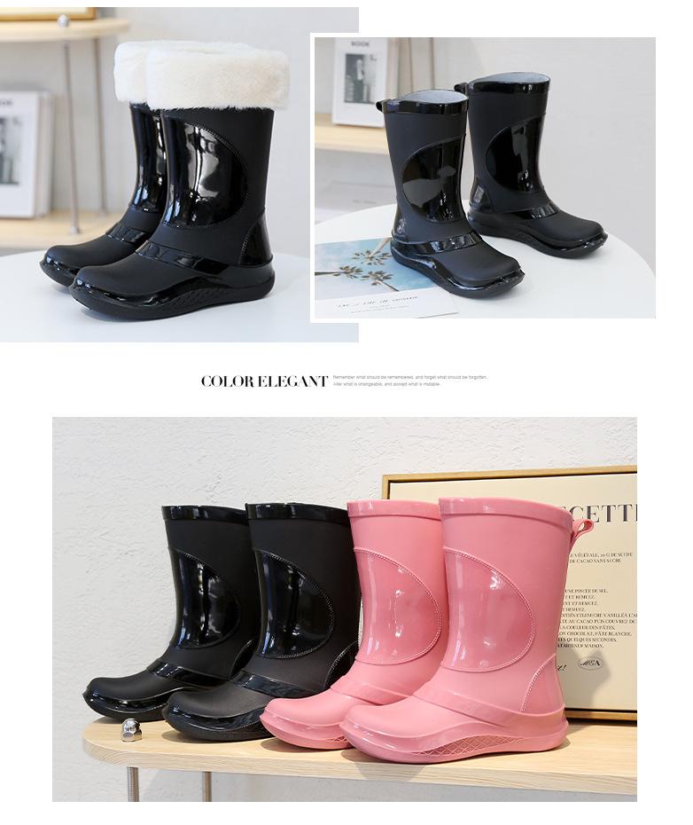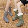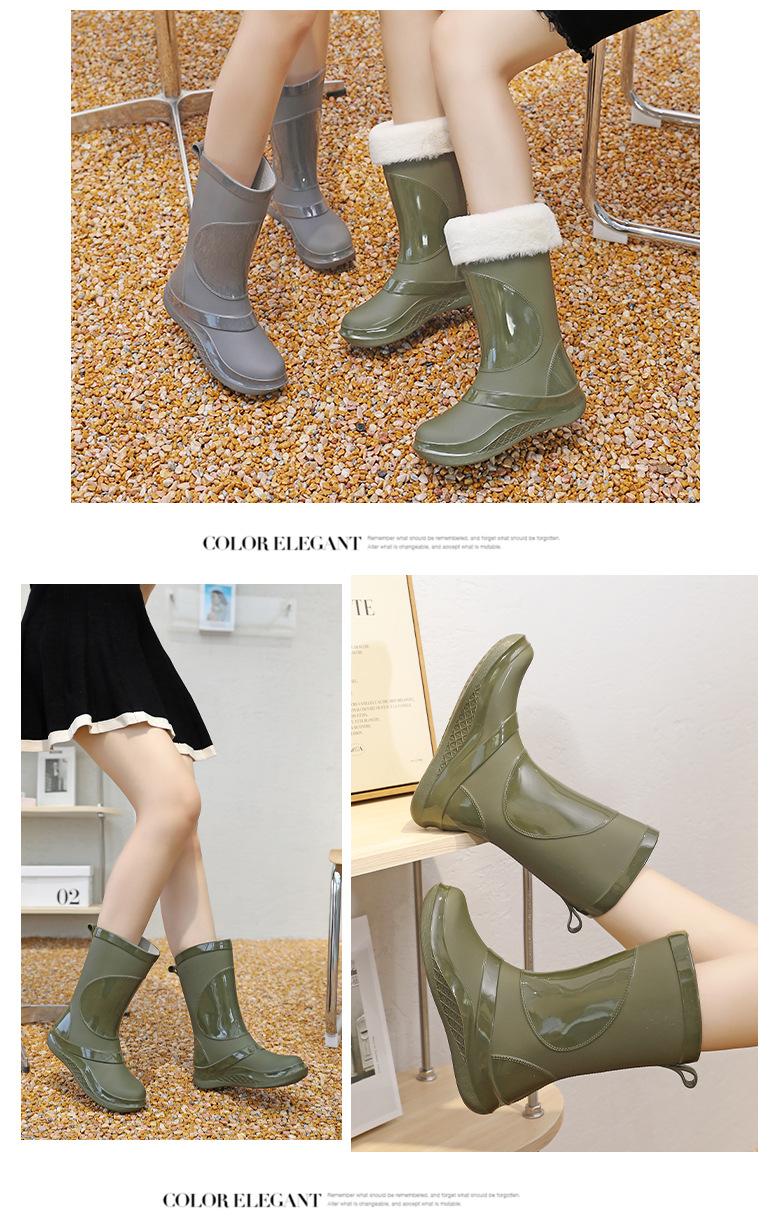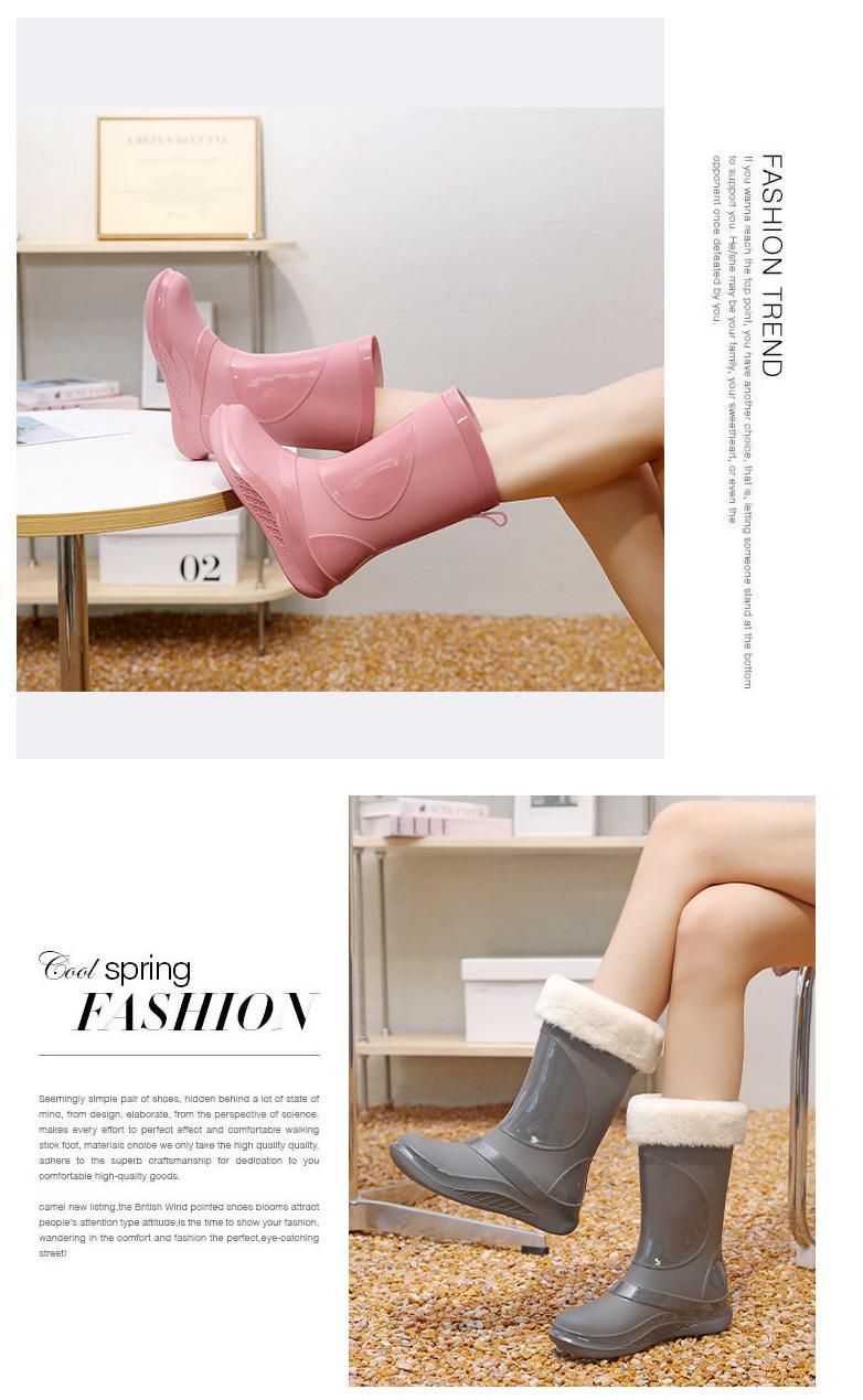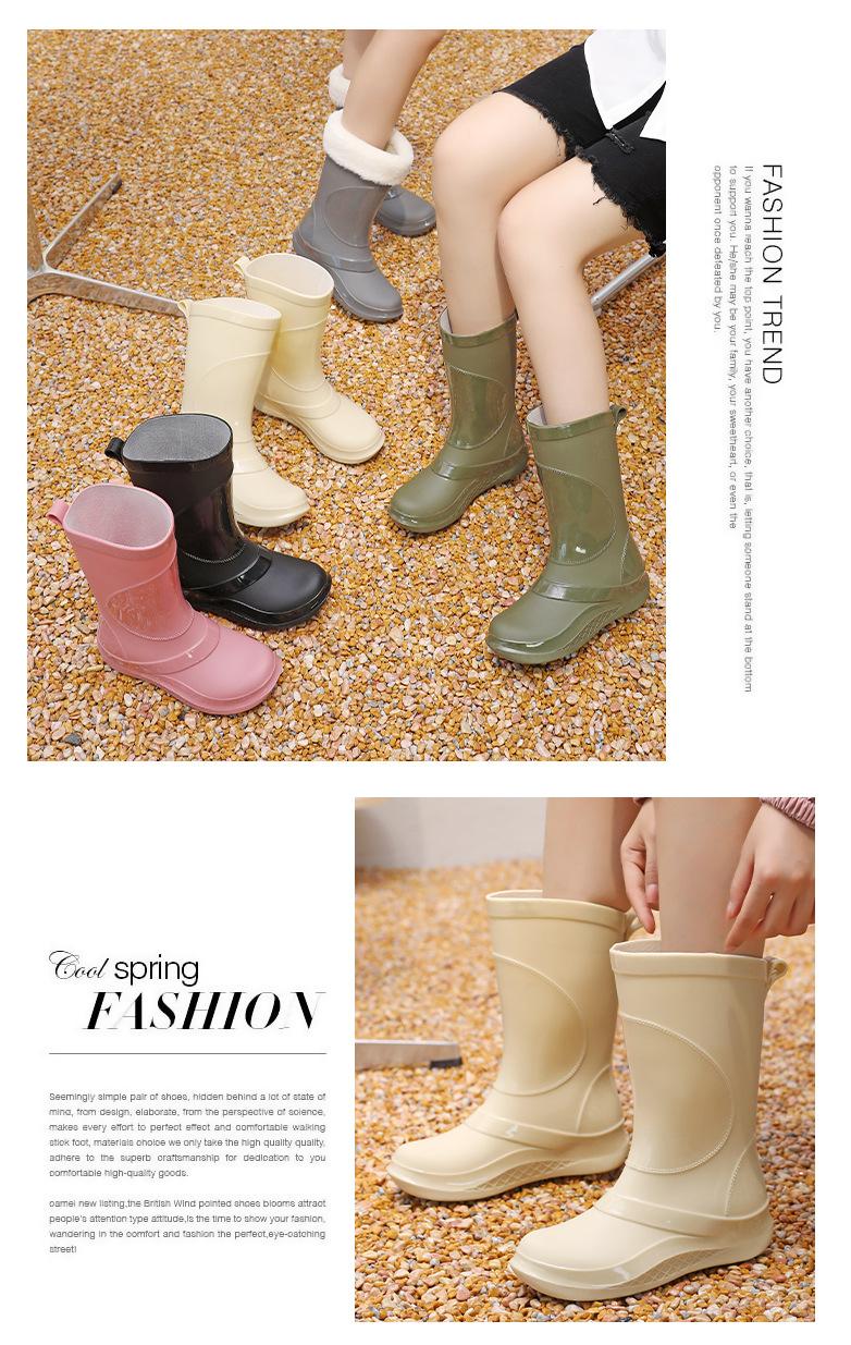 Botas de lluvia de moda para mujer, acolchadas de algodón, hasta media pantorrilla, impermeables, antideslizantes, zapatos de agua para mujer, nuevos zapatos de goma, zapatos de lluvia para exteriores.