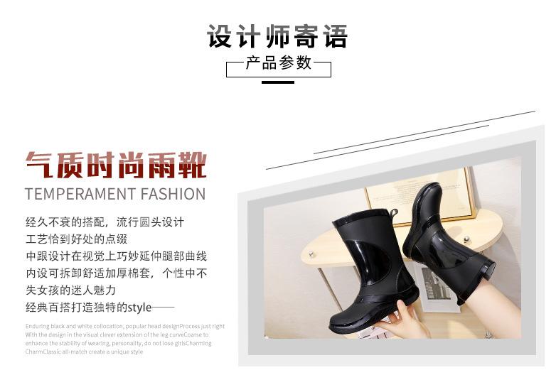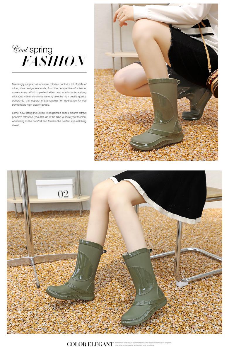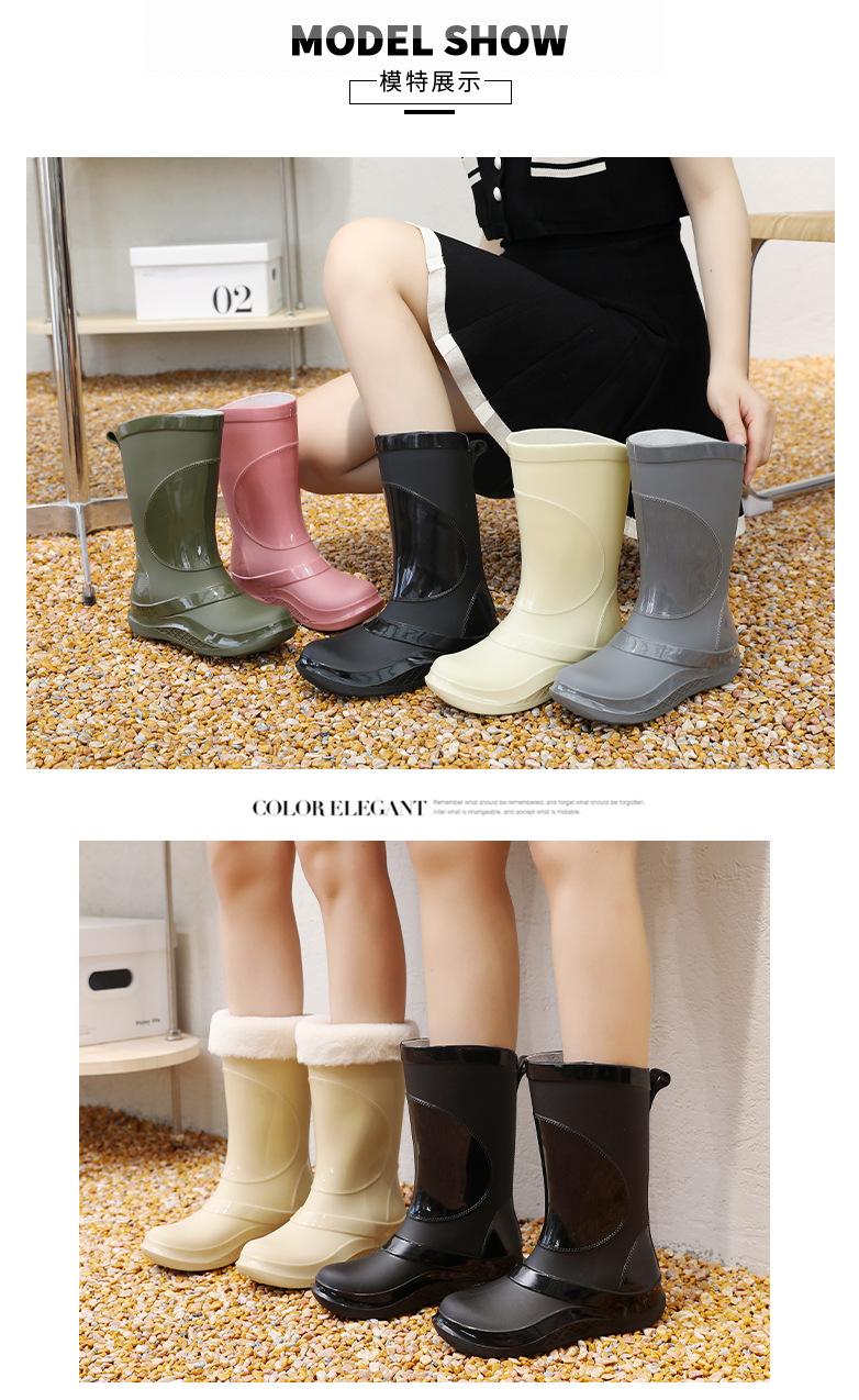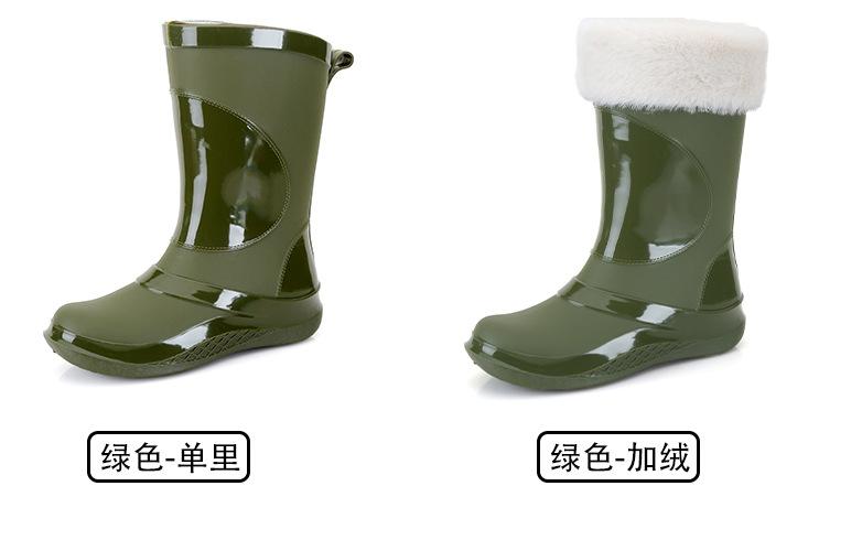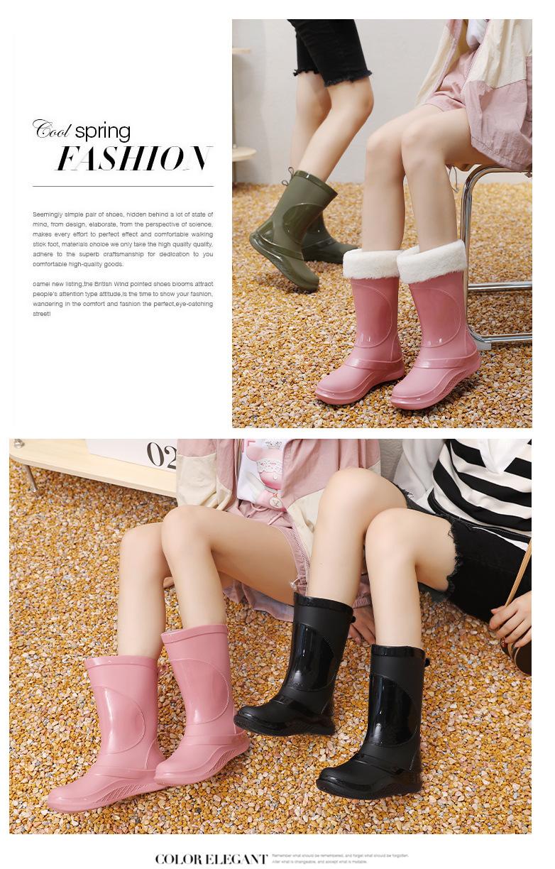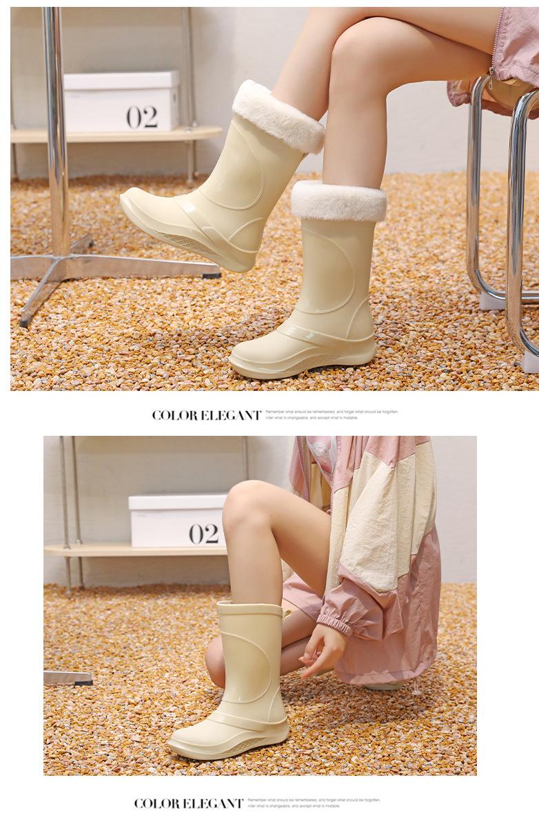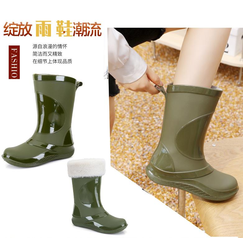 Botas de lluvia de moda para mujer, acolchadas de algodón, hasta media pantorrilla, impermeables, antideslizantes, zapatos de agua para mujer, nuevos zapatos de goma, zapatos de lluvia para exteriores.