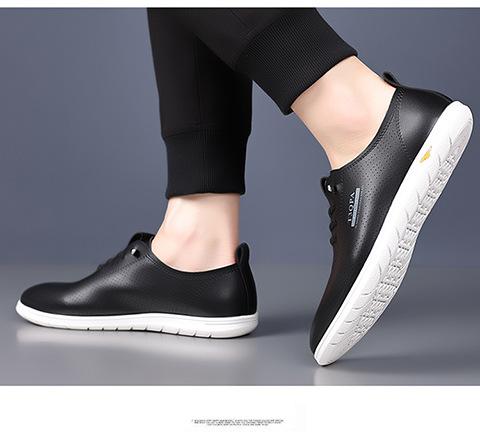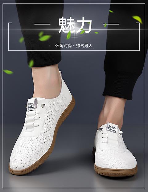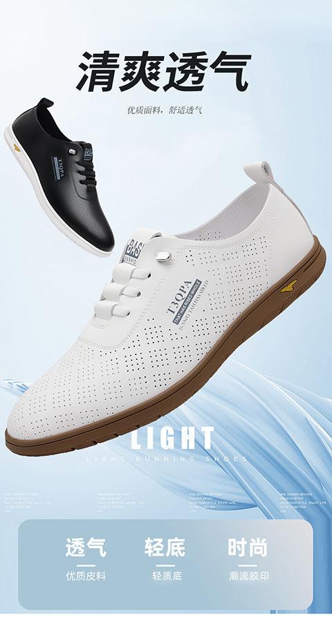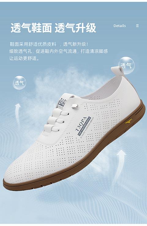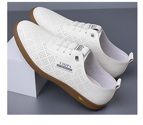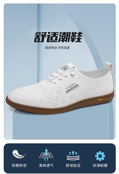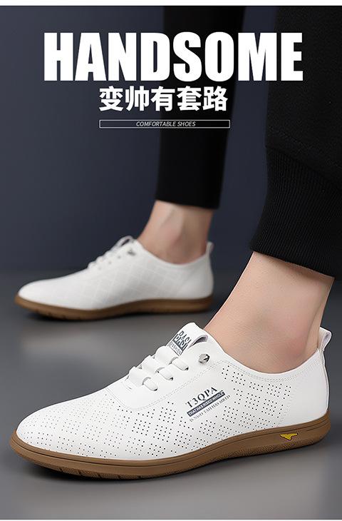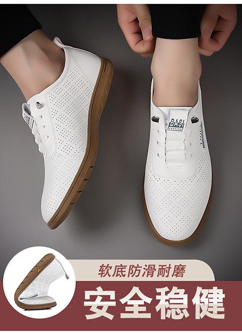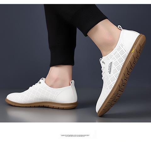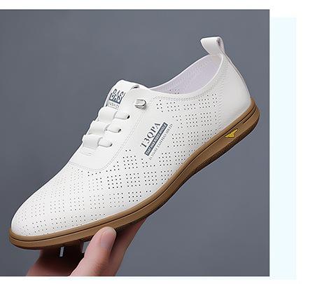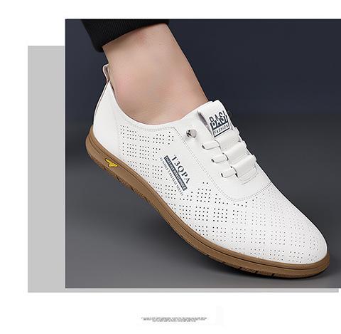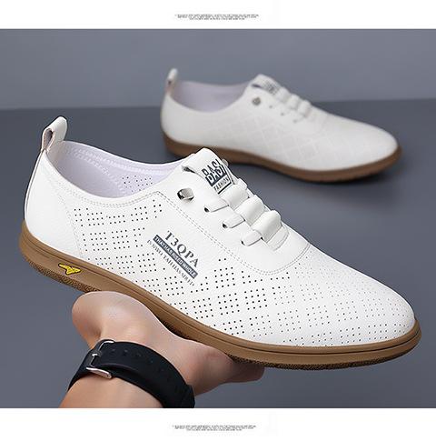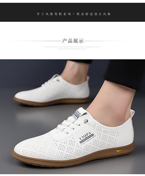 Verano Nuevos Zapatos Blancos Huecos Transpirables para Hombre Combinación Total Suela Suave Superficie Suave Antideslizantes Slip-on Conducción Casual Zapatos de Cuero