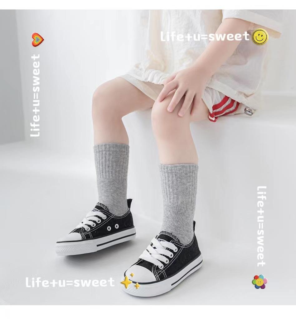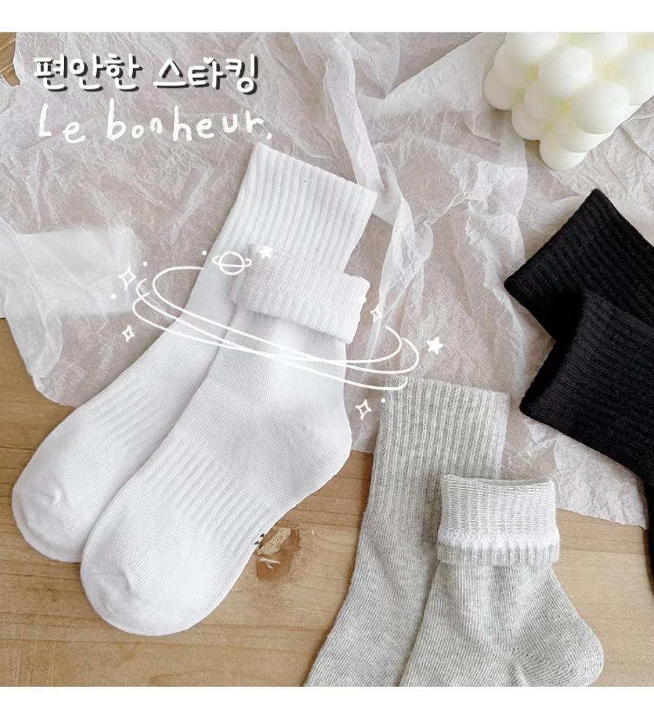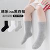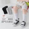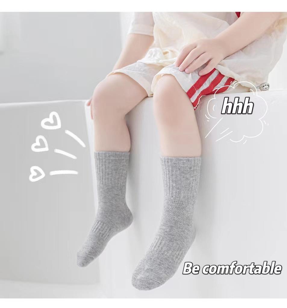 Calcetines blancos para niños, primavera y verano, calcetines de algodón para niños y niñas, calcetines hasta media pantorrilla, otoño e invierno, negros, blancos y grises, para estudiantes, calcetines blancos para niños medianos y grandes.