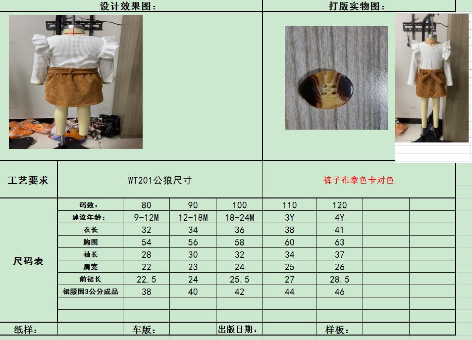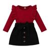 Traje de otoño e invierno para niñas de estilo europeo y americano, algodón para niños, top de manga farol + falda de pana, traje de dos piezas de modelo de moda