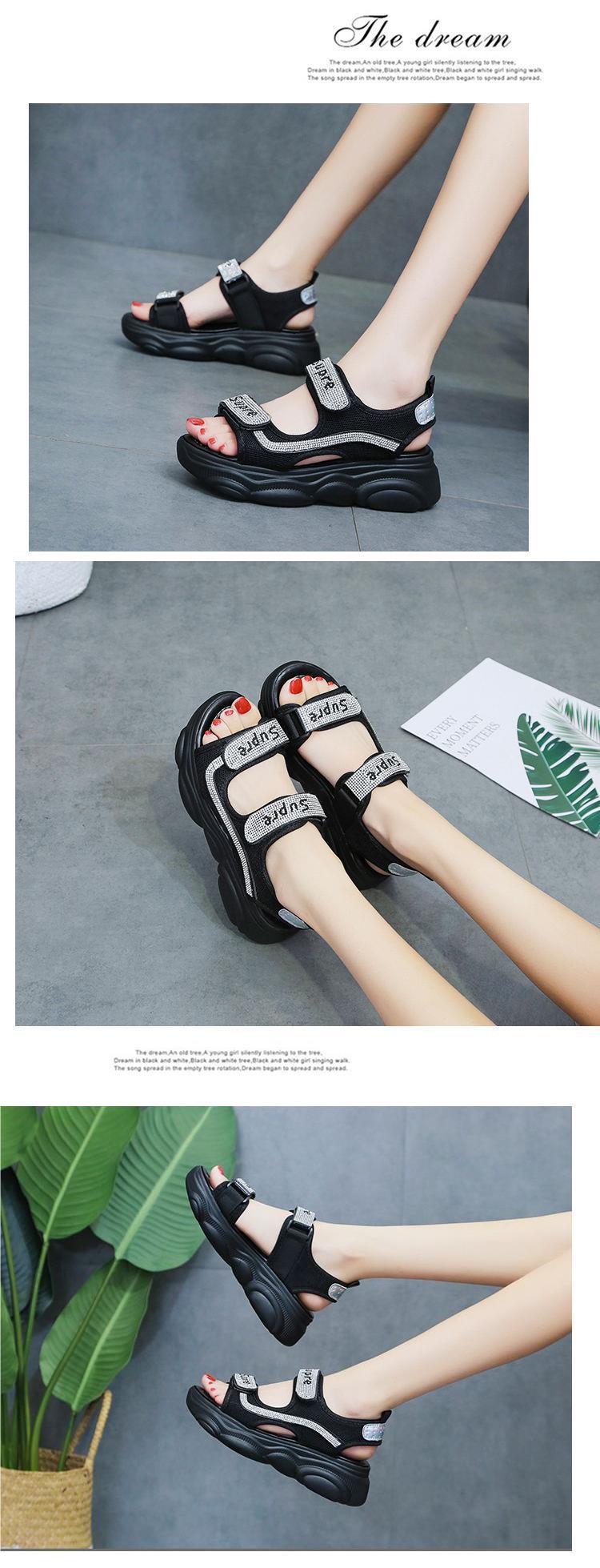 Sandalias de plataforma para mujer, tendencia 2025, nuevas, cibercelebridades, zapatos de verano, zapatos casuales, planos, suaves, con diamantes brillantes.