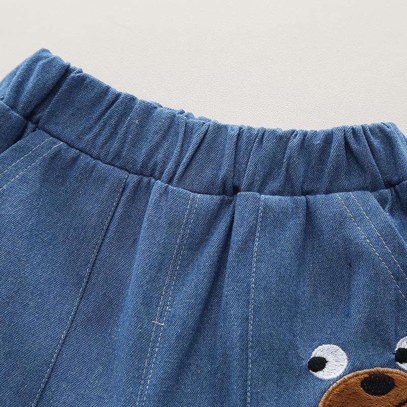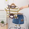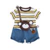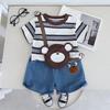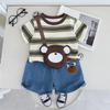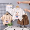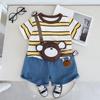 Conjunto de ropa de verano para niños 2024, nuevo conjunto de dos piezas de moda para bebés y niños, estilo occidental, con dibujos animados y mangas cortas.