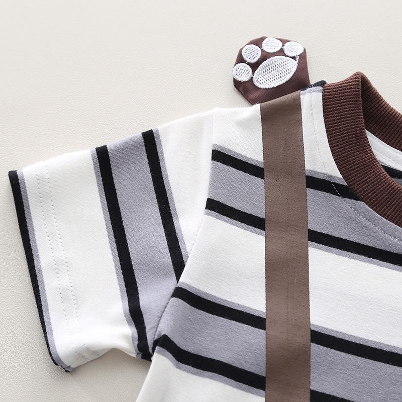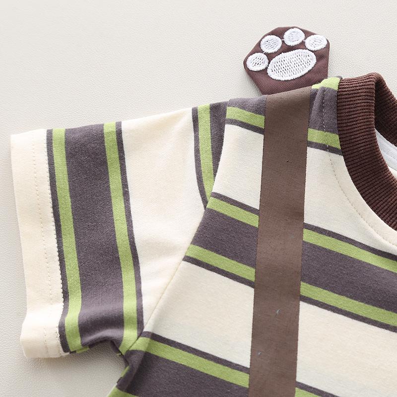 Yellow Bear Bag Striped Short Sleeve suit, Green Bear Bag Striped Short Sleeve suit, light blue Bear Bag Strip...