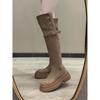 Botas largas de caballero para mujer 2025 Otoño e Invierno Nuevo estilo Petite Slim Elásticas Botas largas con suelas gruesas y aumento de altura oculto