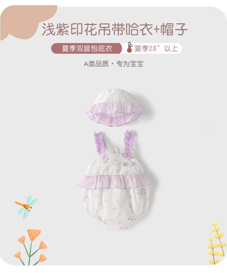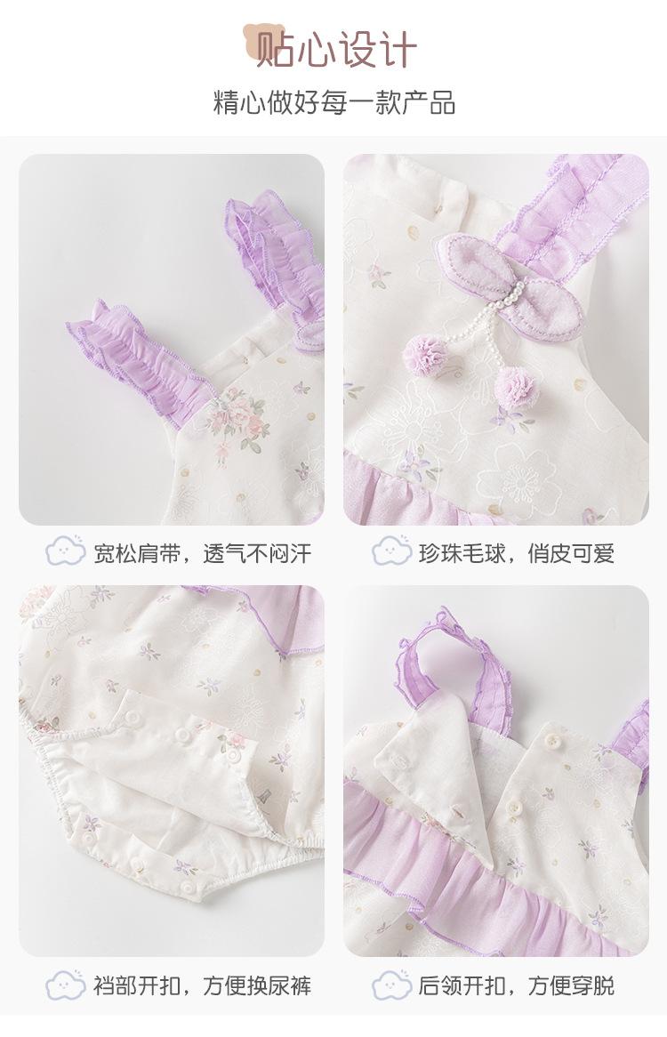 Compra Mameluco de bebé nuevo estilo chino verano delgado ropa de bebé niña súper linda estilo extranjero triángulo caqui bandolera ropa de pedos al por mayor en Joom.pro