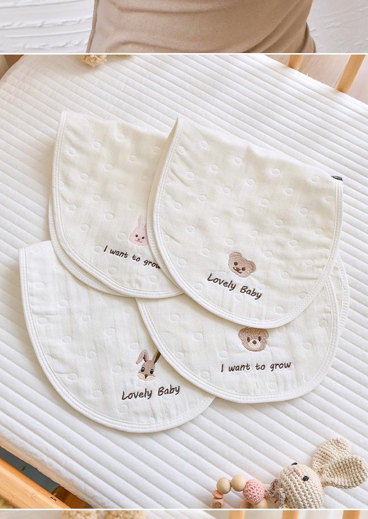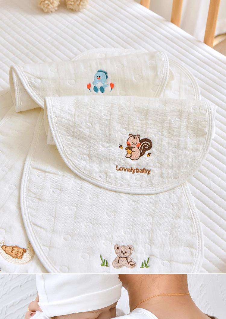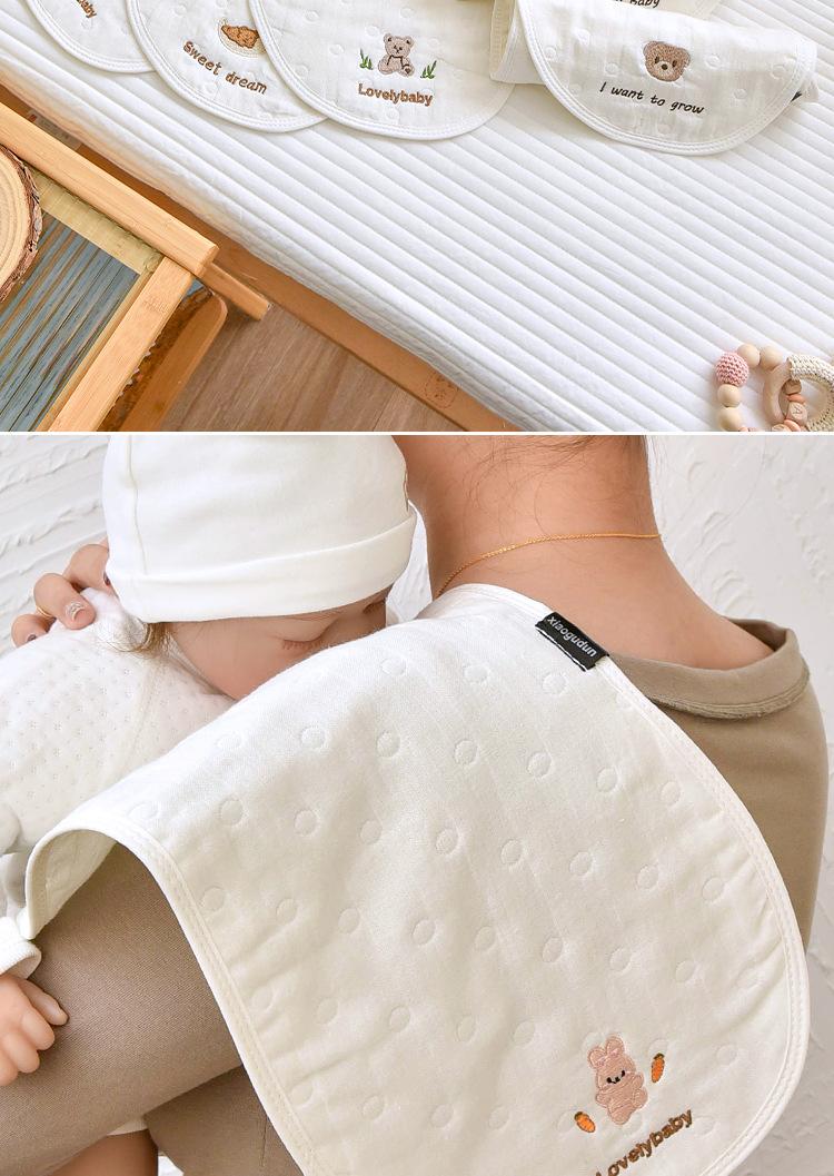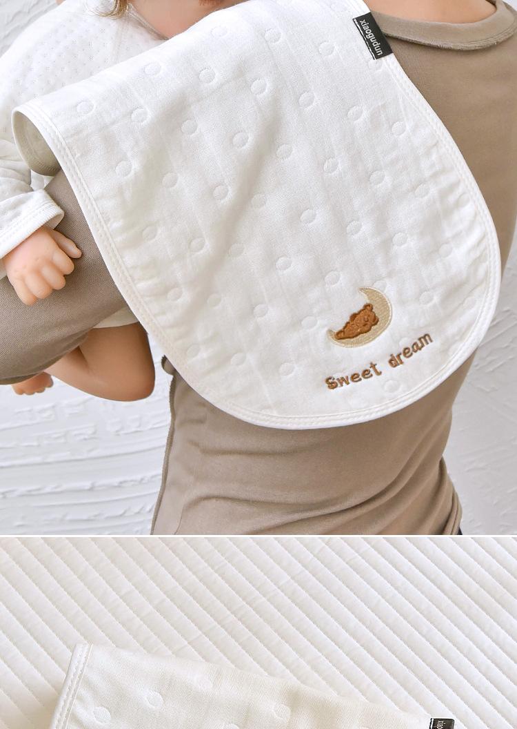 Toalla eructadora de gasa de algodón para bebé Seleccione gasa jacquard de seis capas de alta calidad, respetuosa con la piel y transpirable Diseño de arco interior, se ajusta al cuello, el diseño doble es más práctico Exquisita artesanía de bordado, estándar de Clase A, no hay necesidad de preocuparse por lamer o morder Suave y cómodo, absorbe la humedad y es transpirable, de secado instantáneo, calidad Clase A.