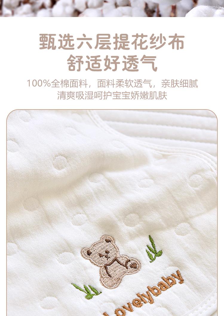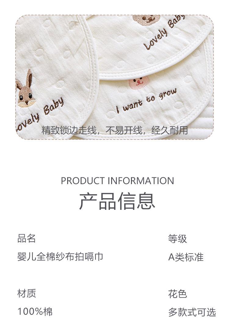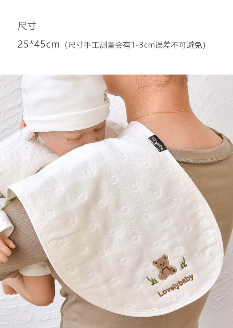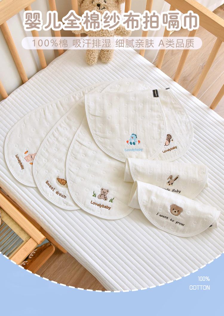 Toalla eructadora de gasa de algodón para bebé Seleccione gasa jacquard de seis capas de alta calidad, respetuosa con la piel y transpirable Diseño de arco interior, se ajusta al cuello, el diseño doble es más práctico Exquisita artesanía de bordado, estándar de Clase A, no hay necesidad de preocuparse por lamer o morder Suave y cómodo, absorbe la humedad y es transpirable, de secado instantáneo, calidad Clase A.