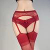 Calcetines sexys de una pieza con tirantes, puro deseo, medias rojas para mujer, color de contraste, borde rojo, seda negra, largos, sexys, ultrafinos
