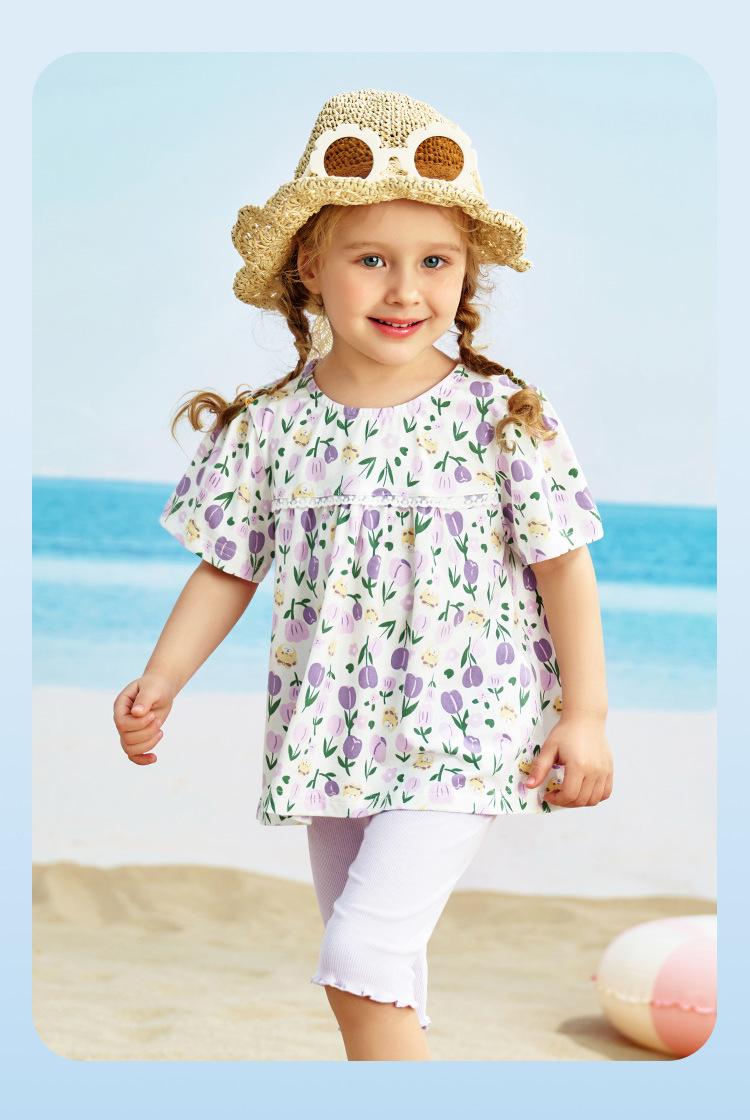 Traje clásico de manga corta Teddy Girls Verano Nuevo Niñas Manga corta Leggings Traje de dos piezas Traje para niños Moderno