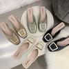 Pantuflas Planas Outfit de Mujer 2024 Verano Nuevo Estilo Sandalias de Malla Baotou Punta Redonda Hebilla Cuadrada Pantuflas de Tacón Bajo Pantuflas Perezosas