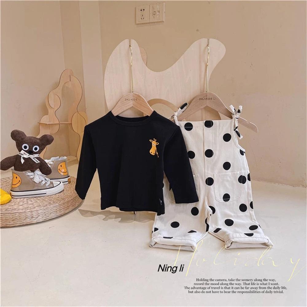 Black T-shirt + polka dot pants (suit), suspenders, Black top (top only), 3716-red floral, 857-White Shirt