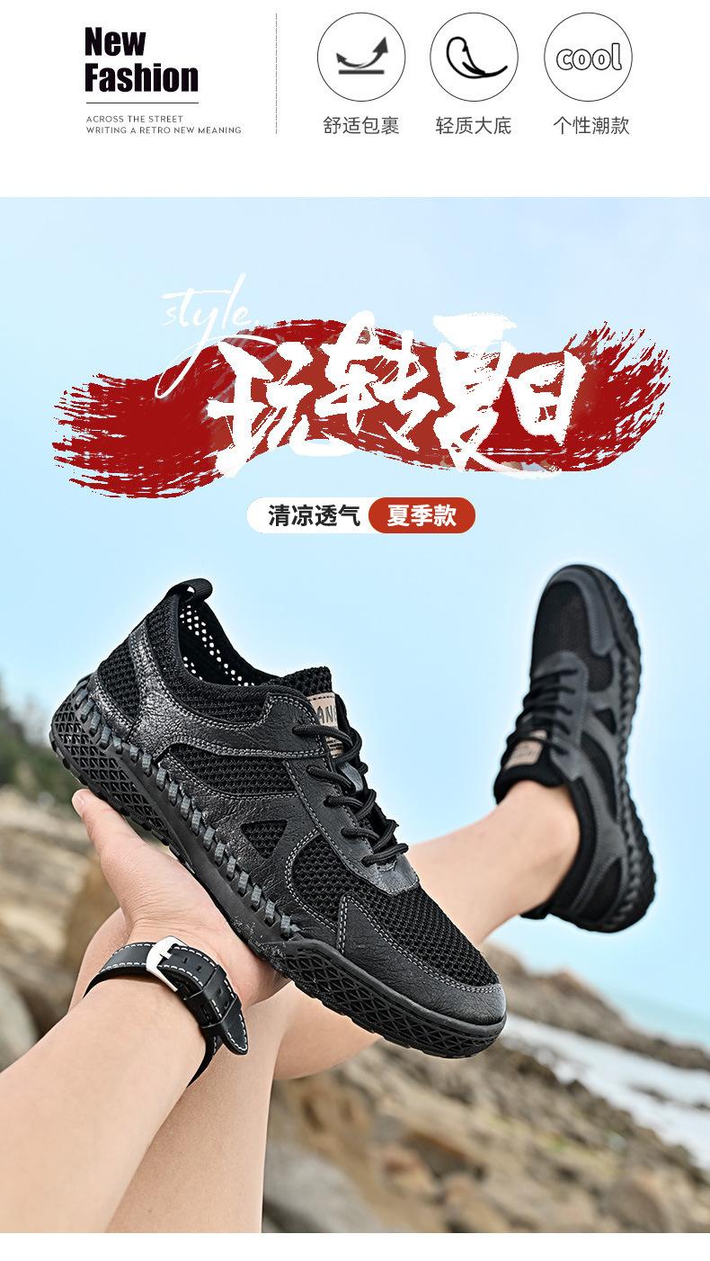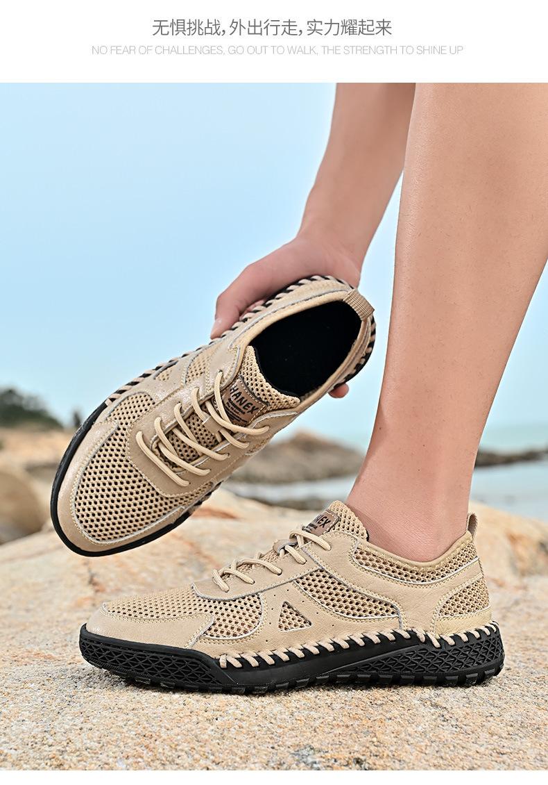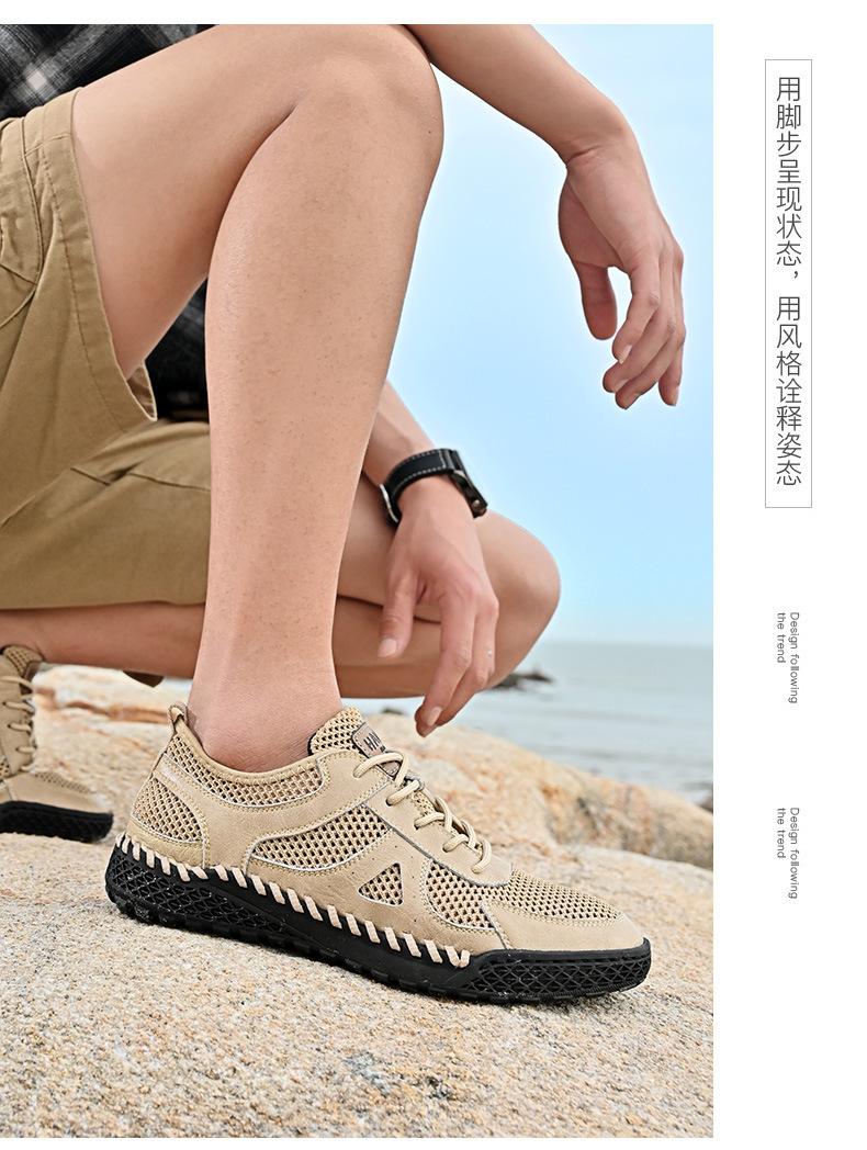 2024 Exportación Talla Grande Moda Verano para Hombre Zapatos de Malla Transpirable Recortados Cosidos a Mano Zapatos de Playa para Exterior Sandalias para Hombre