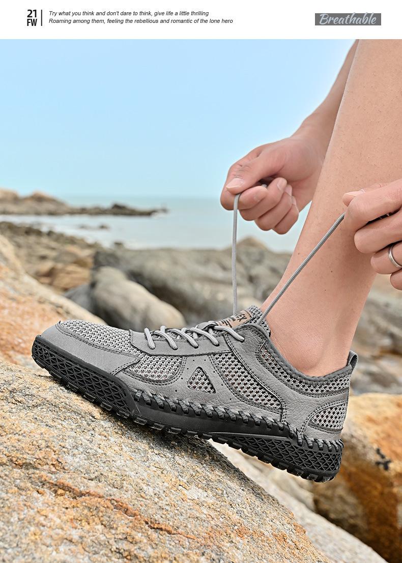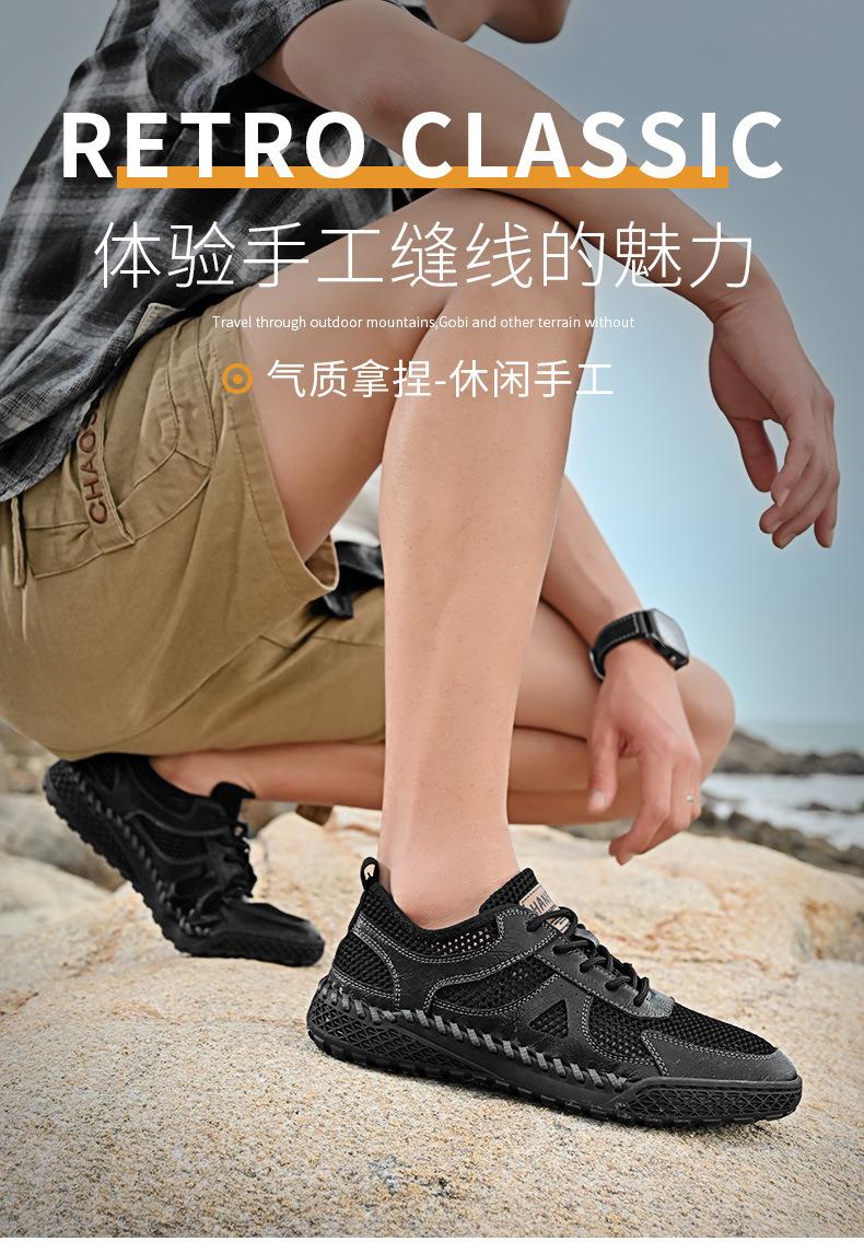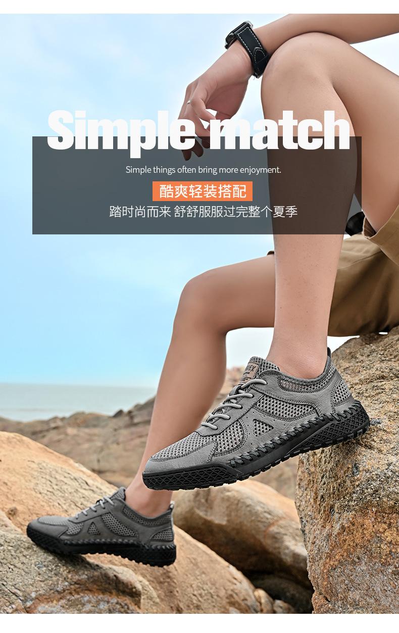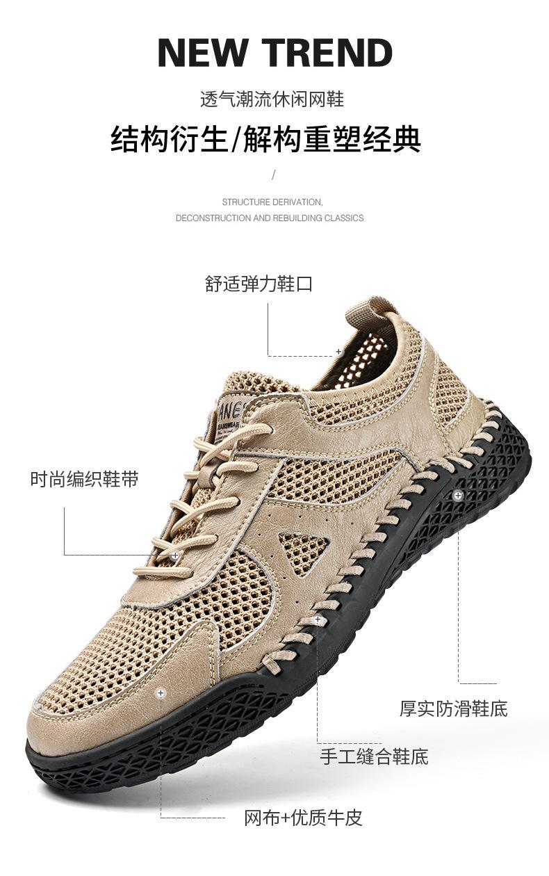 2024 Exportación Talla Grande Moda Verano para Hombre Zapatos de Malla Transpirable Recortados Cosidos a Mano Zapatos de Playa para Exterior Sandalias para Hombre
