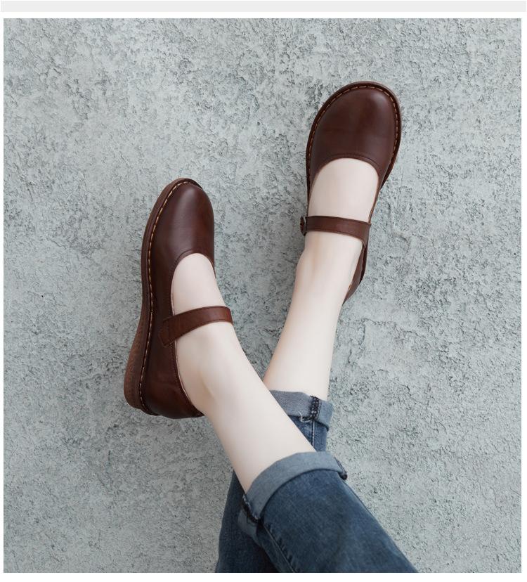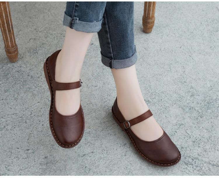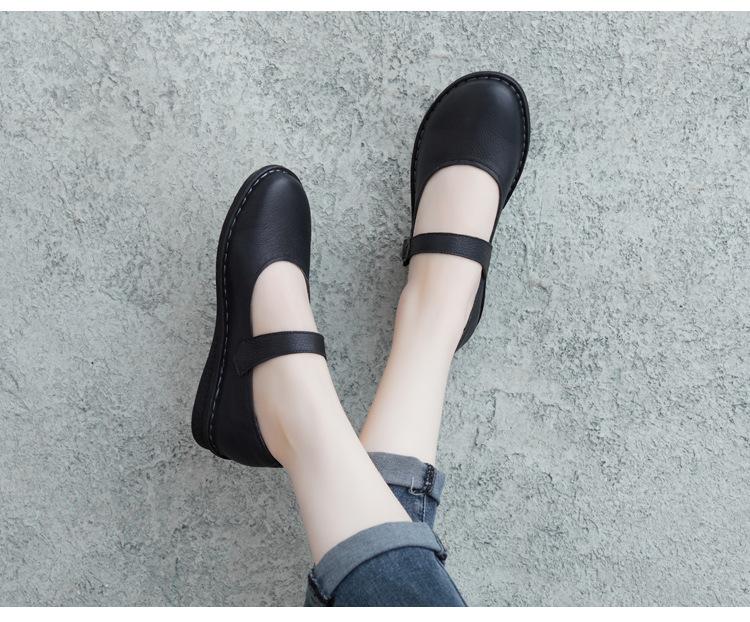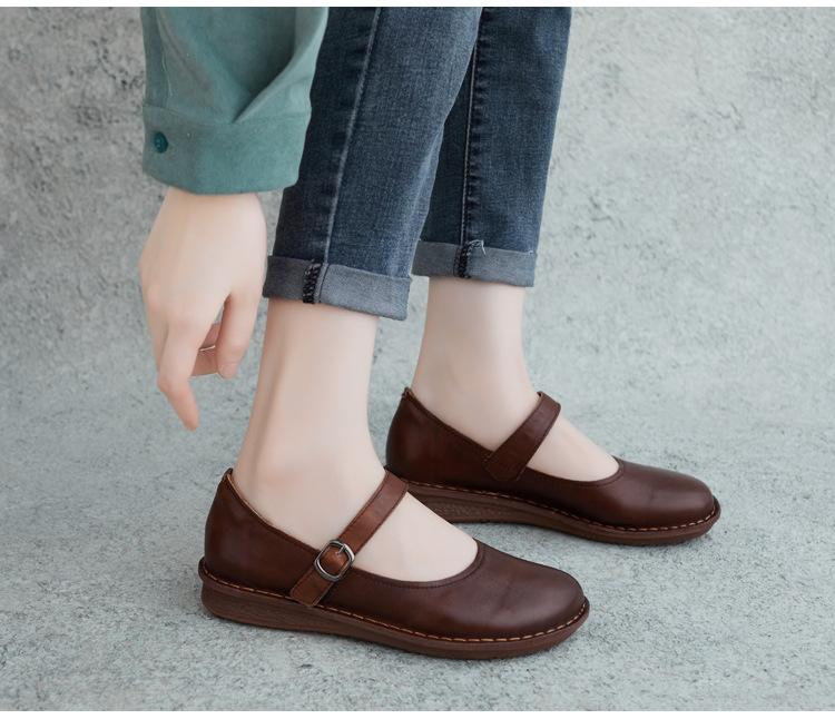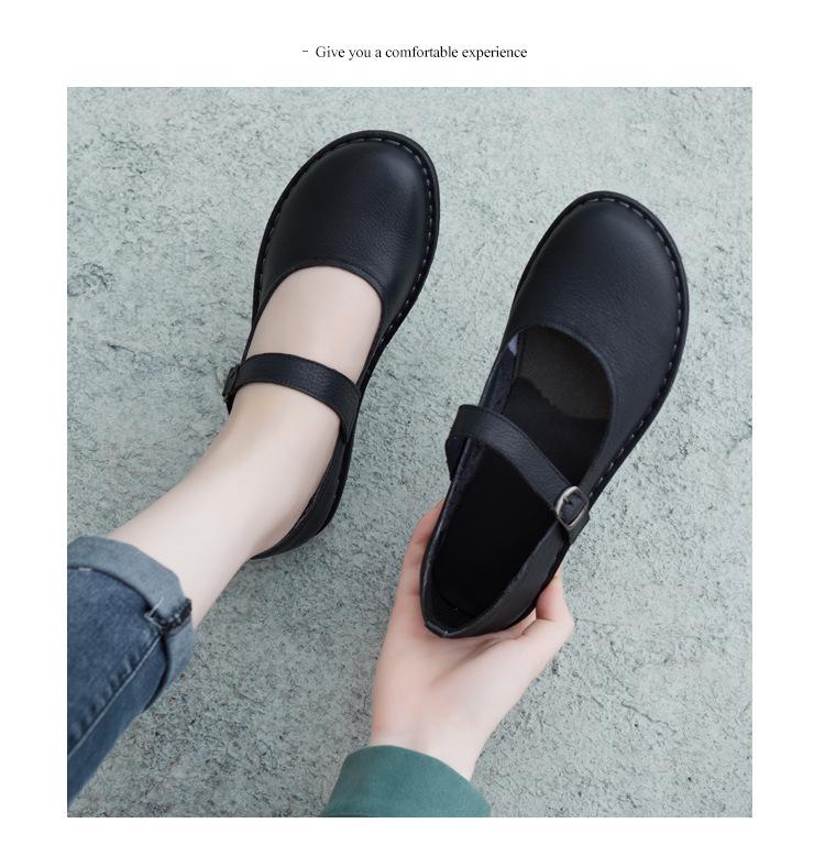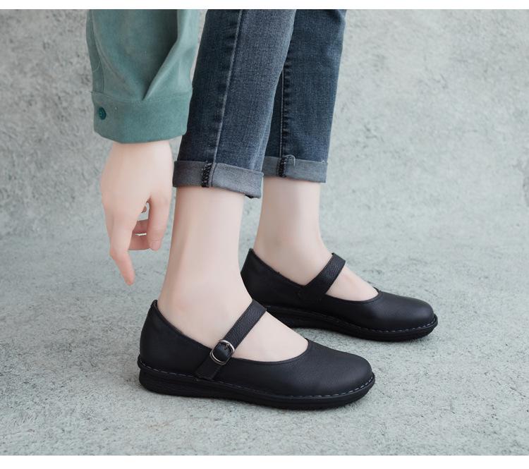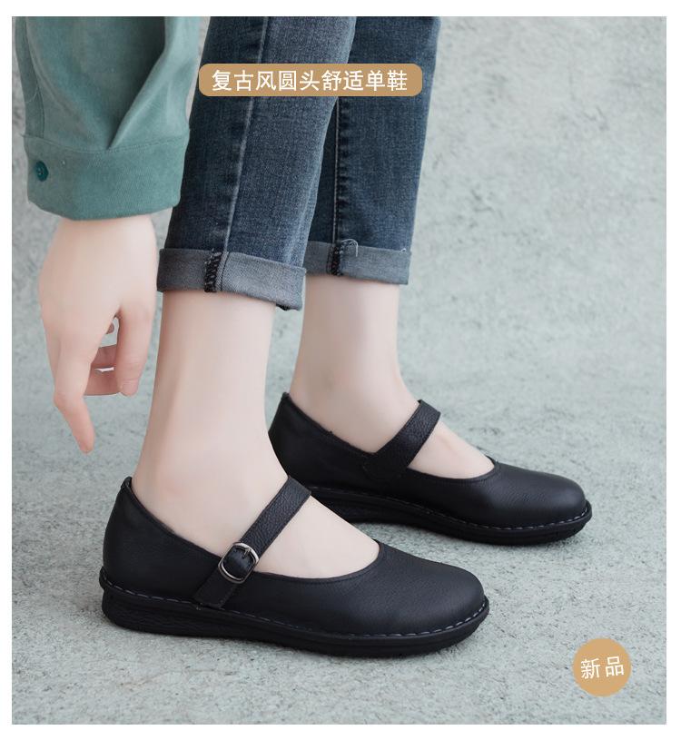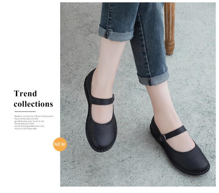 Compra 2025 Primavera Nuevo Cuero Vacuno Casual Punta Redonda Portátil Correa con Hebilla Velcro Cuero Suave Suela Suave Zapatos de Tacón Plano Tacón Bajo al por mayor en Joom.pro