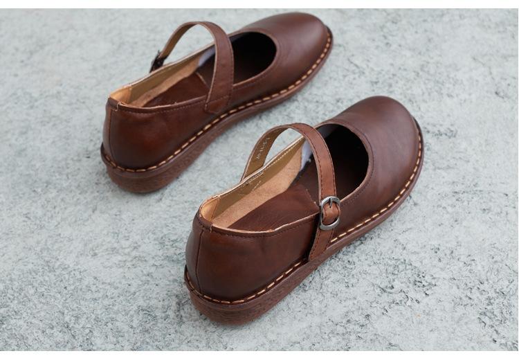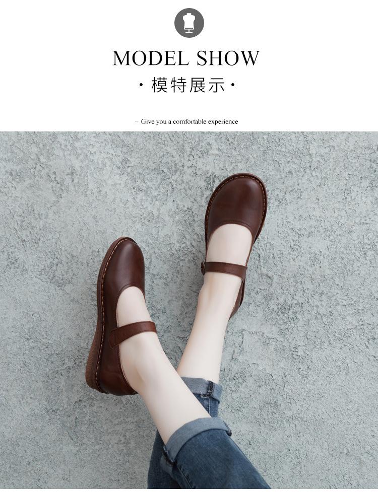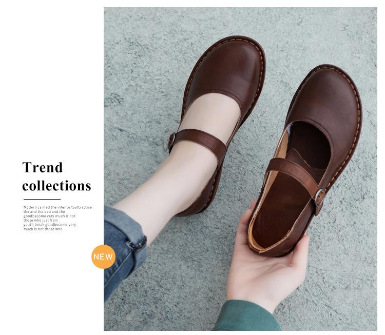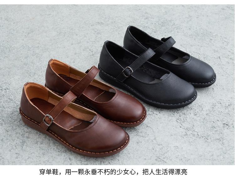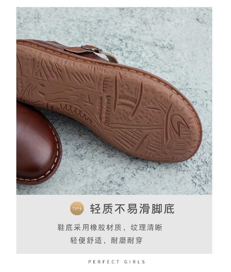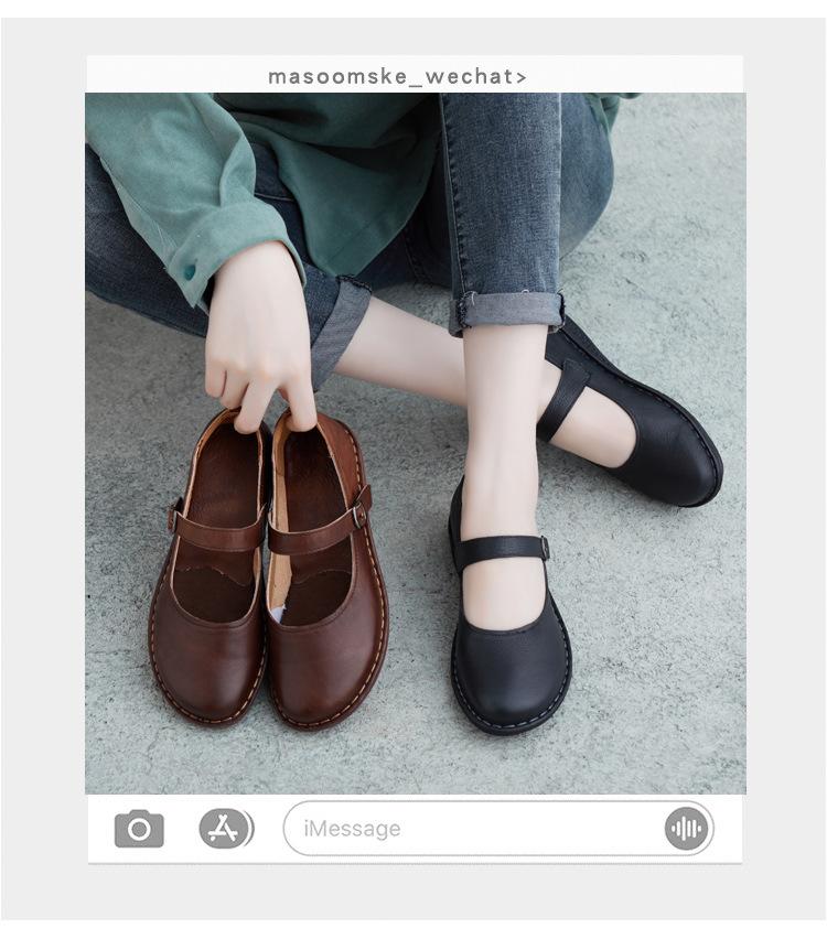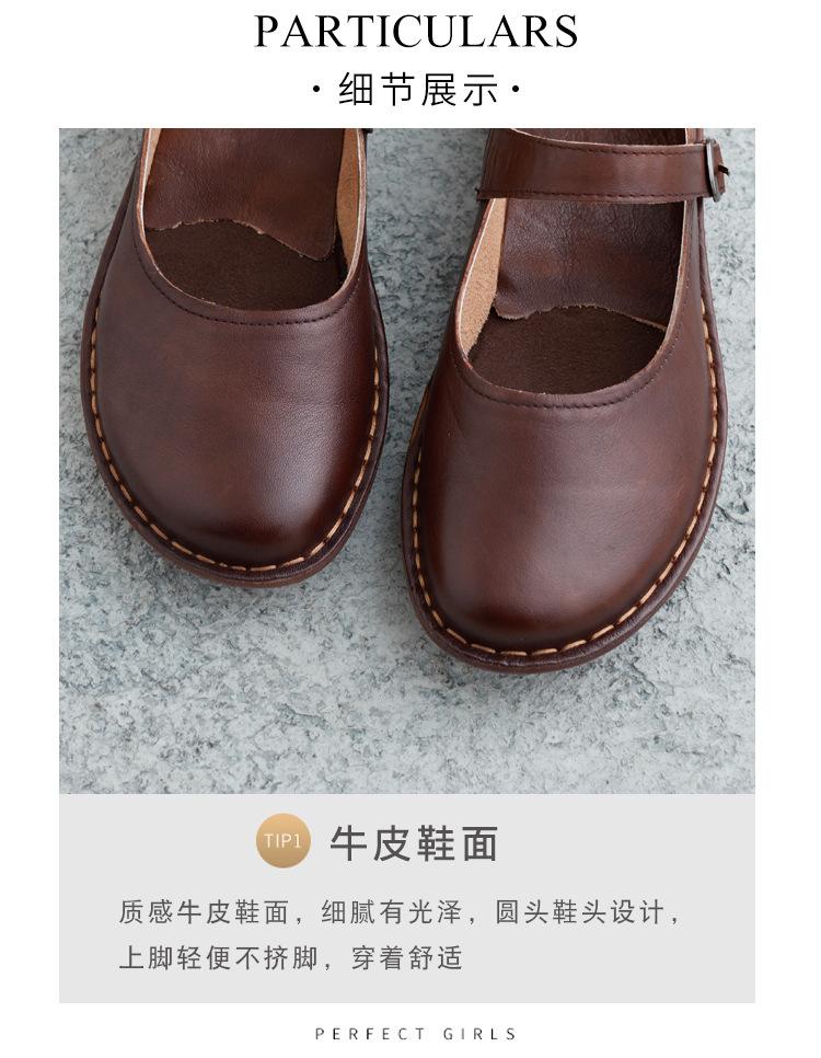 Compra 2025 Primavera Nuevo Cuero Vacuno Casual Punta Redonda Portátil Correa con Hebilla Velcro Cuero Suave Suela Suave Zapatos de Tacón Plano Tacón Bajo al por mayor en Joom.pro
