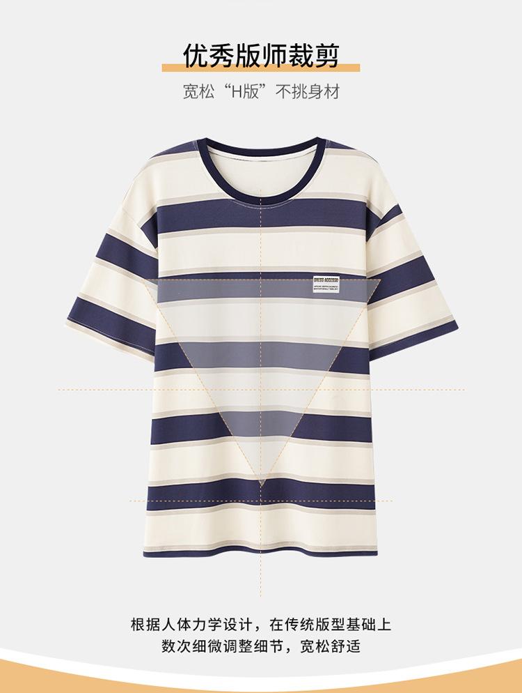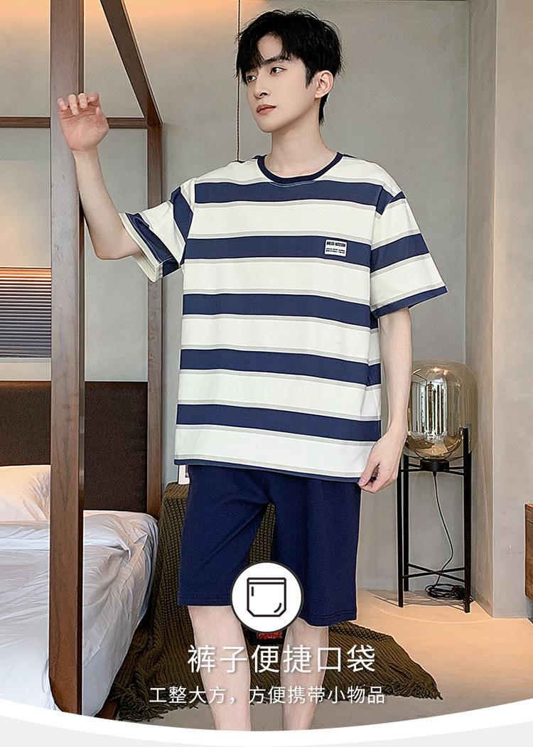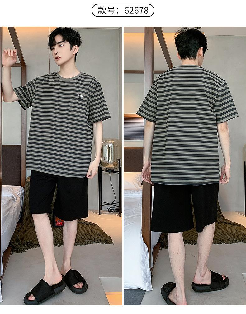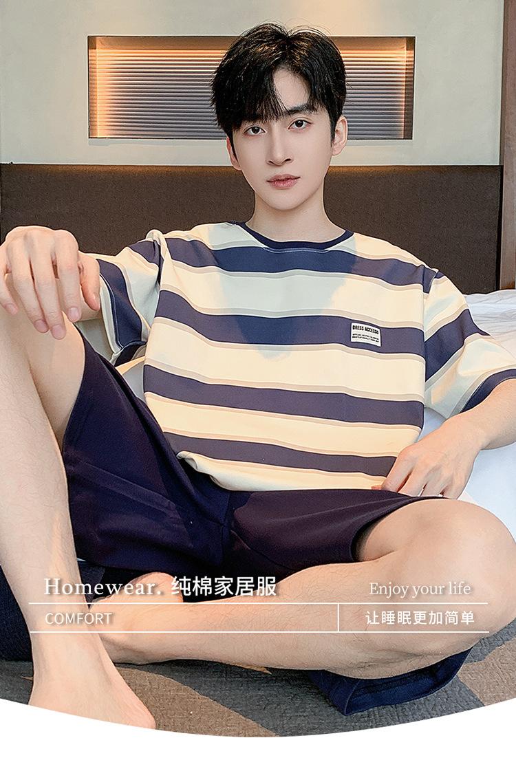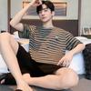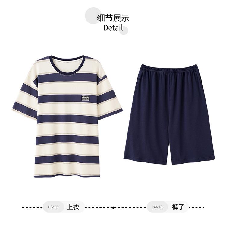 Pijama de algodón para hombre, de verano, de manga corta, fino, holgado, a rayas, para exteriores, ropa de casa de algodón para hombre.