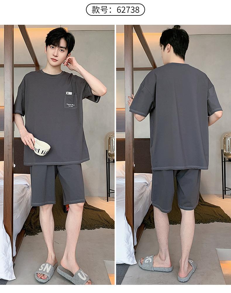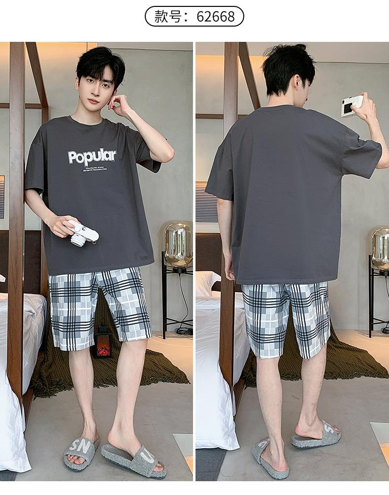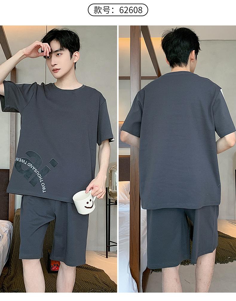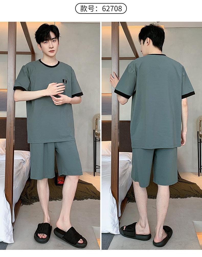Pijama de algodón para hombre, de verano, de manga corta, fino, holgado, a rayas, para exteriores, ropa de casa de algodón para hombre.