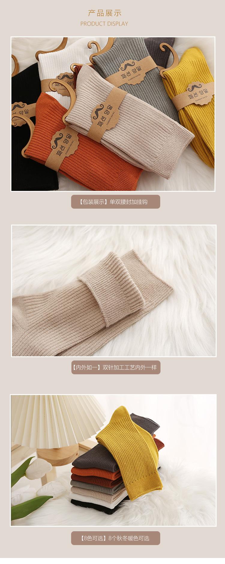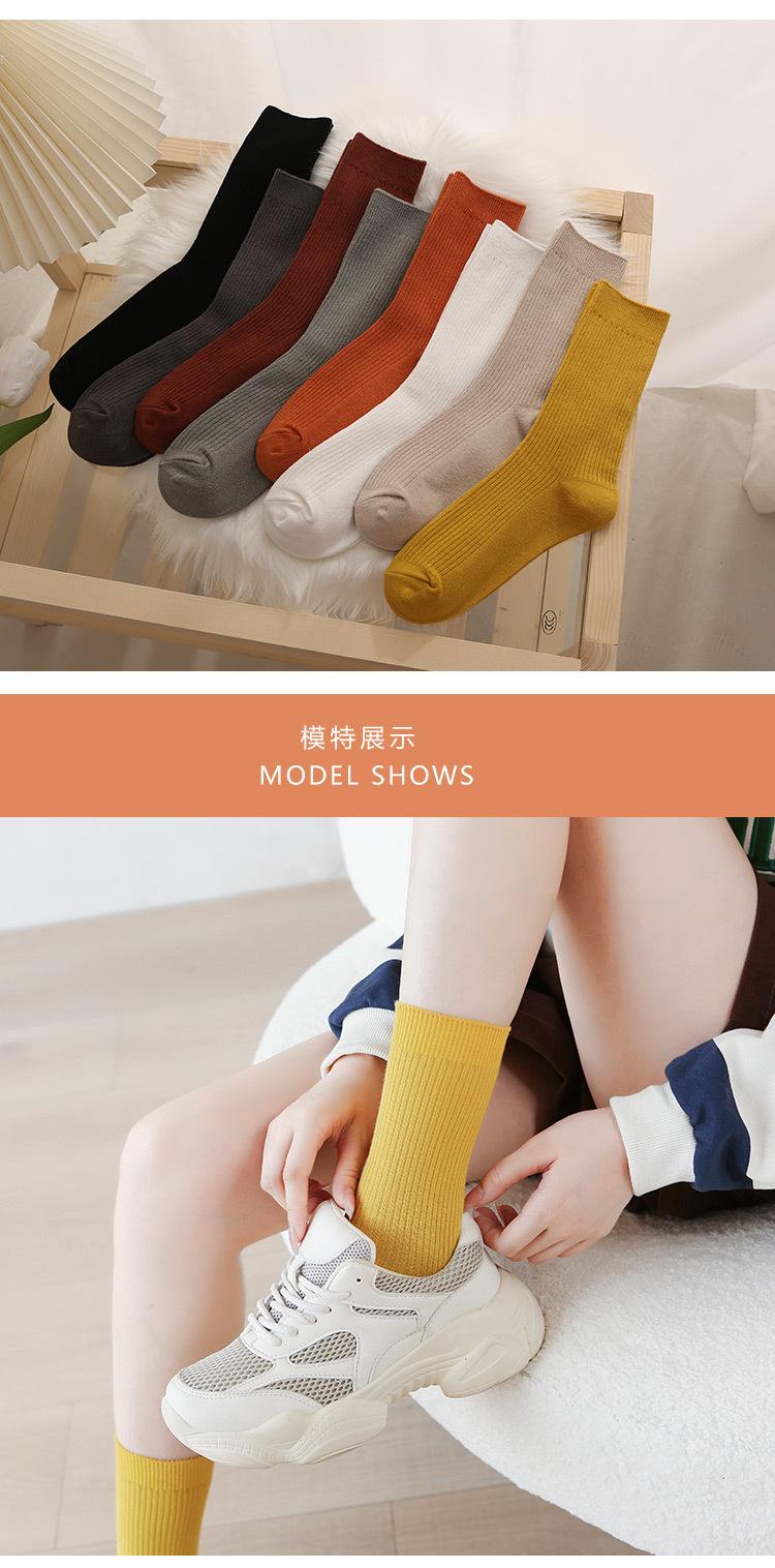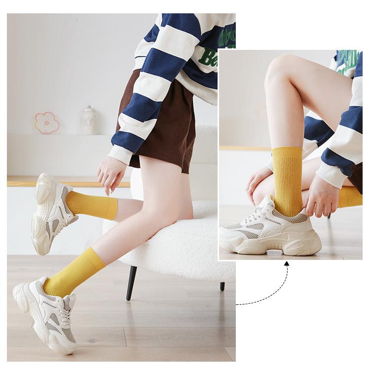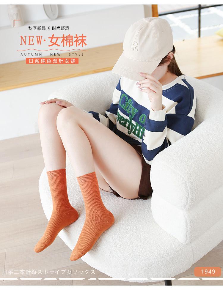 Otoño e Invierno nuevos calcetines para mujer calcetines japoneses de algodón de color sólido de doble aguja con rayas verticales absorbentes del sudor transpirables hasta media pantorrilla calcetines para mujer al por mayor