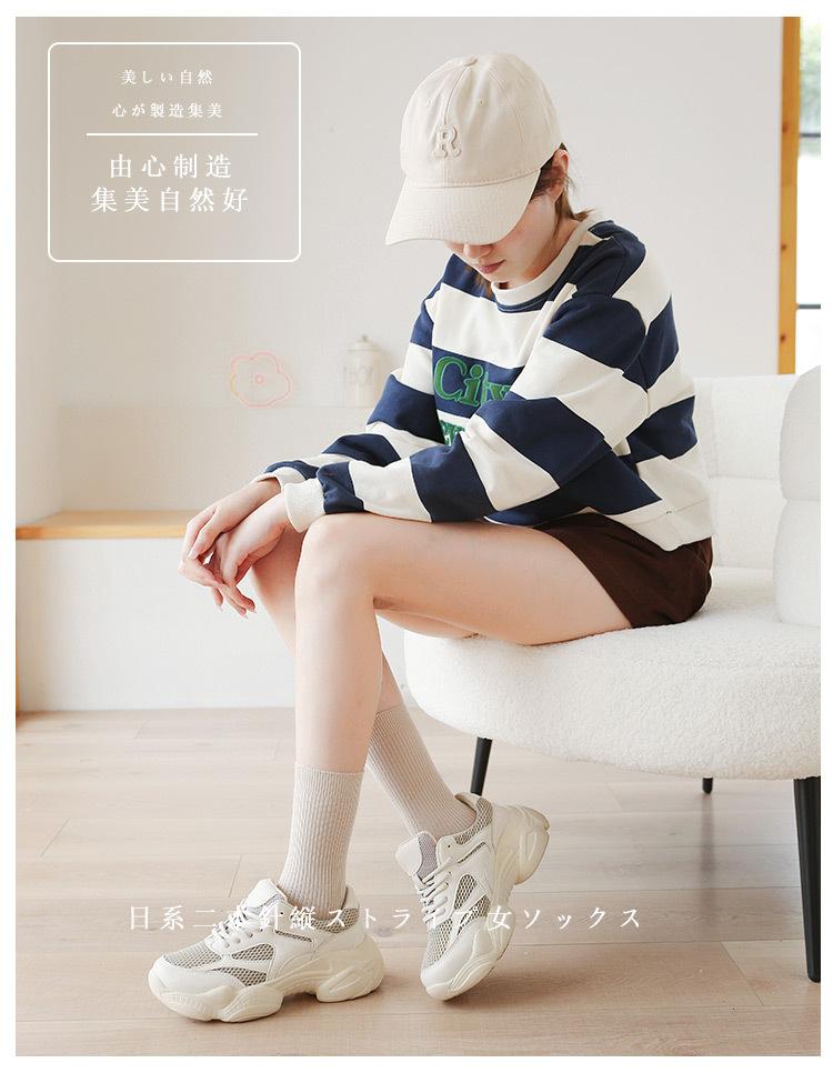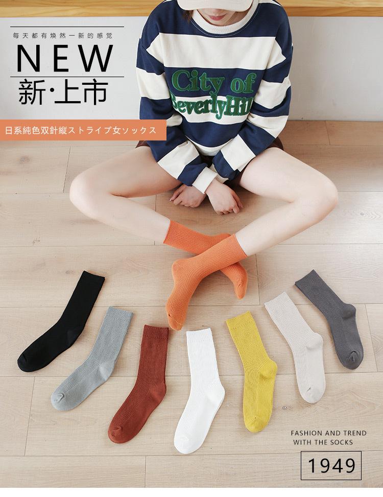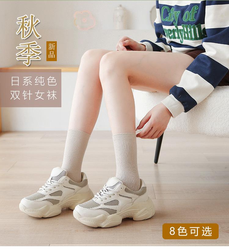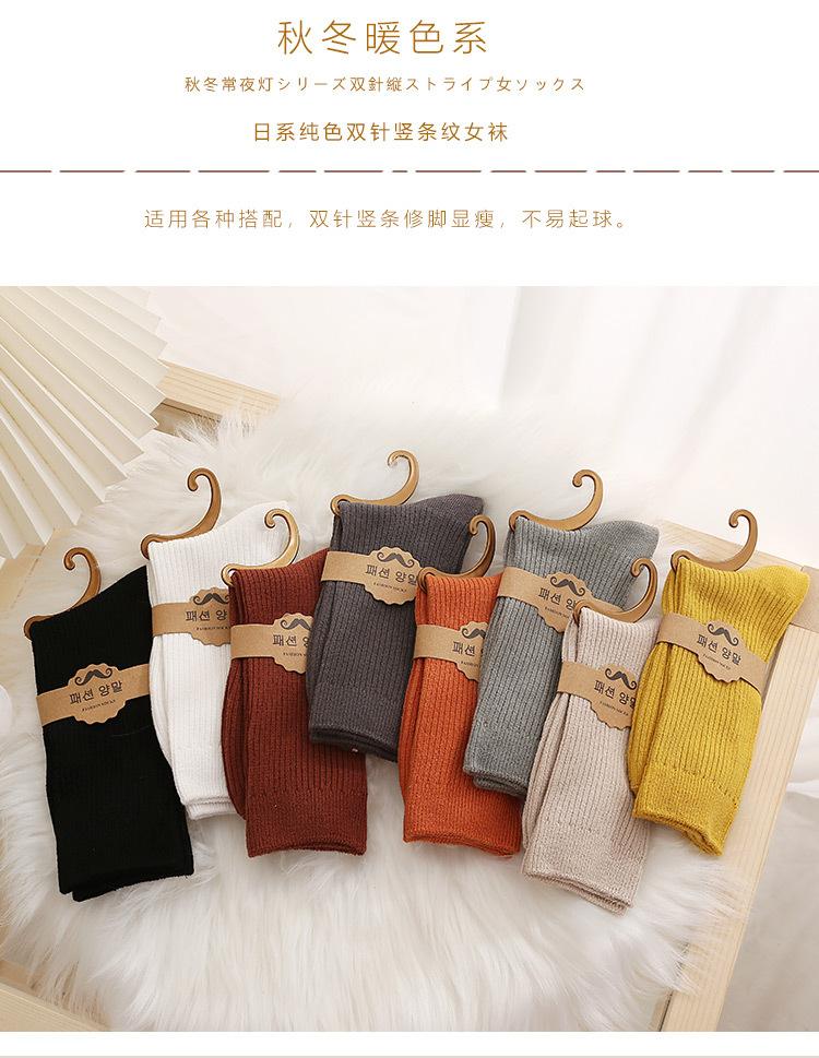 Compra Otoño e Invierno nuevos calcetines para mujer calcetines japoneses de algodón de color sólido de doble aguja con rayas verticales absorbentes del sudor transpirables hasta media pantorrilla calcetines para mujer al por mayor al por mayor en Joom.pro