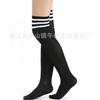 Medias de algodón gruesas de estilo japonés, sexys, de rayas blancas y negras, con tres barras y hasta la rodilla, para estudiantes.