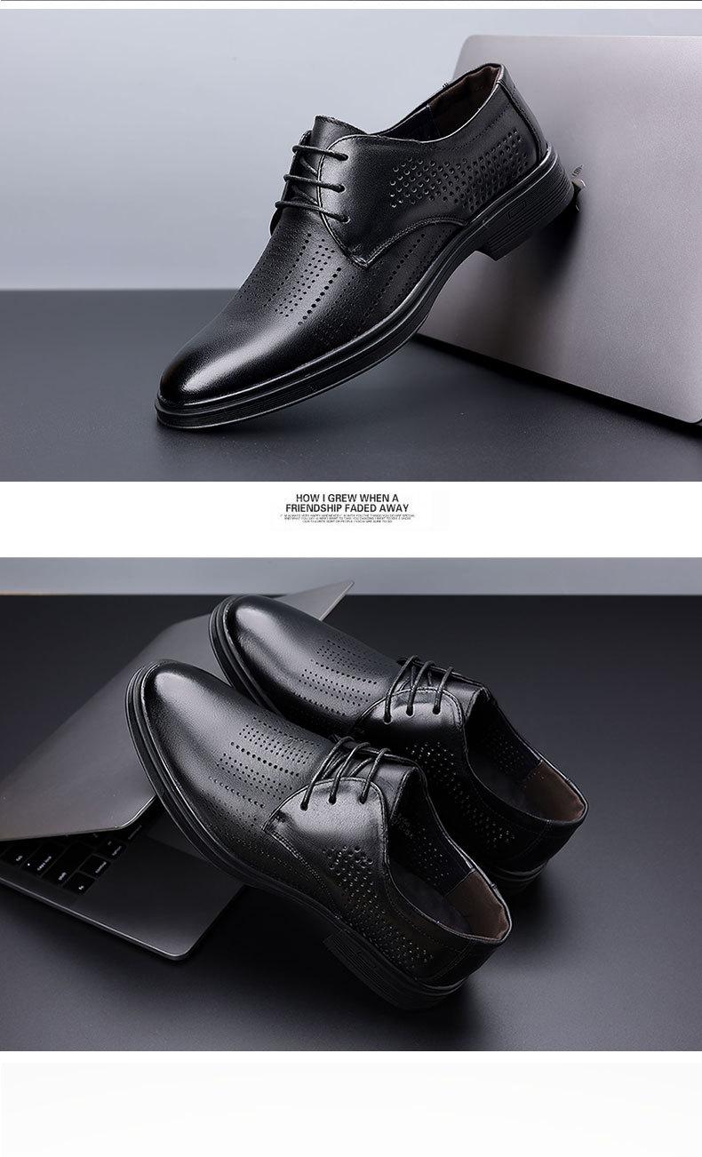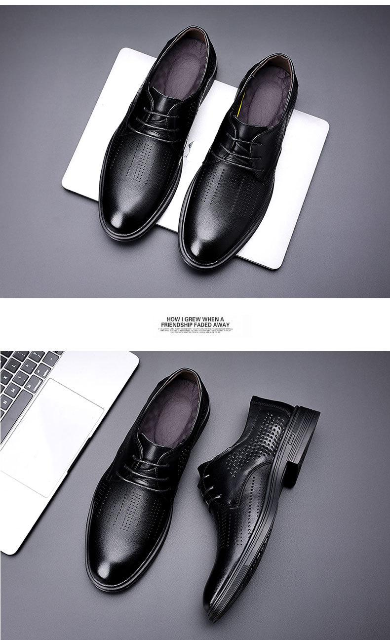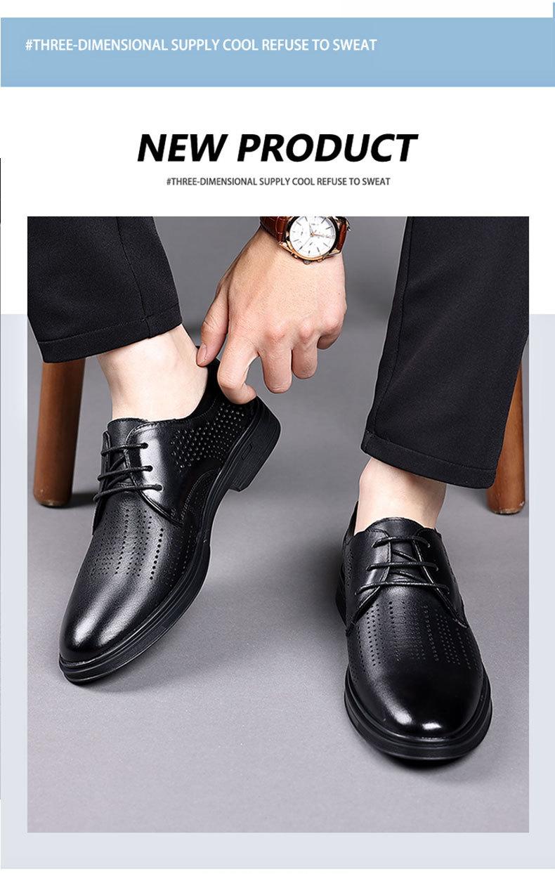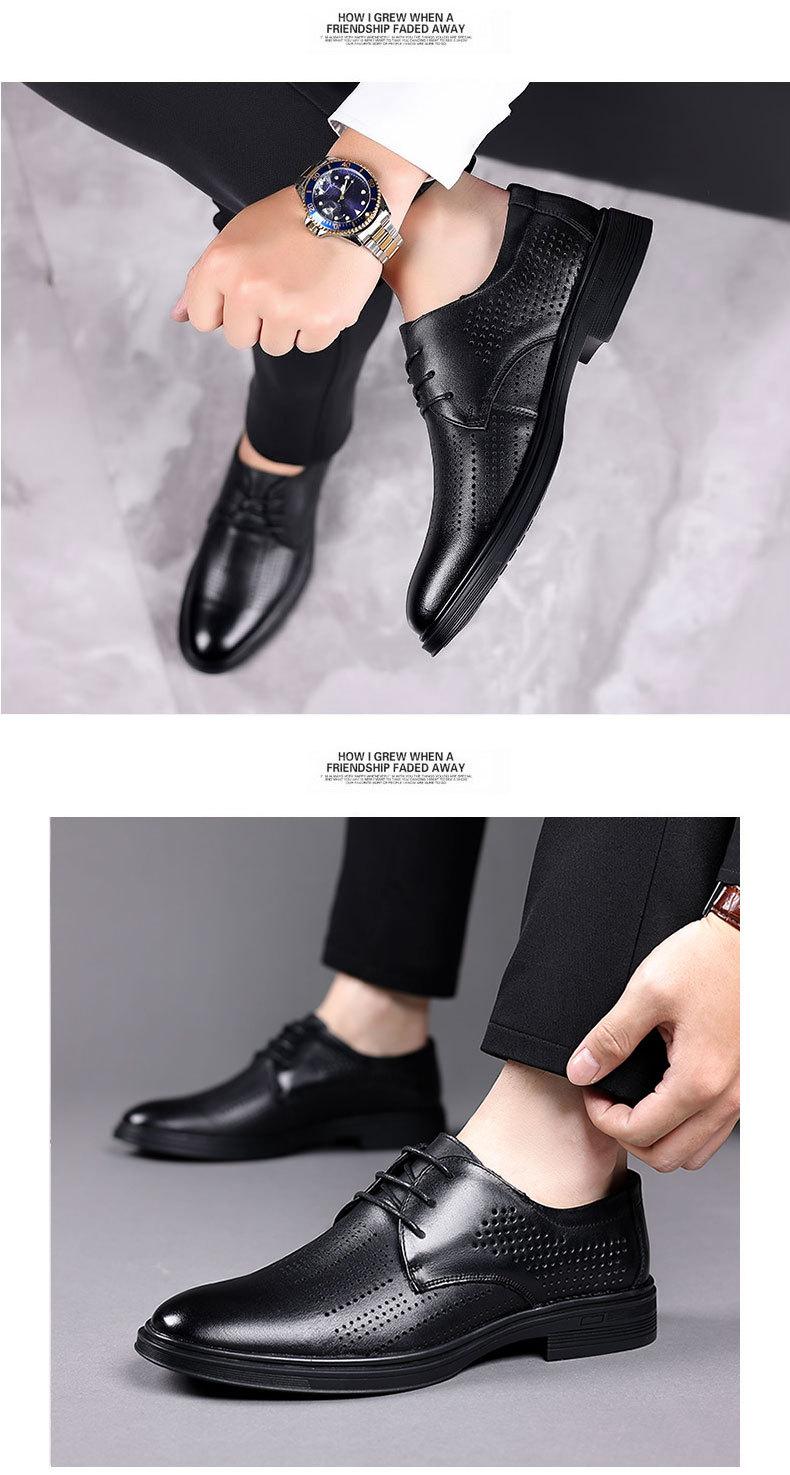 Compra Zapatos de Cuero para Hombre Vestir Negocios Casual Cuero Suela Blanda Verano Calado Transpirable Gruesos Negros Zapatos de Boda para Novio Zapatos de Hombre al por mayor en Joom.pro