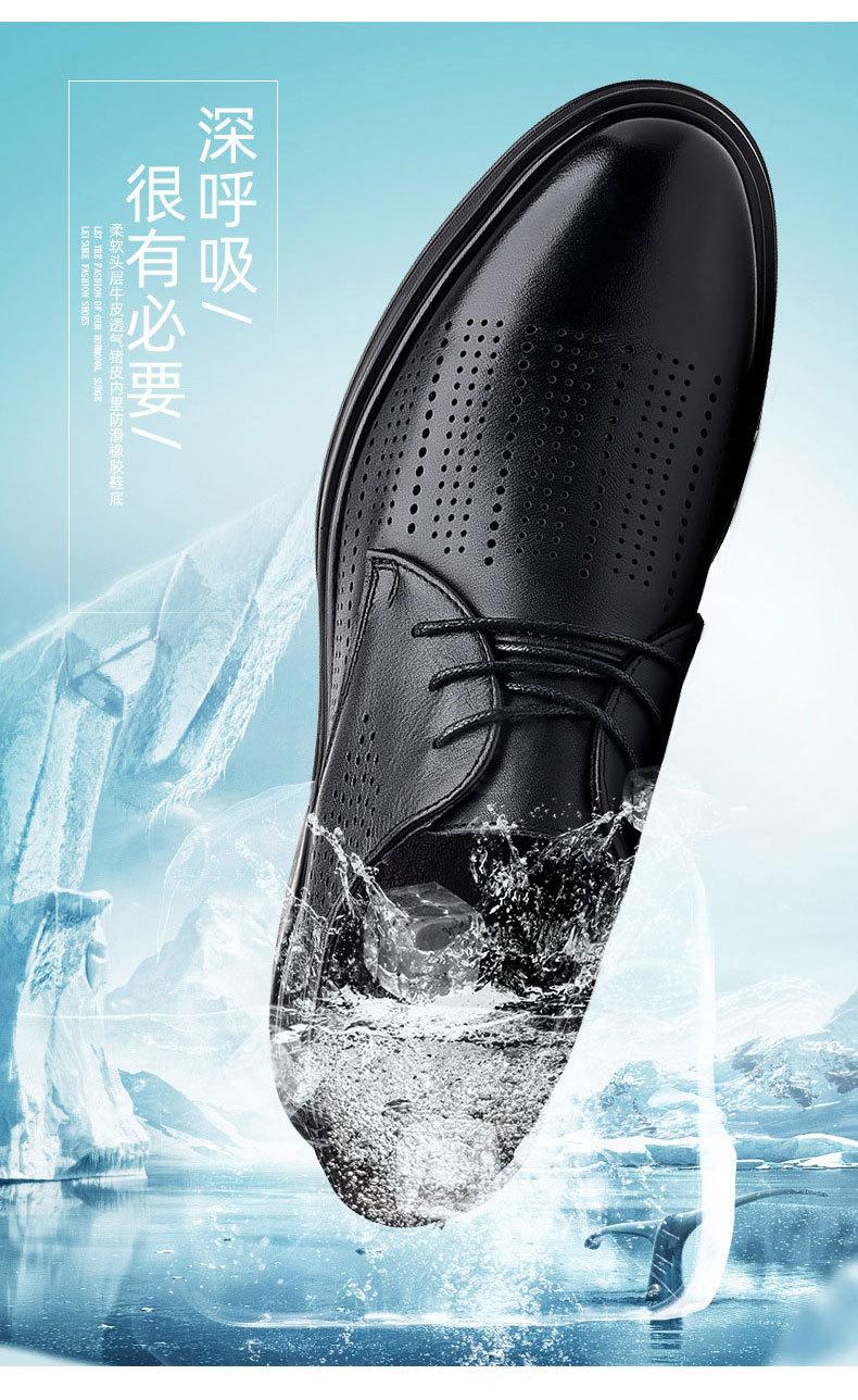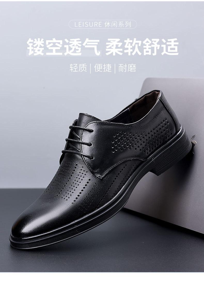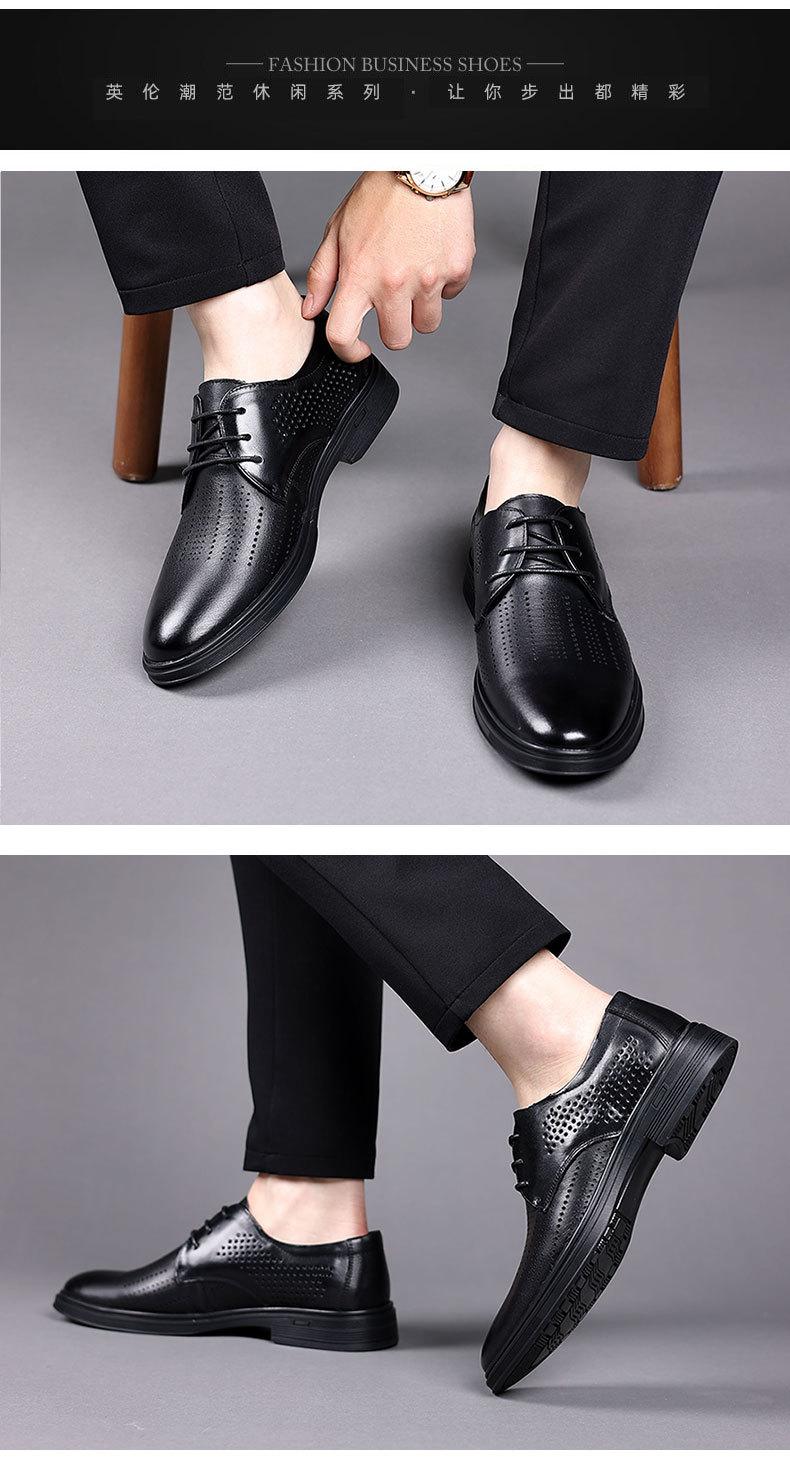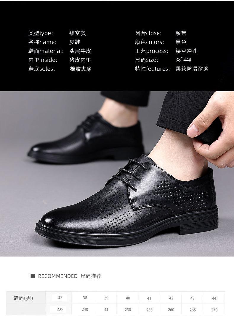 Compra Zapatos de Cuero para Hombre Vestir Negocios Casual Cuero Suela Blanda Verano Calado Transpirable Gruesos Negros Zapatos de Boda para Novio Zapatos de Hombre al por mayor en Joom.pro