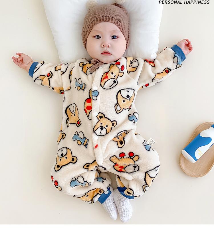 Ropa para Bebé Recién Nacido, Ropa de Otoño e Invierno, Pijama de Franela para Bebé, Mameluco Grueso y Cálido de Terciopelo Coral, Mangas Largas