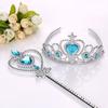 Conjunto de seis piezas de accesorios de ropa de la princesa Elsa de Frozen, corona, varita mágica, collar, pendientes, anillo y guantes.