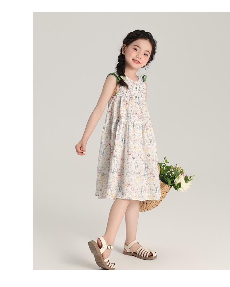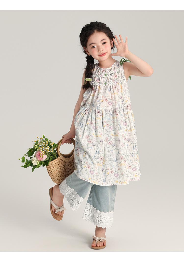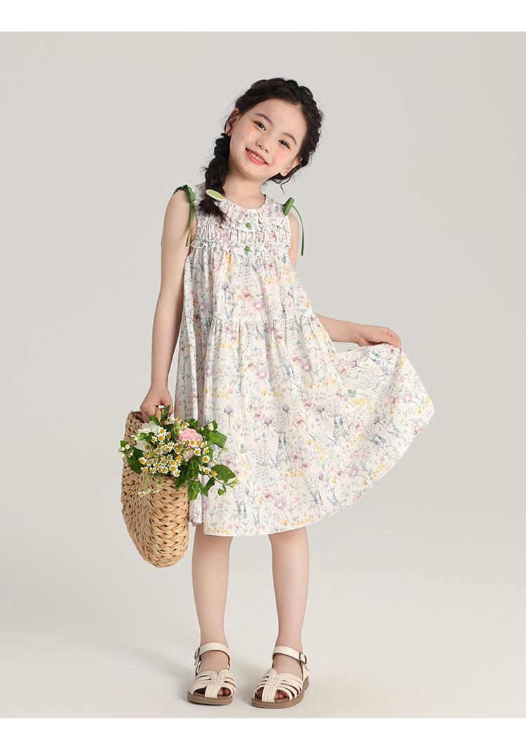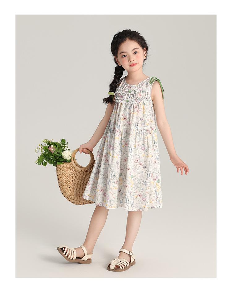 2024 Nuevo Verano Faldas Florales para Niñas Estilo Fresco y Elegante Vestido para Bebé Ligero y Transpirable Vestido Chaleco