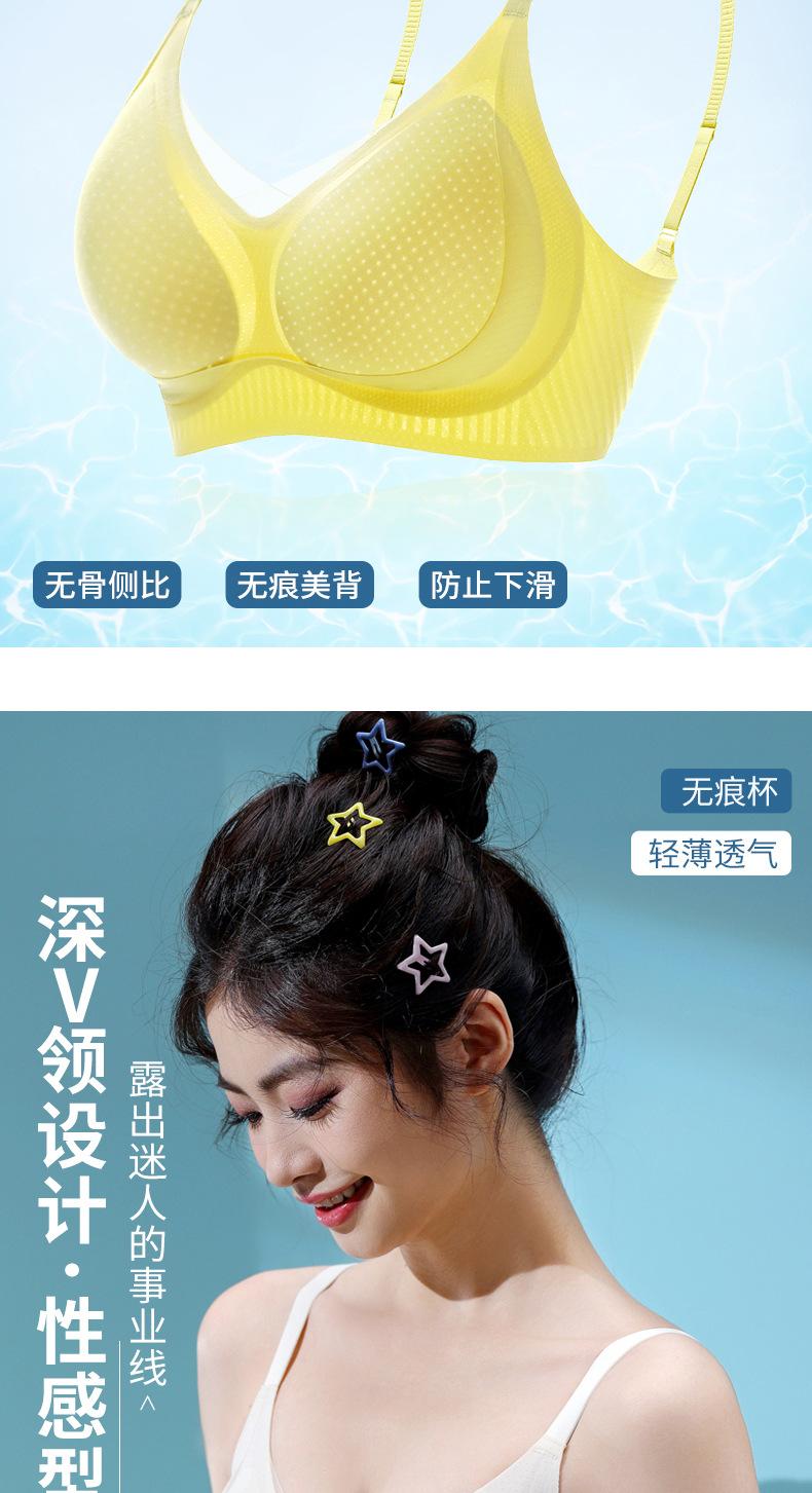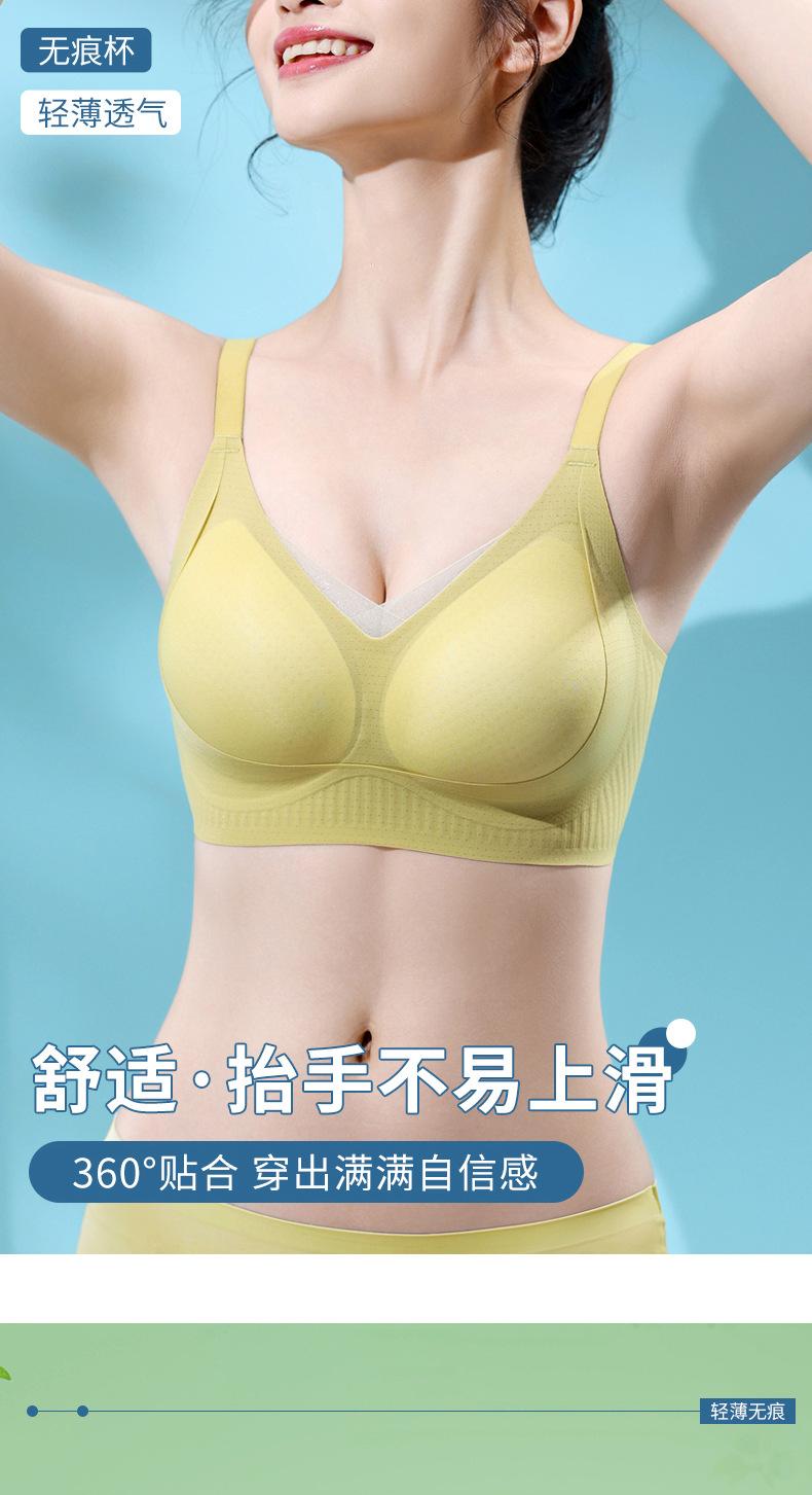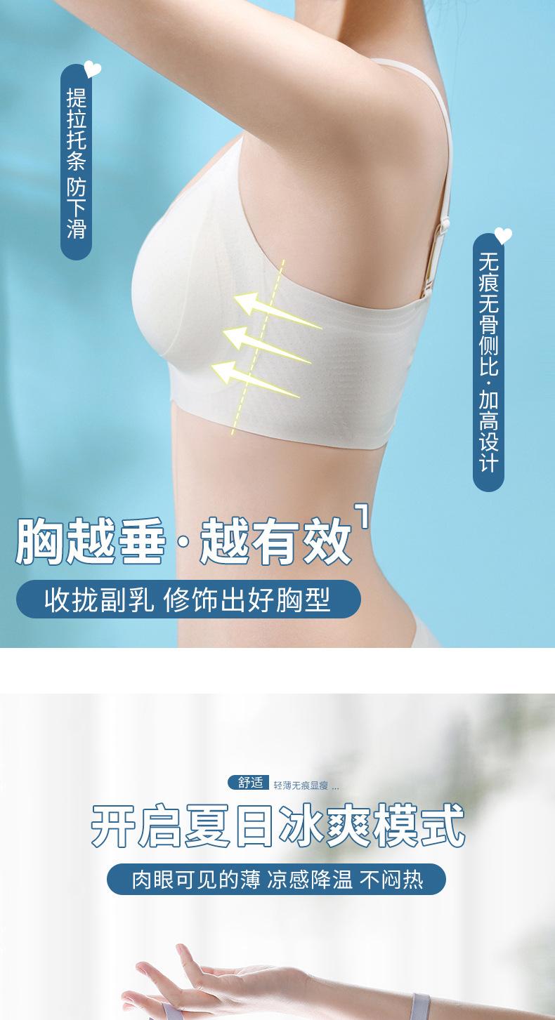 | Ropa interior fina de verano con copa fija sin costuras para mujer, camisola sin aros, chaleco de pecho grande, sujetador pequeño, transpirable y cómodo |