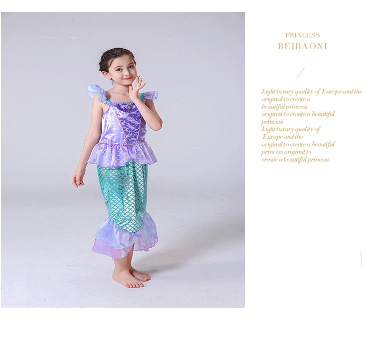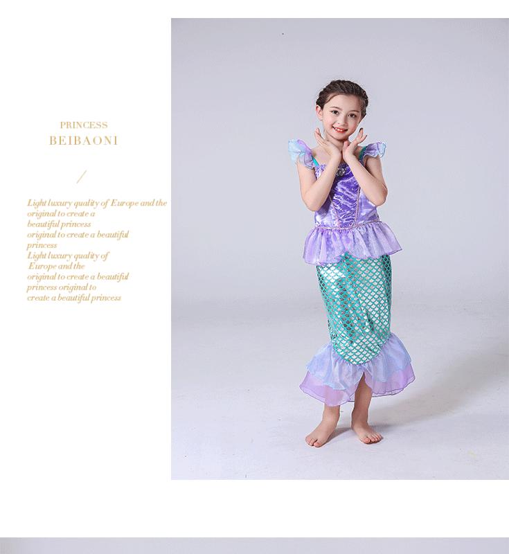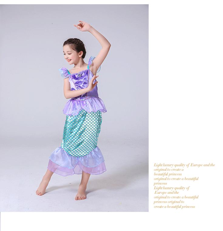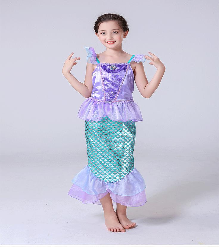 Vestido de niña, comercio exterior, vestido de princesa sirena, disfraz de Halloween, estilo europeo y americano, vestido de sirena con tirantes