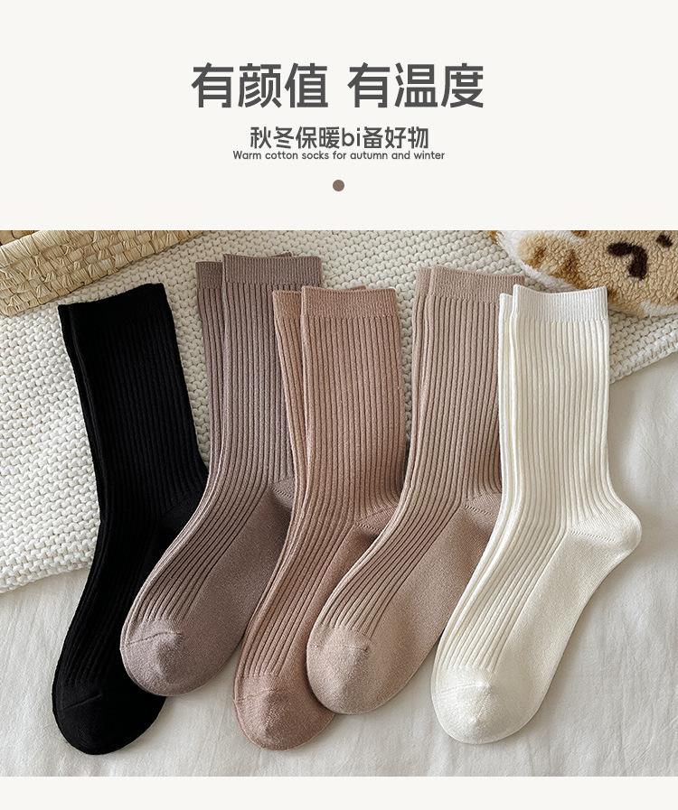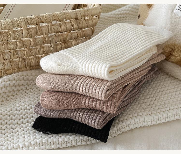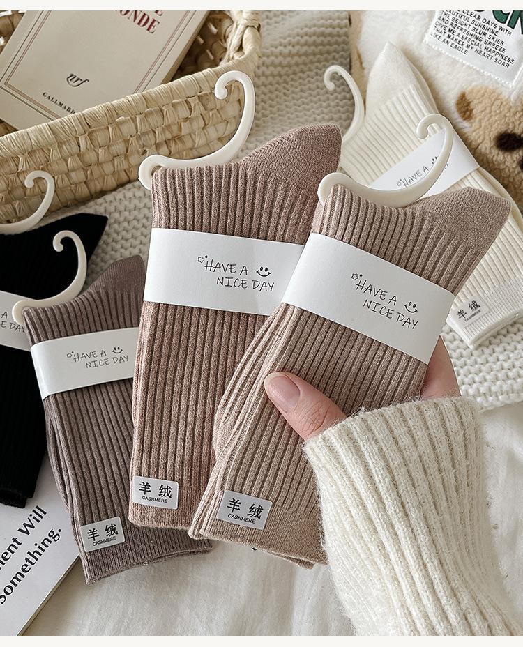 Calcetines de Lana Calcetines de Mujer Otoño e Invierno Nuevo Color Puro Engrosado Cálido Calcetines de Mujer Zhuji Calcetines de Cachemira de Doble Aguja de Media Caña