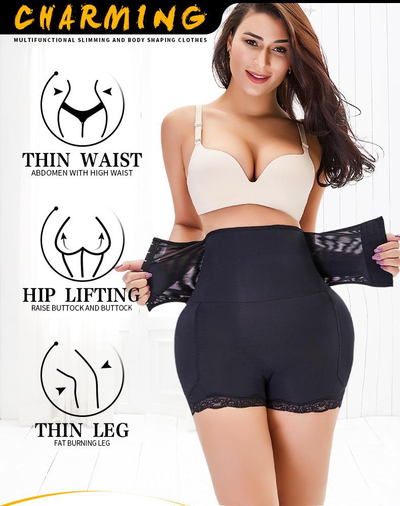 TOPMELON Explosions Mujer Gorda Almohadilla de Esponja Moldeadora de Cuerpo Cruz Completa Cadera Onda Flor Cadera Bóxer Bragas A198B