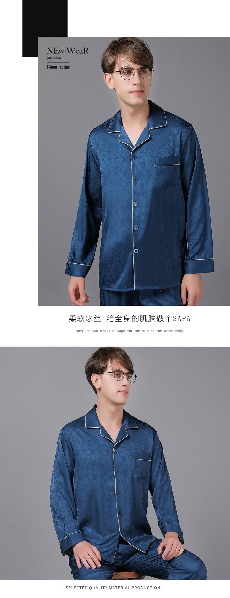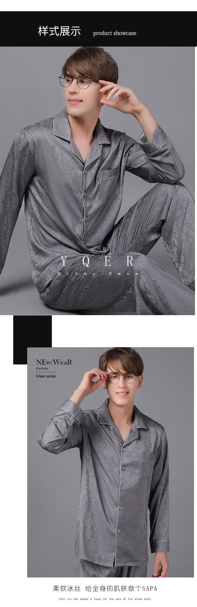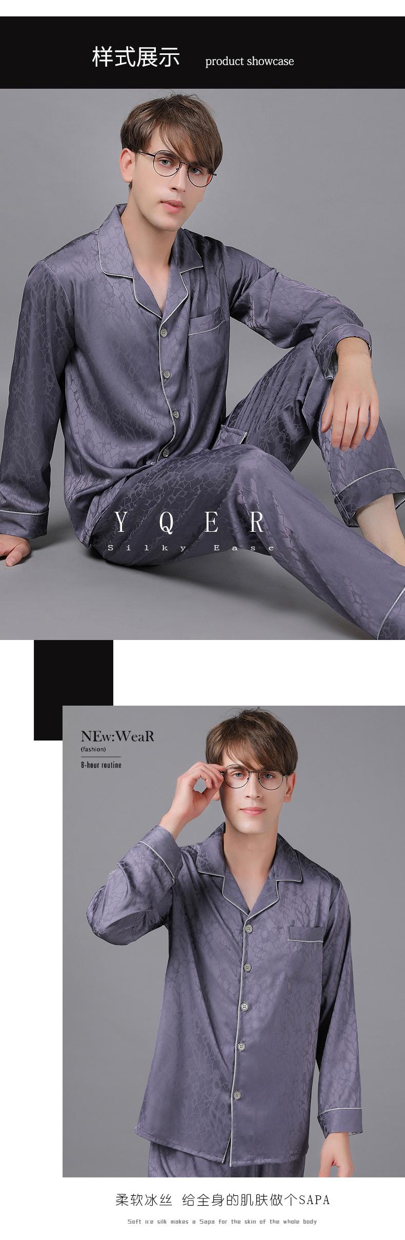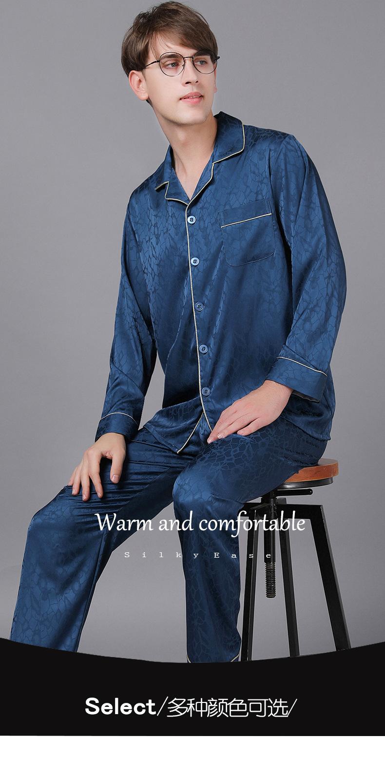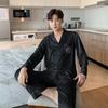 Pijamas de manga larga para hombre, de primavera y otoño, de seda fina, para el hogar, venta al por mayor
