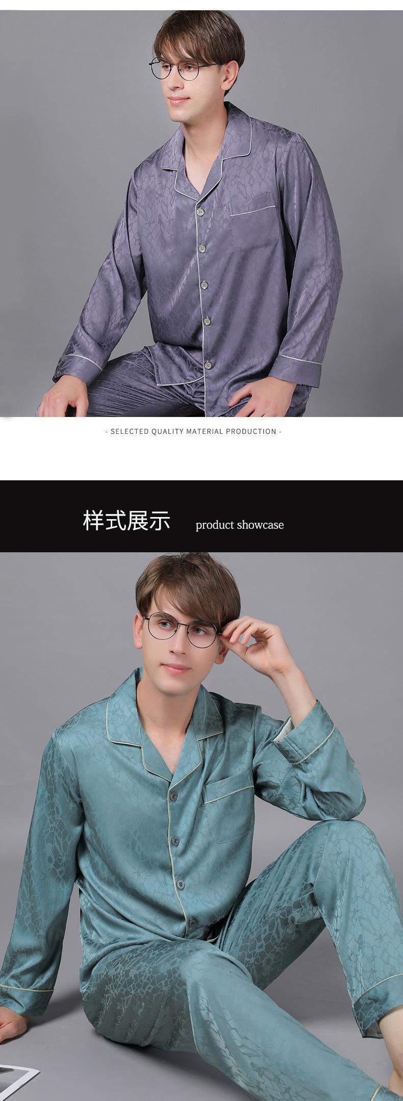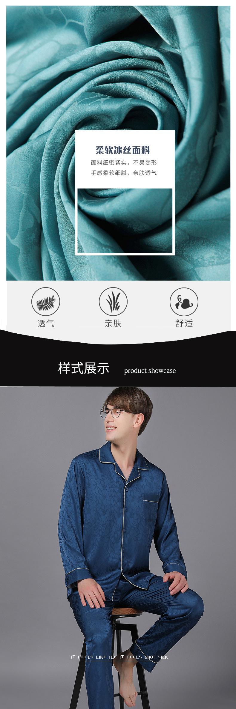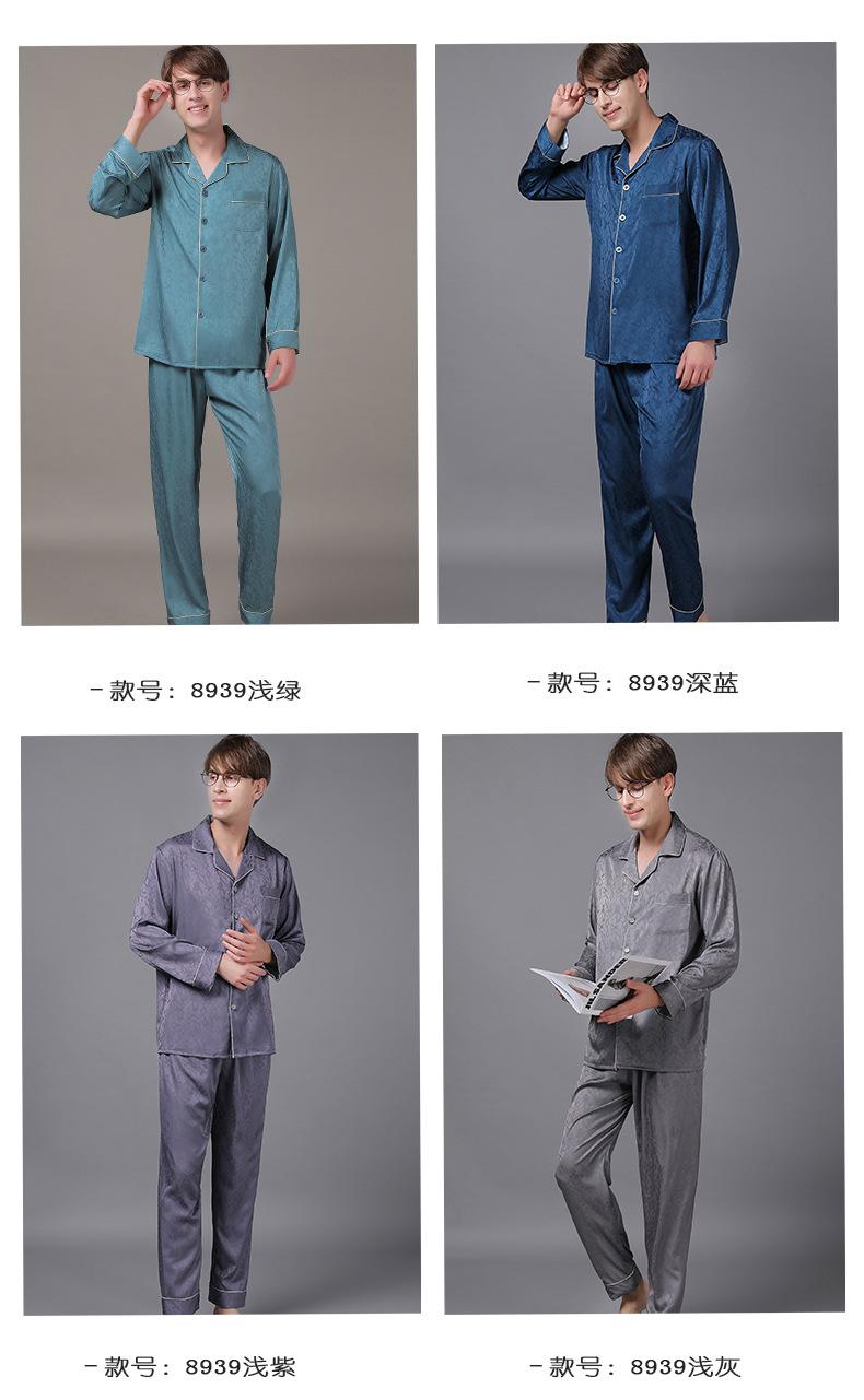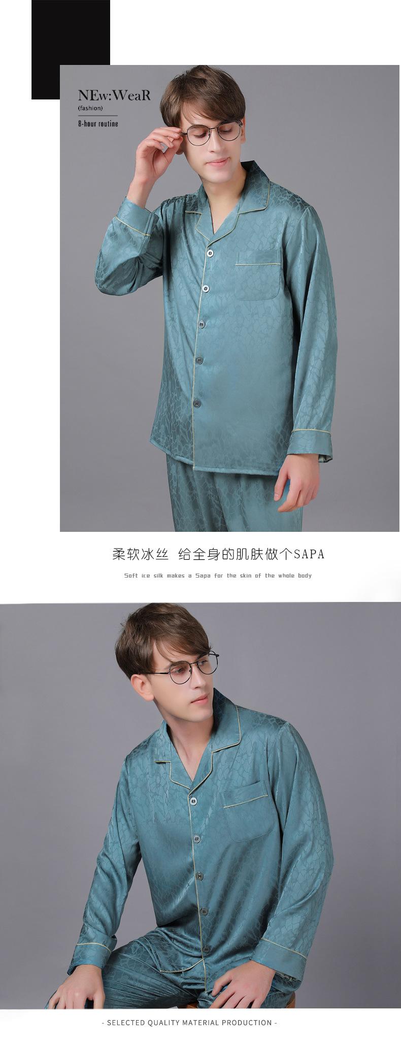 Pijamas de manga larga para hombre, de primavera y otoño, de seda fina, para el hogar, venta al por mayor