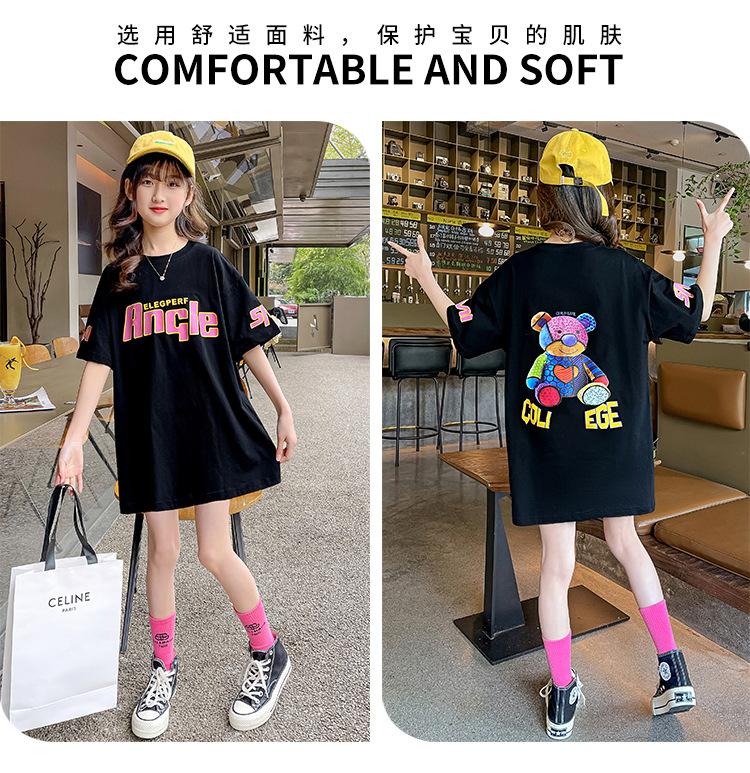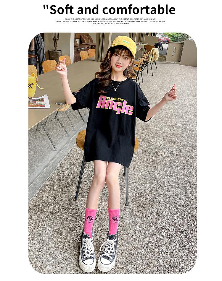 Vestido de Camiseta Holgado de Verano para Niñas 2023 Nuevo Estilo para Niñas Mayores Tops de Manga Corta a la Moda para Niños Pequeños