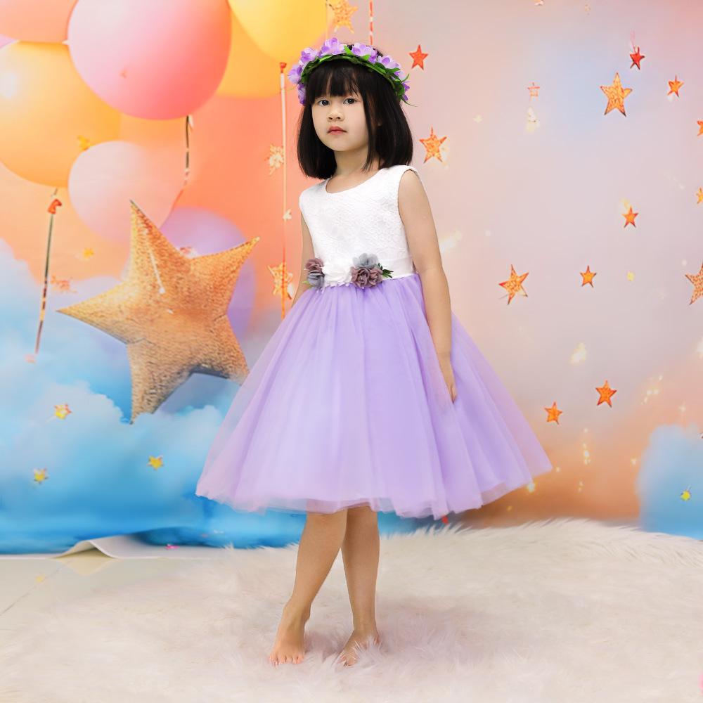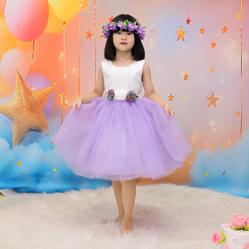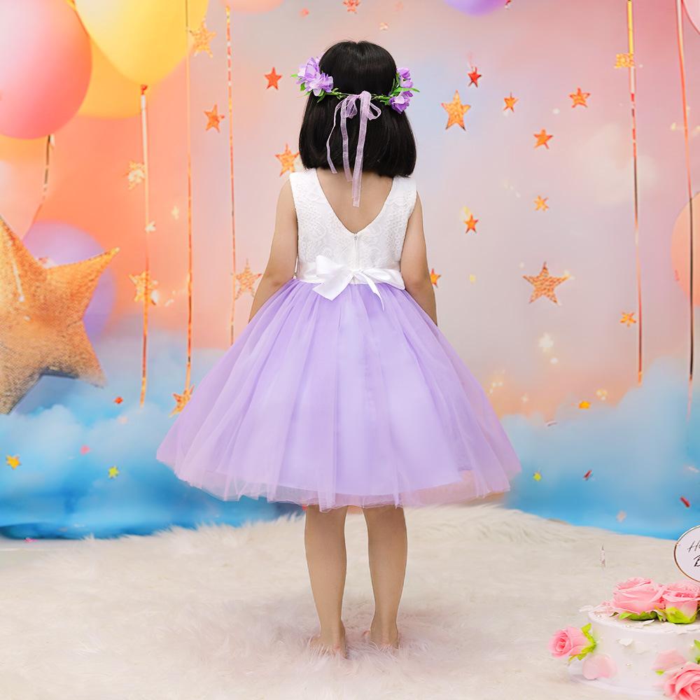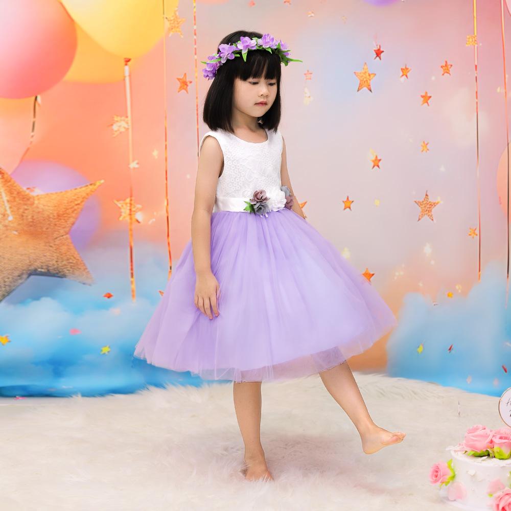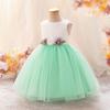 Vestido infantil nuevo europeo y americano, sin mangas, de malla floral a juego de colores, vestido de princesa para cumpleaños de niña, actuación del 1 de junio