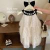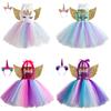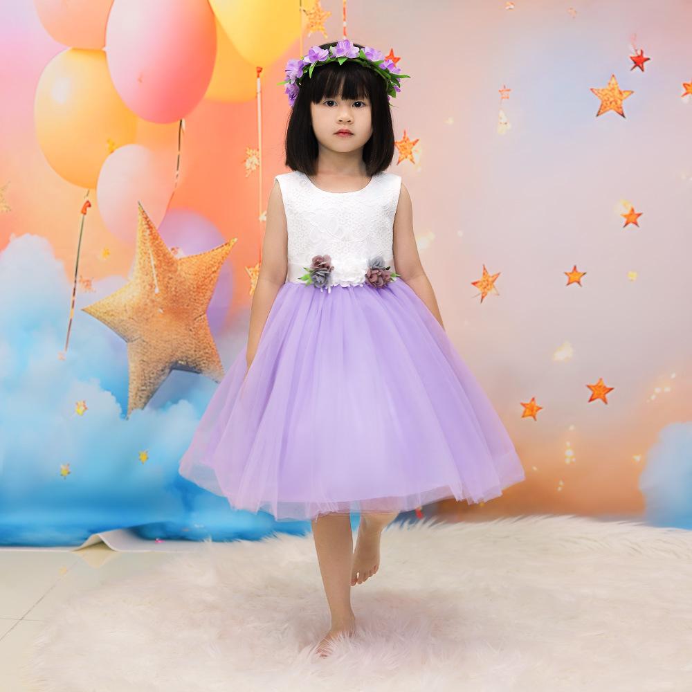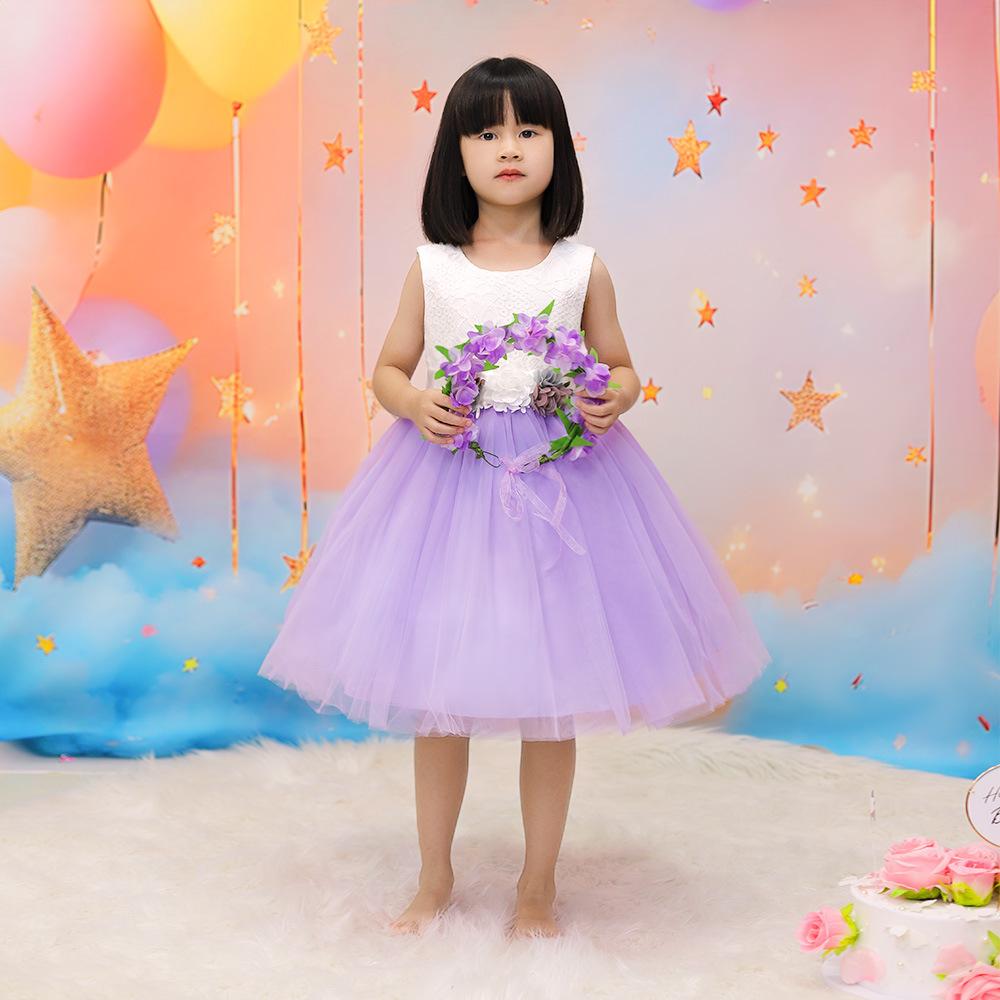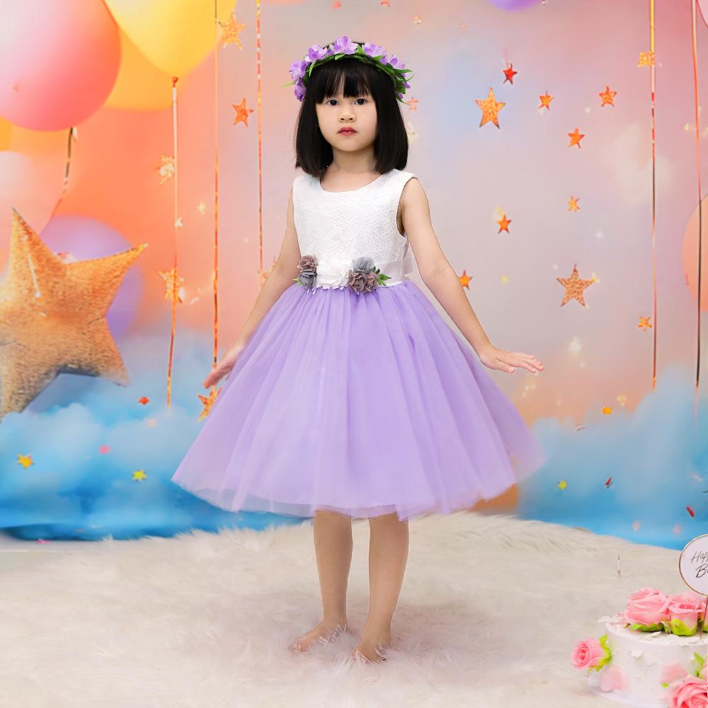 Vestido infantil nuevo europeo y americano, sin mangas, de malla floral a juego de colores, vestido de princesa para cumpleaños de niña, actuación del 1 de junio