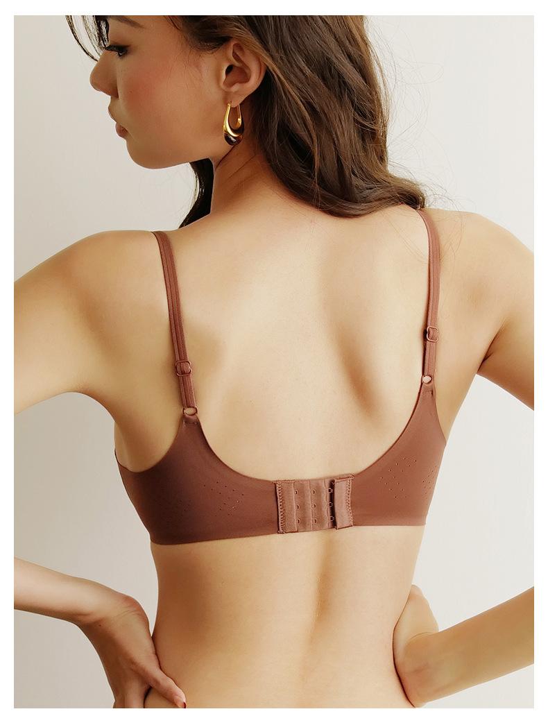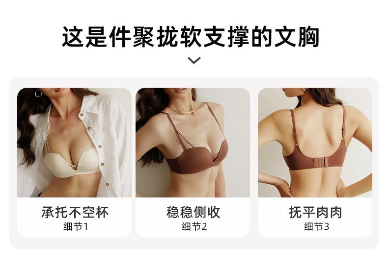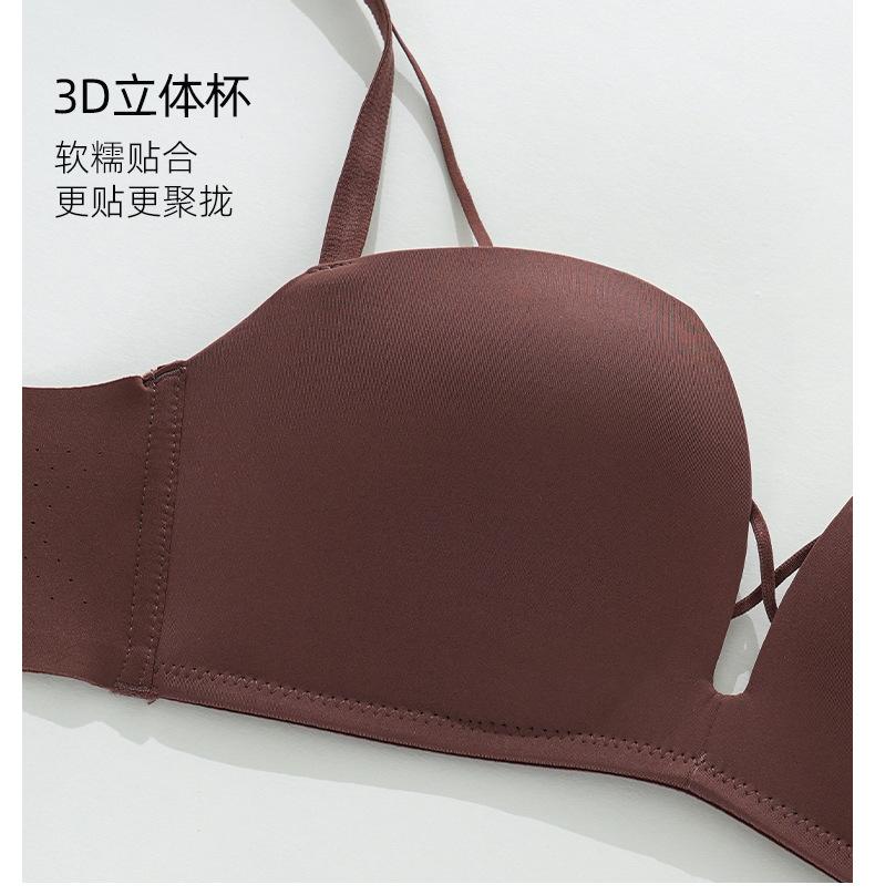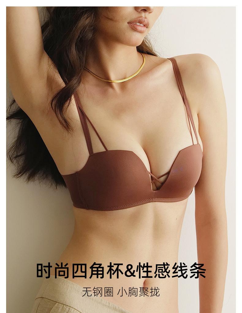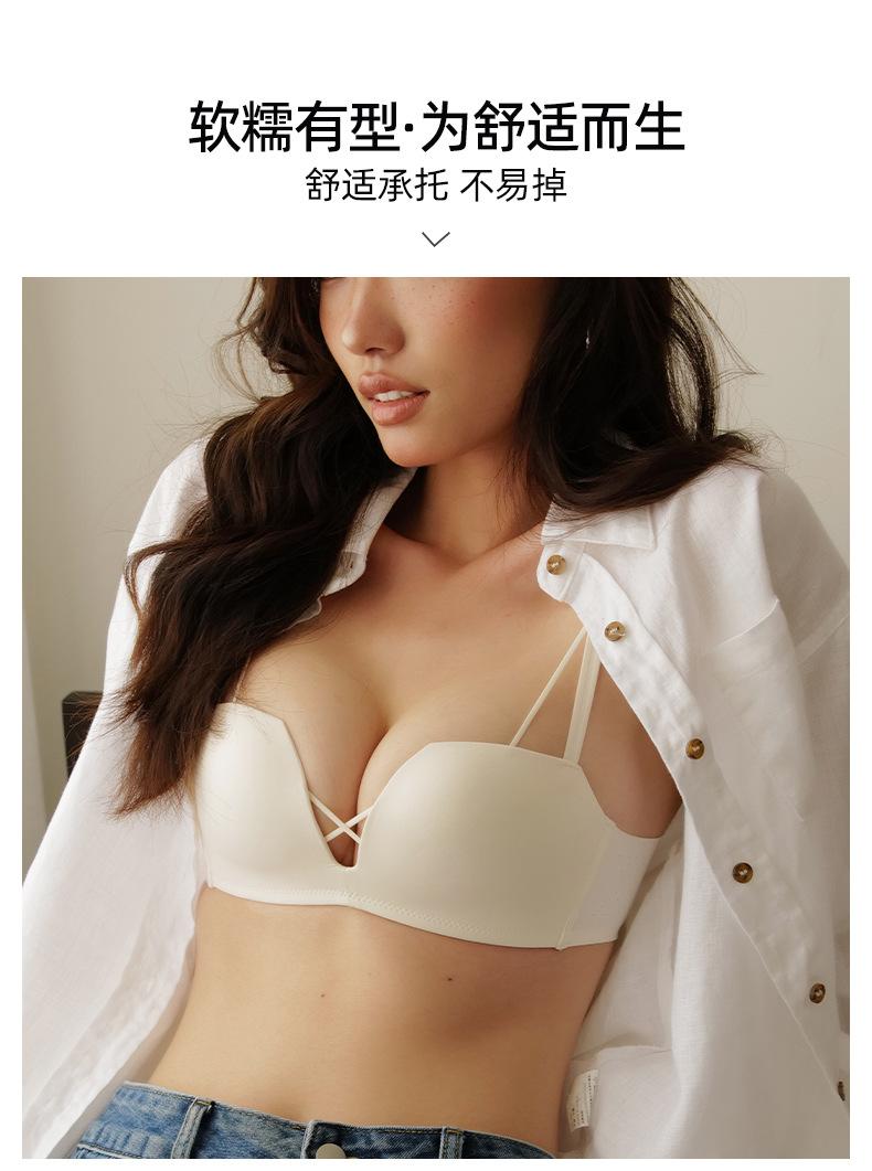 Sujetador sin costuras con fruncido de pecho pequeño, fino, cómodo, de verano, con escote en V profundo y sin aros, ropa interior con pecho plano, especial para no recoger el pecho.