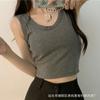 Chaleco de estilo coreano súper sexy con tirantes pequeños y almohadilla para el pecho, de algodón puro, con una hermosa espalda, para uso interior y exterior, top corto ajustado sin mangas.