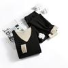 Conjunto de Ropa Interior Térmica para Hombre y Mujer, Lado Abdominal, Cuello Redondo, Ajustado, Elástico, Desodorizante, Grueso para Otoño e Invierno
