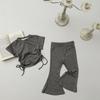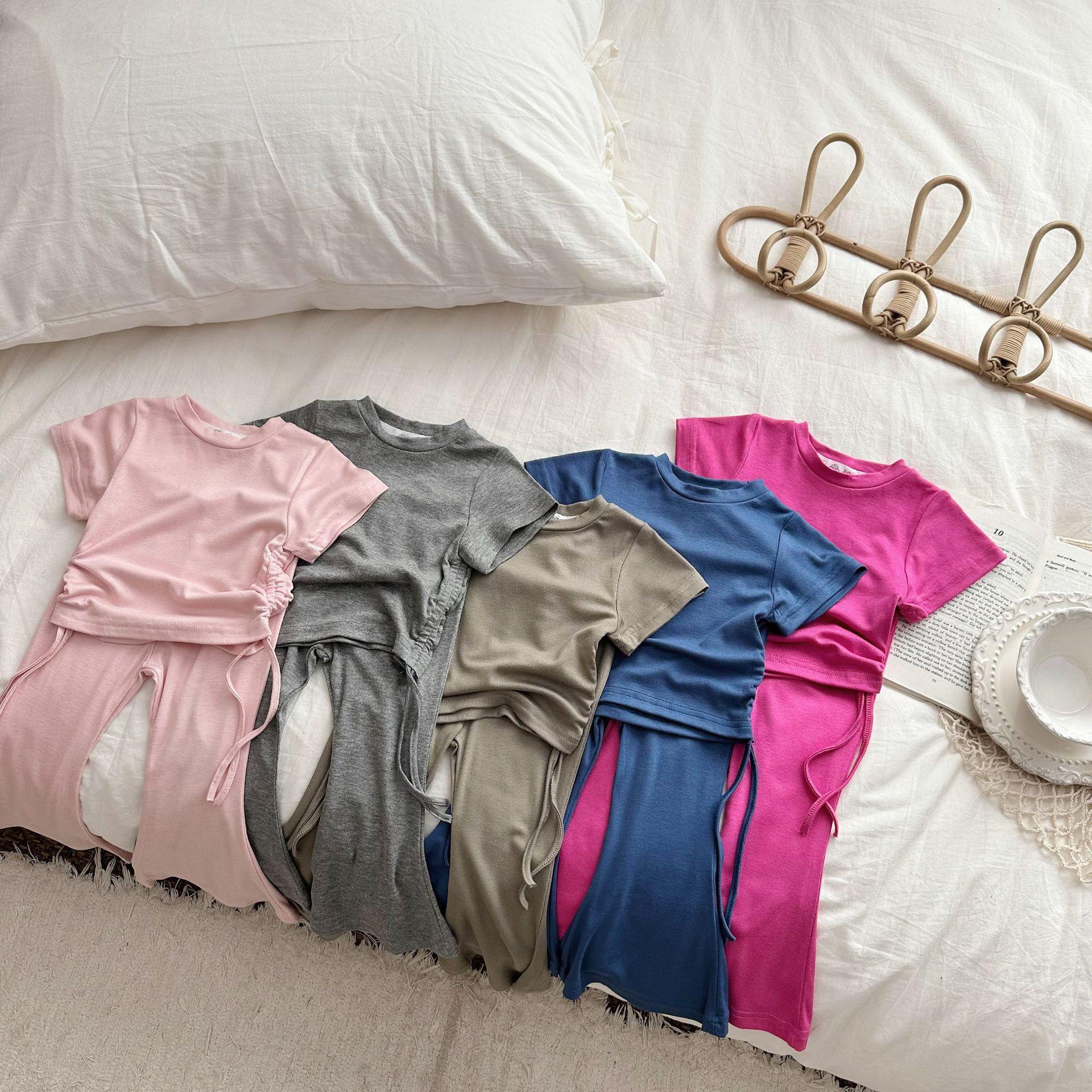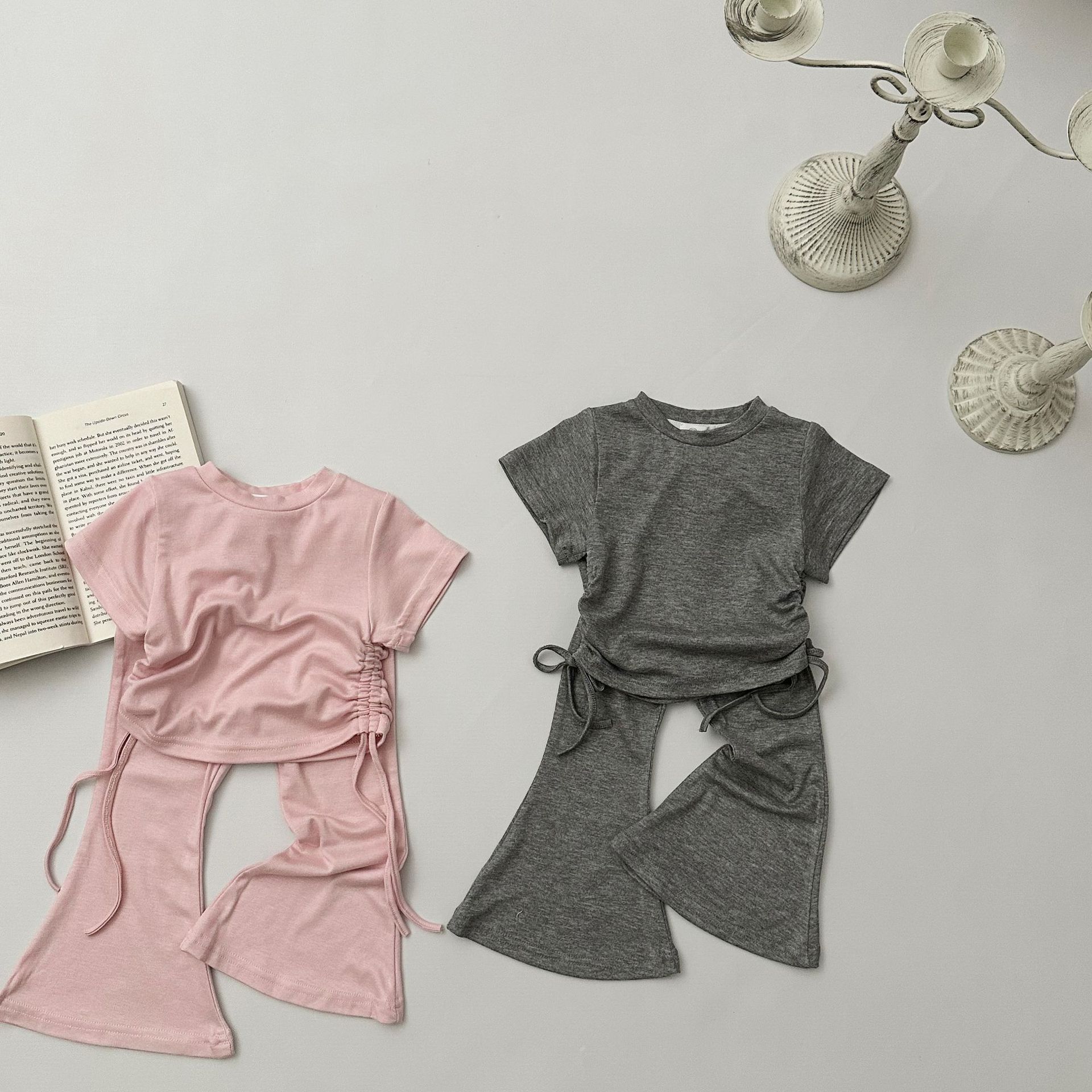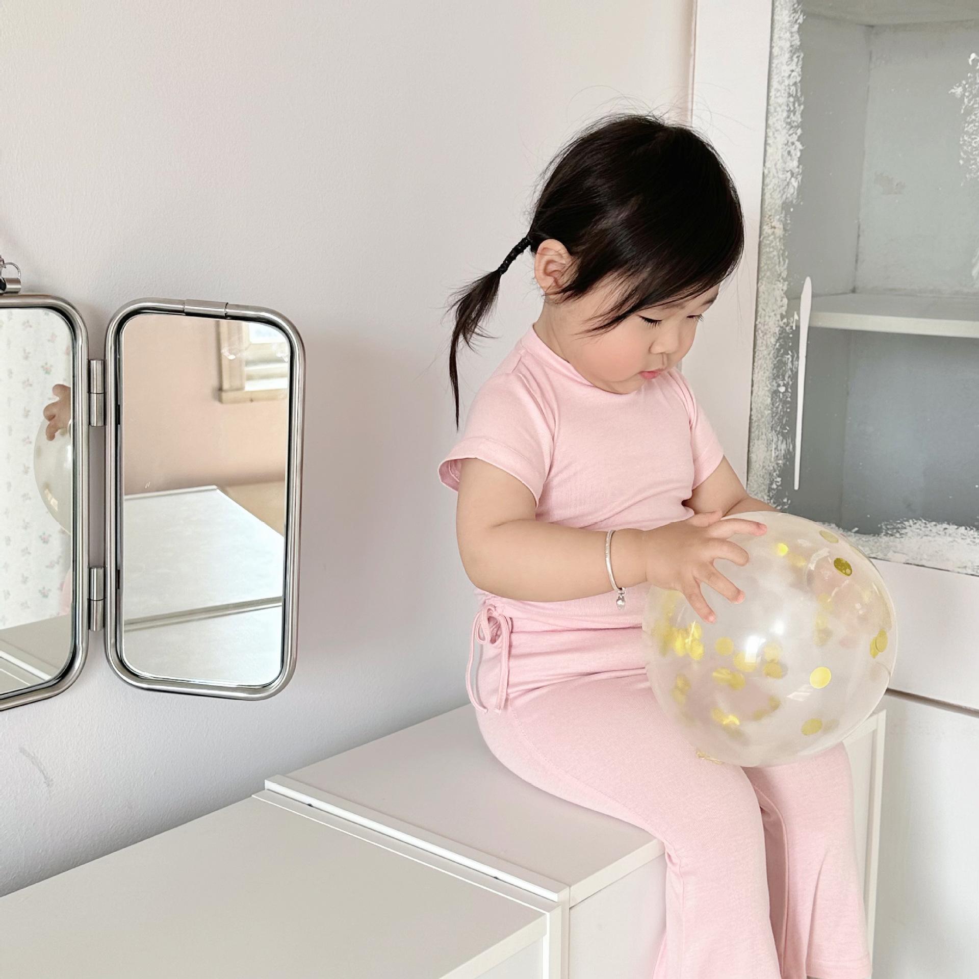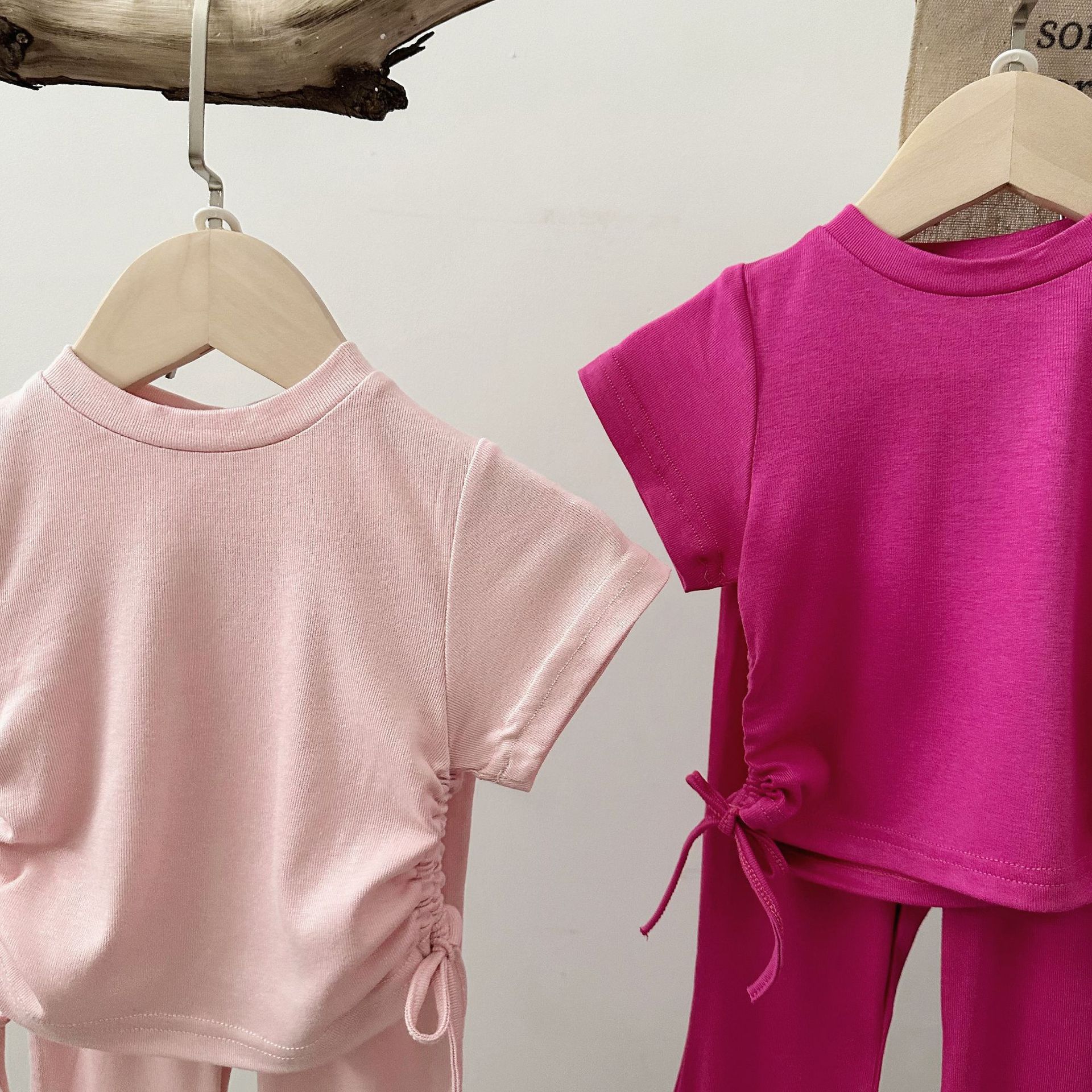 Traje de verano para niña estilo coreano camiseta de manga corta verano estilo occidental top de cuello redondo con cordón bebé verano nuevo pantalón acampanado