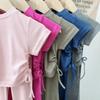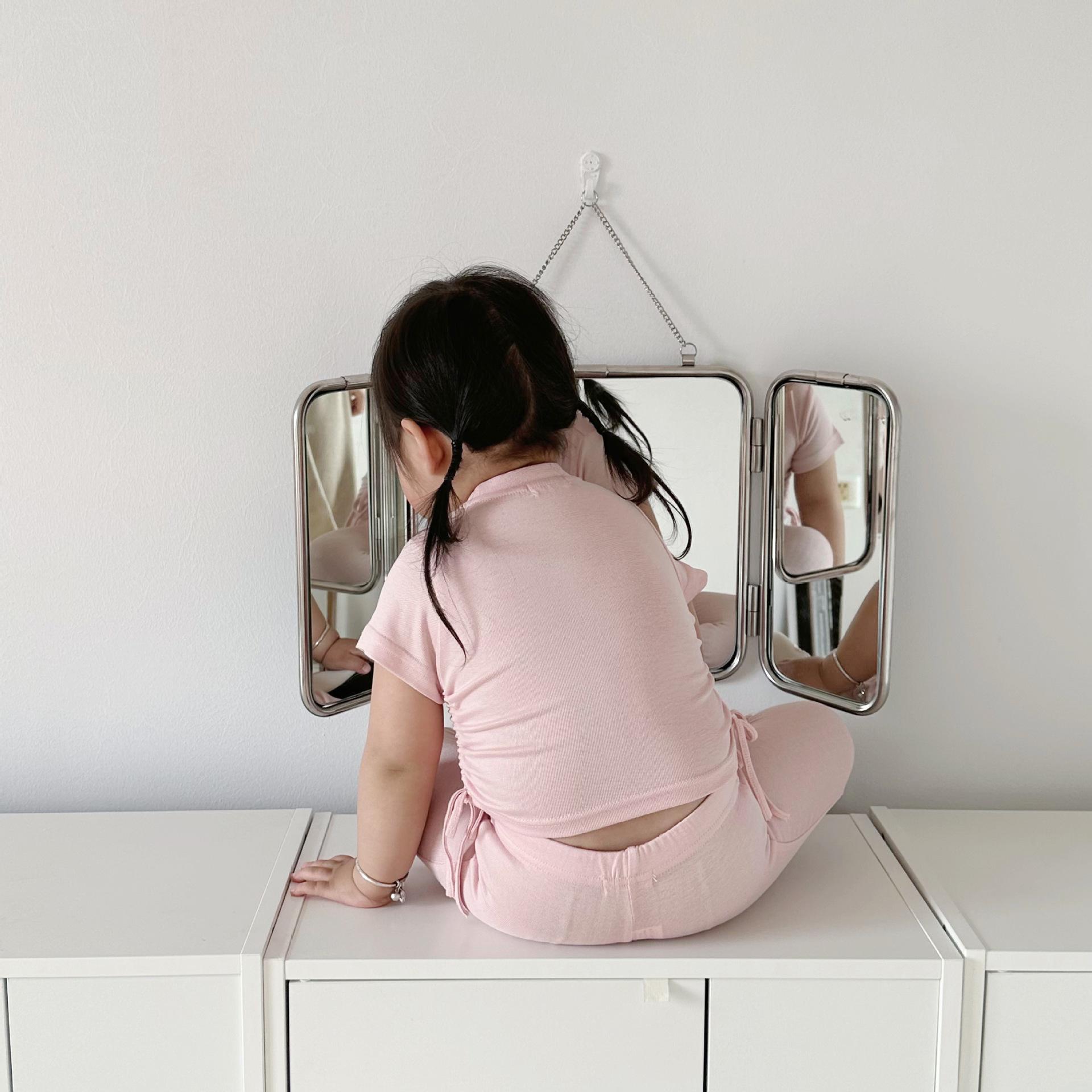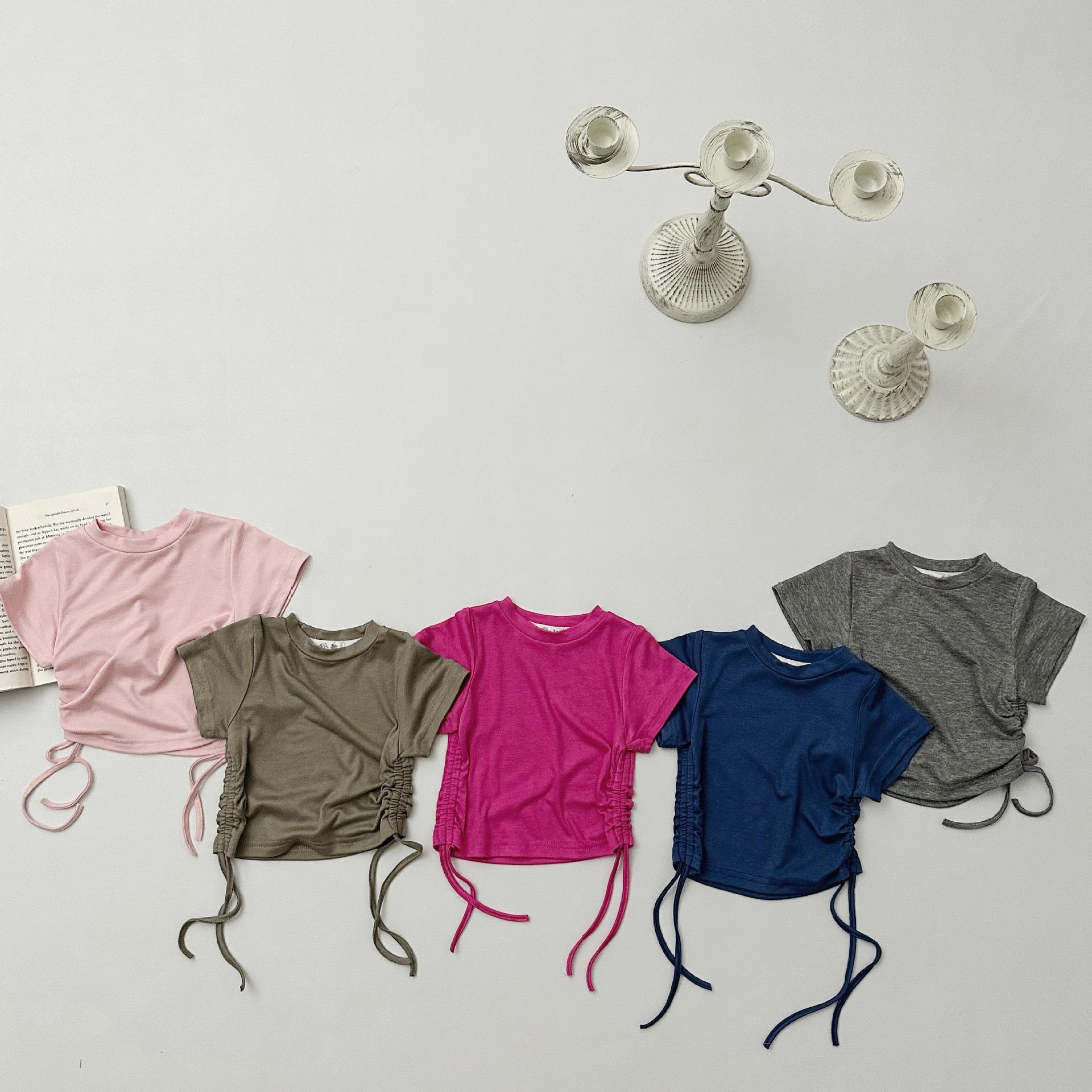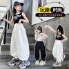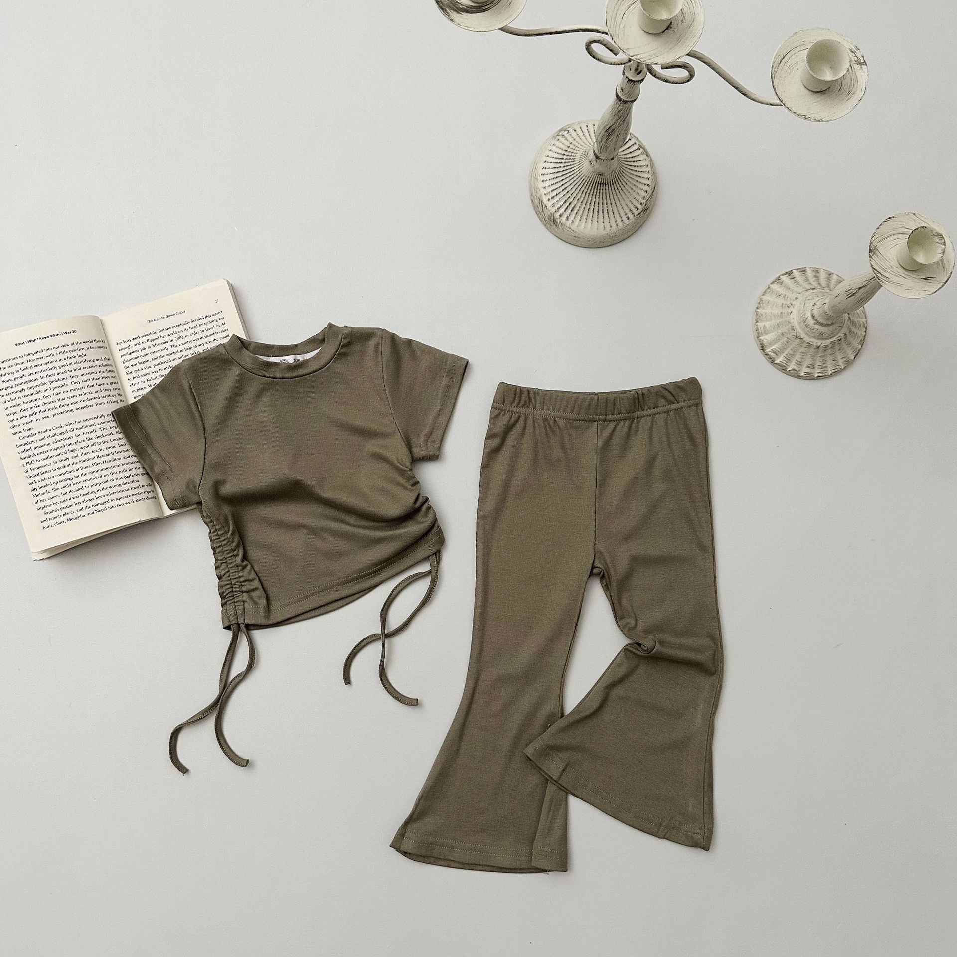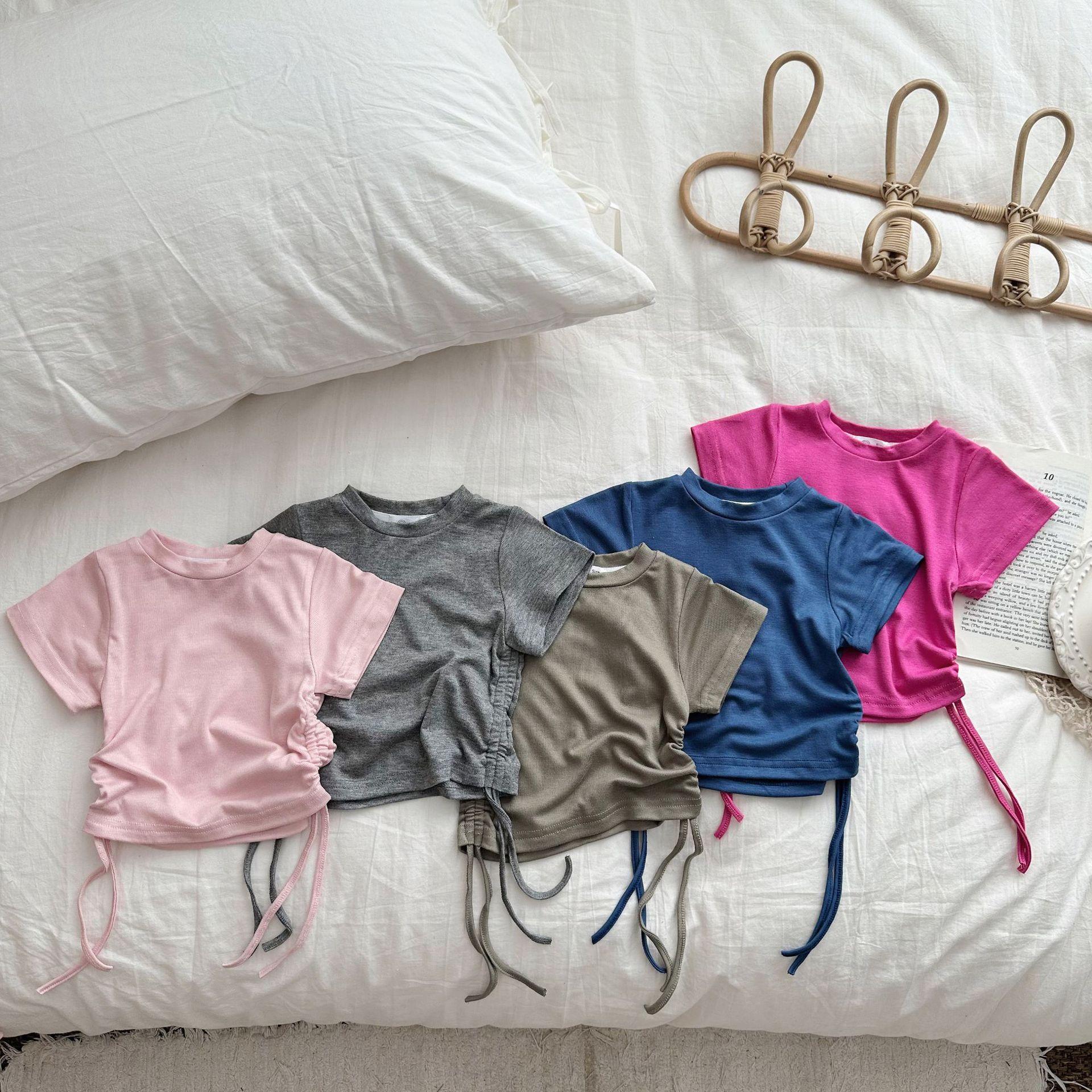 Traje de verano para niña estilo coreano camiseta de manga corta verano estilo occidental top de cuello redondo con cordón bebé verano nuevo pantalón acampanado
